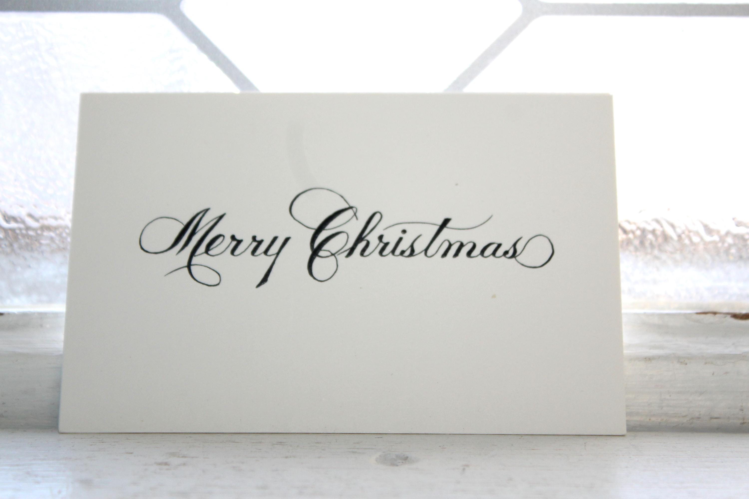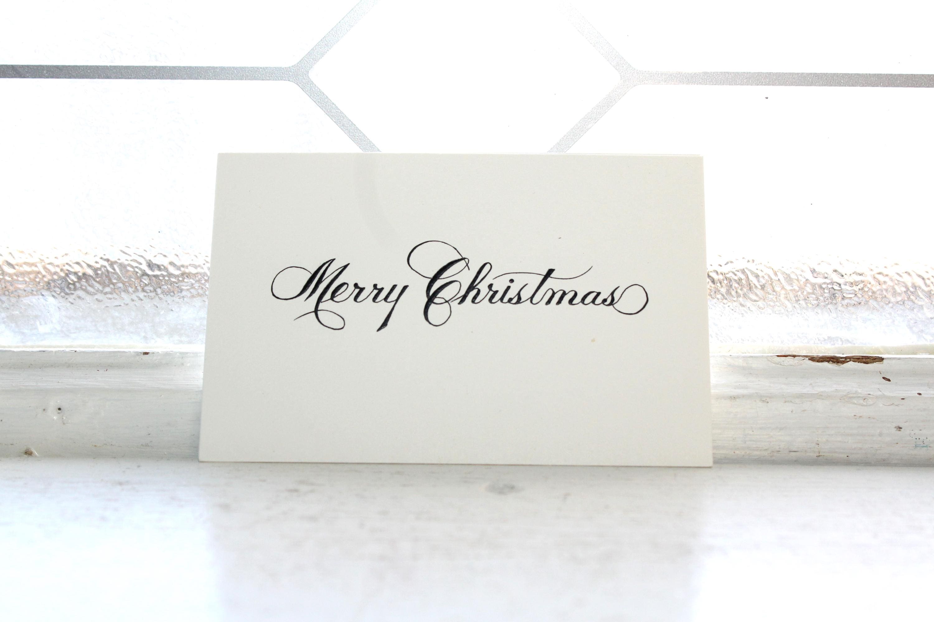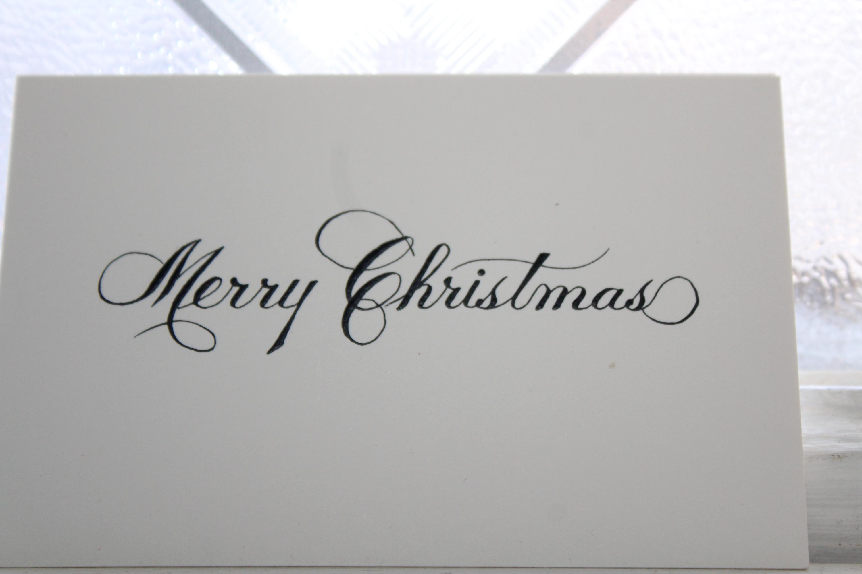 This is a rare vintage 1940s unused set of 6 calligraphy Christmas cards, in very good condition. These make a great gift for the ornamental penmanship fan or calligraphy fan. Each one measures 4 3/8" x 2 3/4". I HAVE MULTIPLE SETS OF 6 AVAILABLE VIA THE DROP DOWN BOX. Enjoy!
