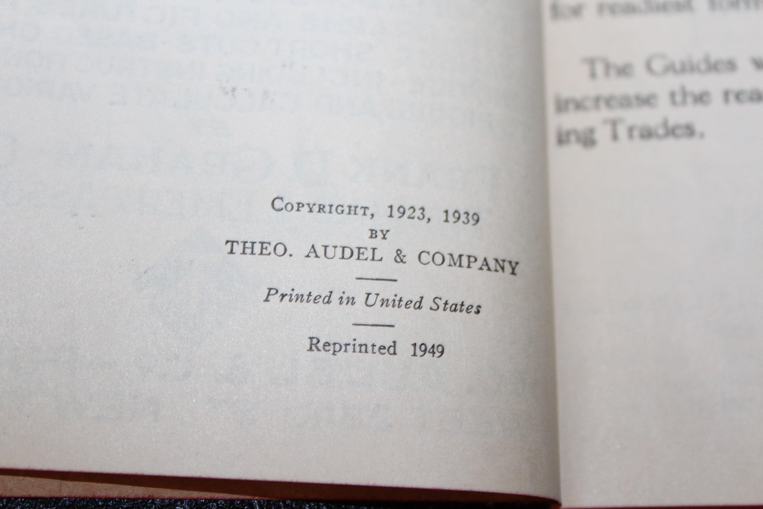 Set of 4 antique 1923 books, Audels Carpenters and Builders Guide, volumes 1 through 4, all in very good condition. Each book measures 6 1/2" x 5". Enjoy!