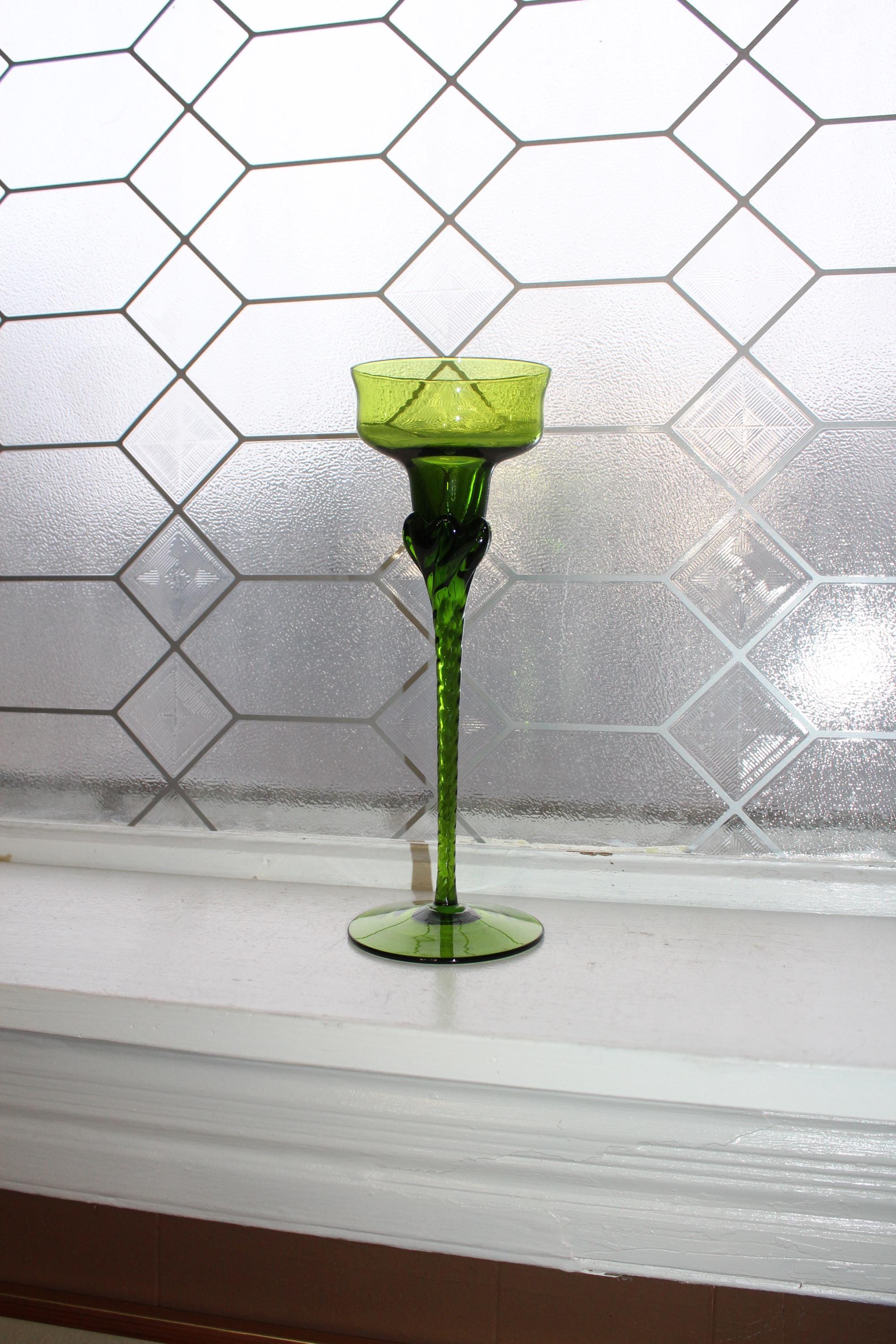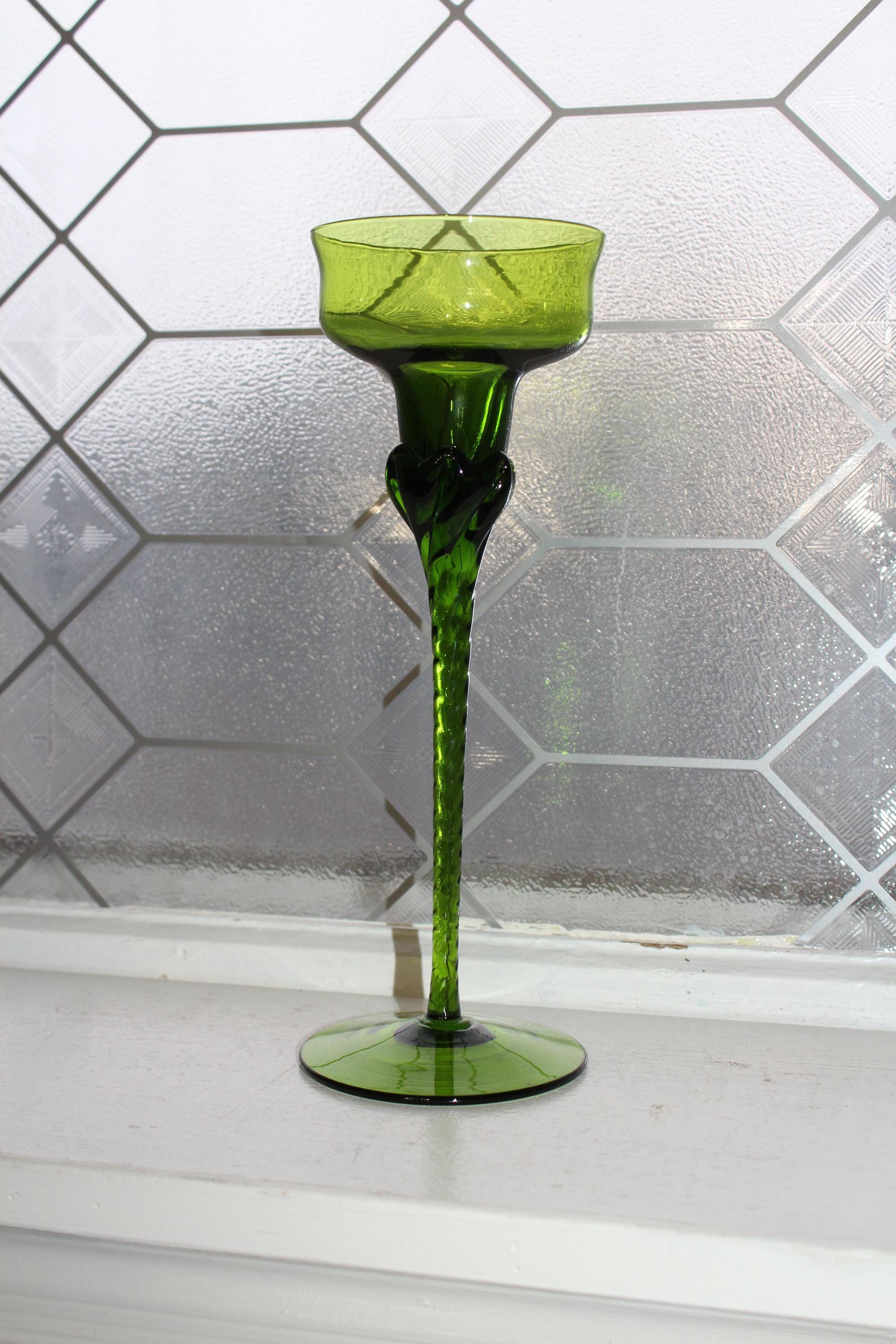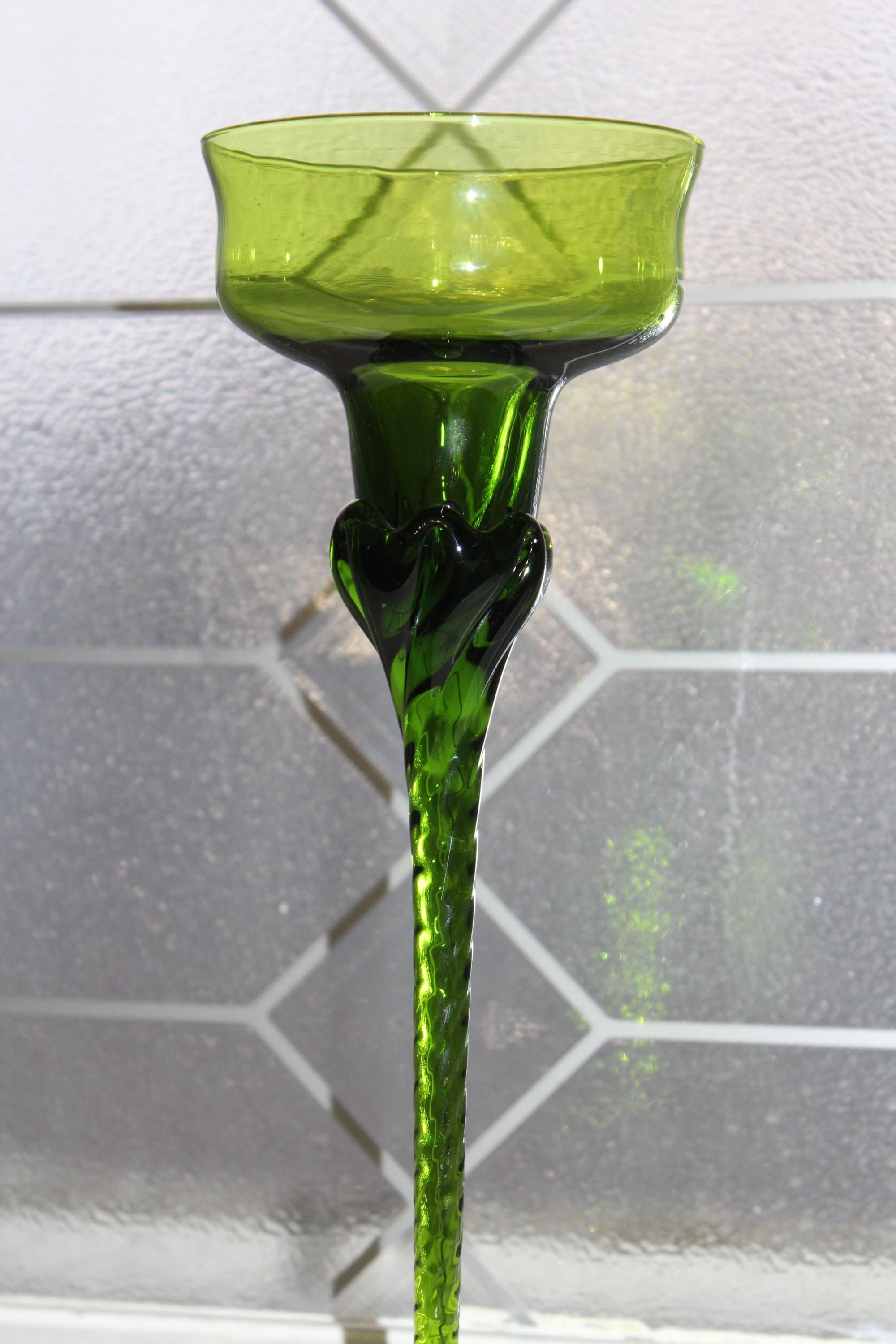 Vintage Mid Century large Empoli emerald green glass candle holder with twisted stem, in excellent condition and perfect in a retro Mid Century home. It measures 9 3/4" high. No chips or cracks, great for use or display. Enjoy!