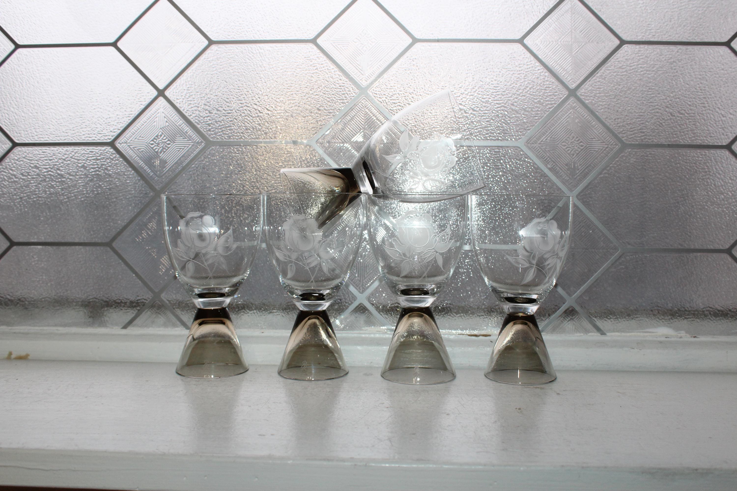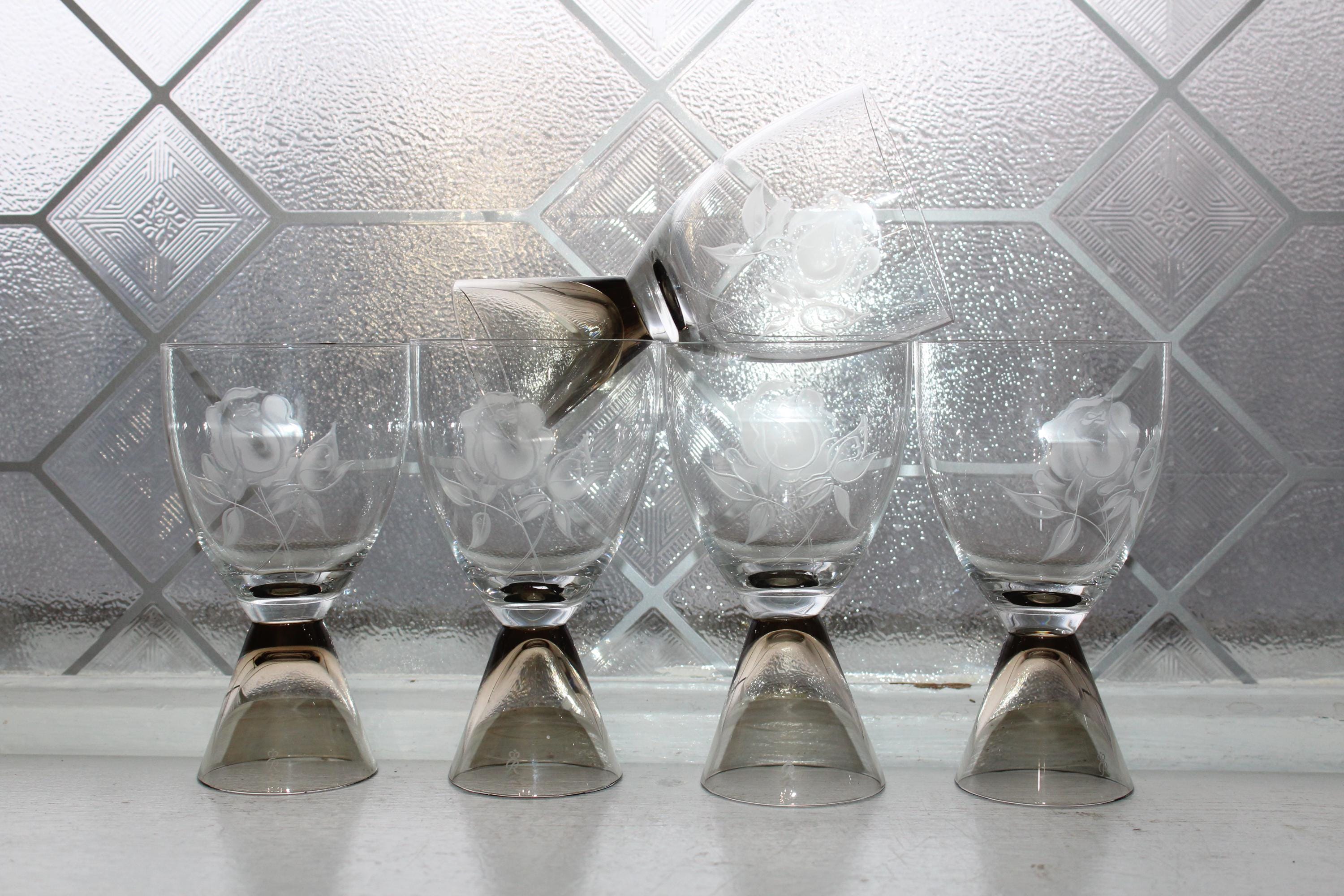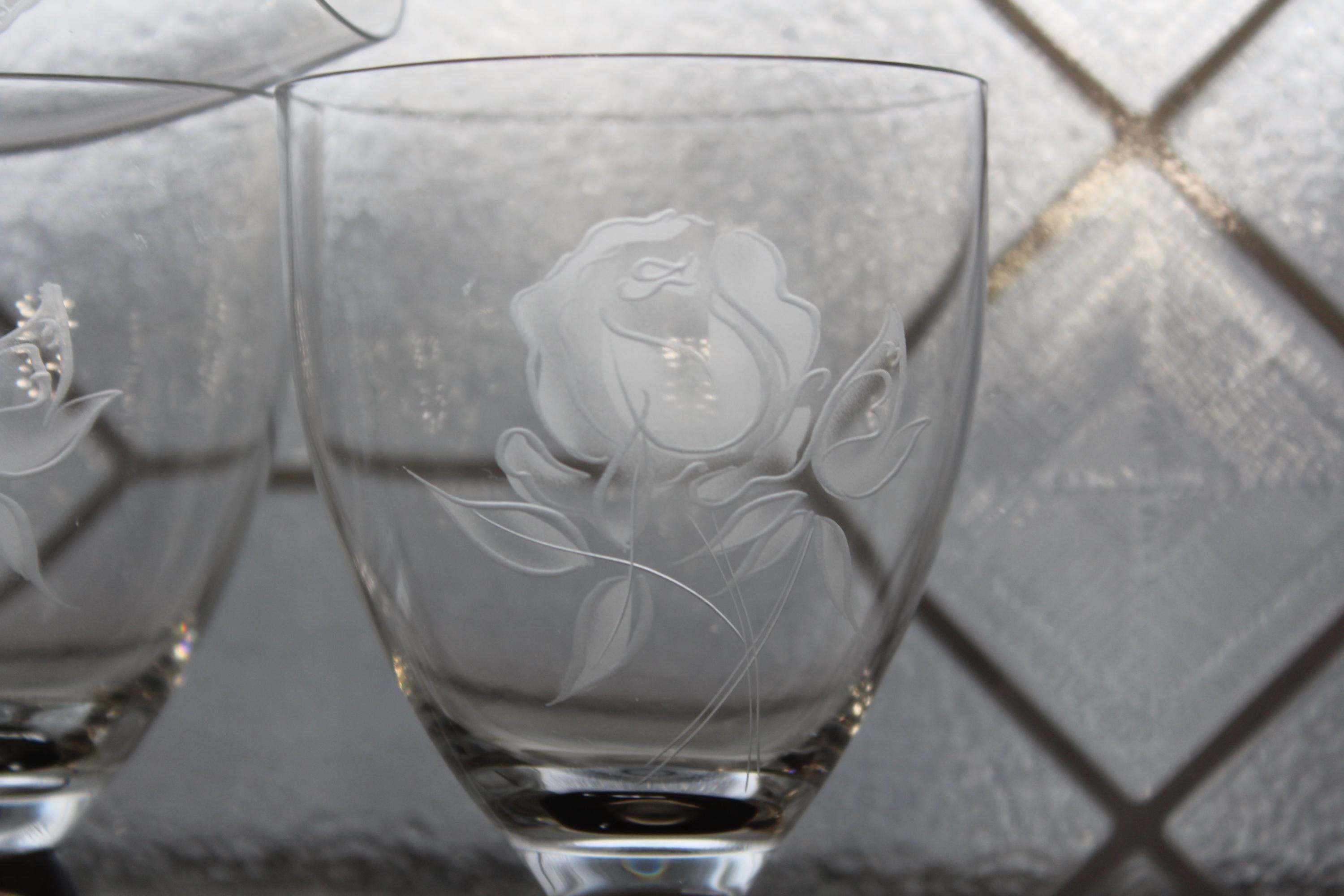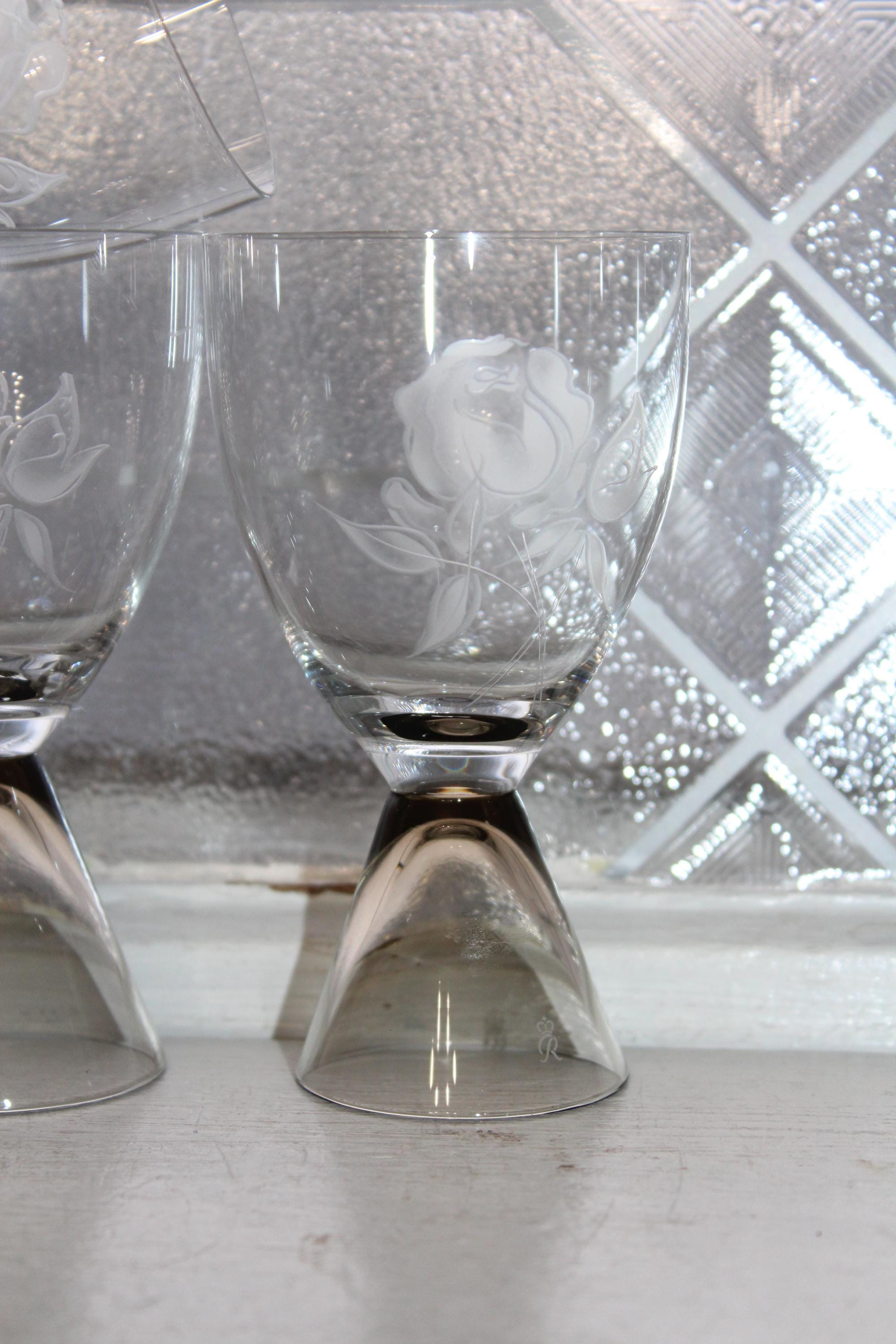 This is a fabulous set of 5 Mid Century vintage Rosenthal crystal red wine glasses with cut rose decoration, in excellent condition. Each one measures 4 3/4" high. No chips, cracks or wear, perfect for use or display. Enjoy!