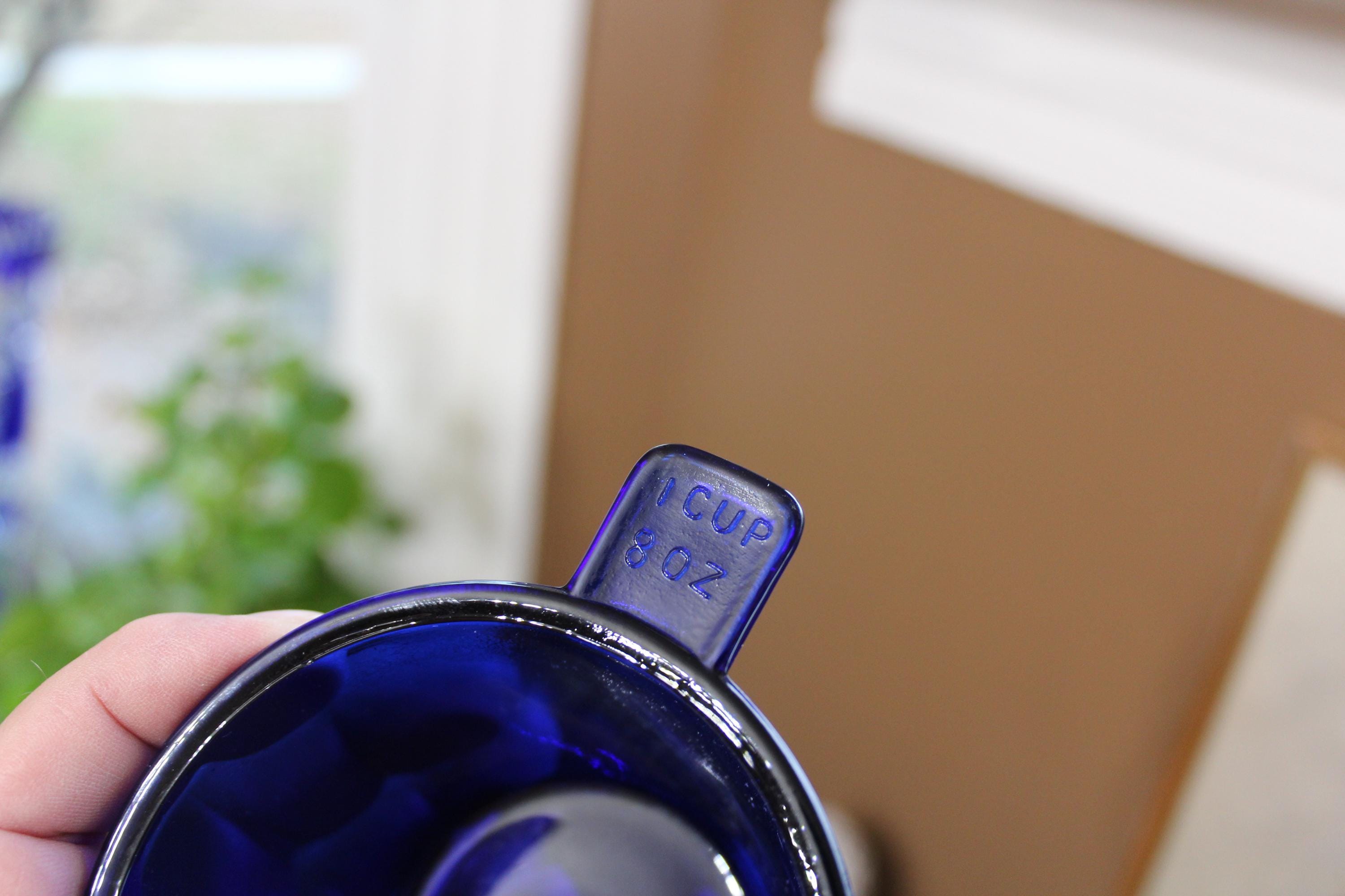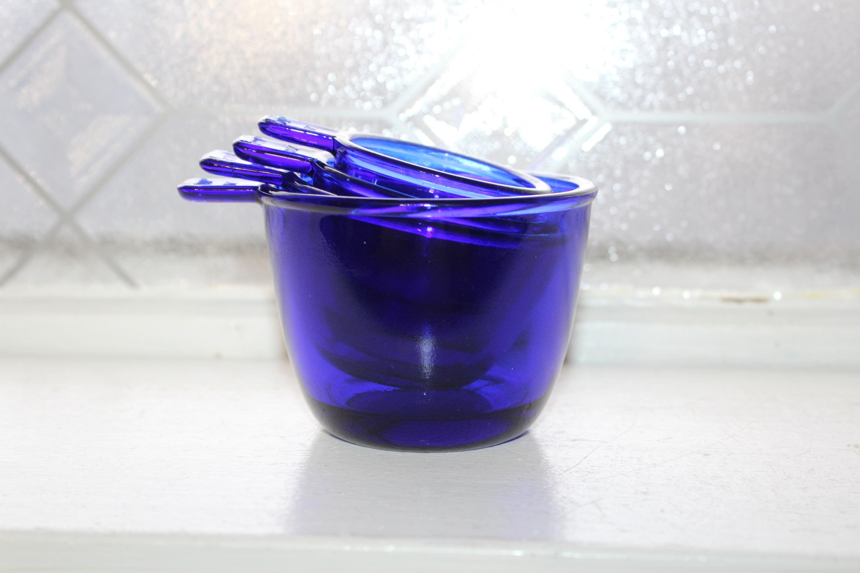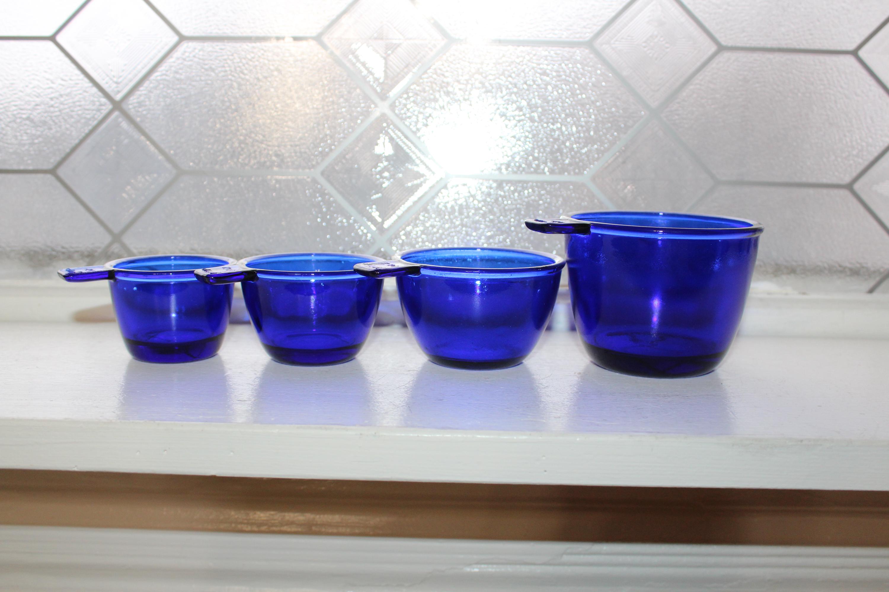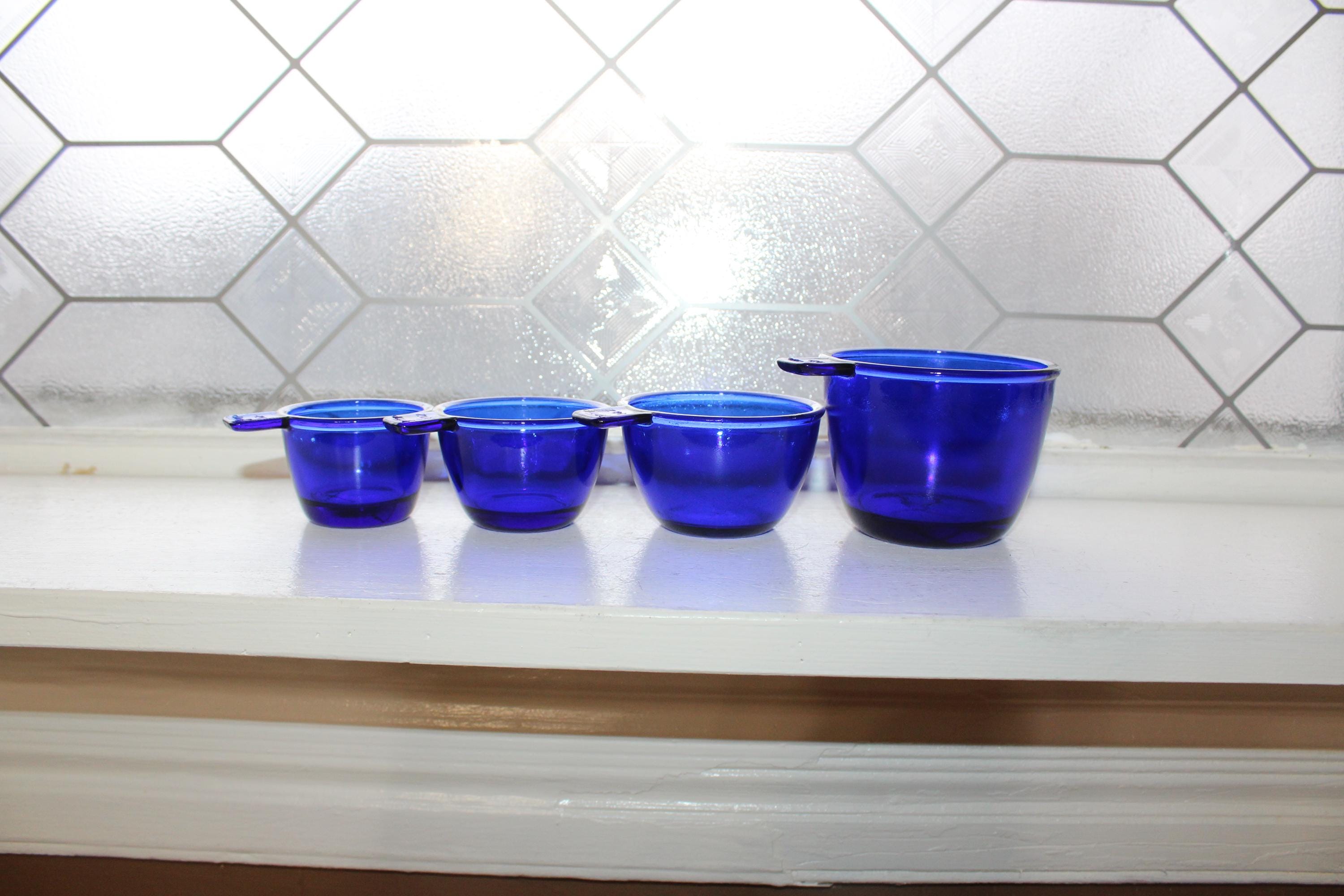 Add retro elegance to your cooking space with this vintage inspired cobalt blue glass measuring cup set. With its dark blue tone, each cup is both a functional measuring tool and a decorative collectible. Ideal for enhancing your kitchen decor, this set marries practicality with classic mid-century aesthetics.