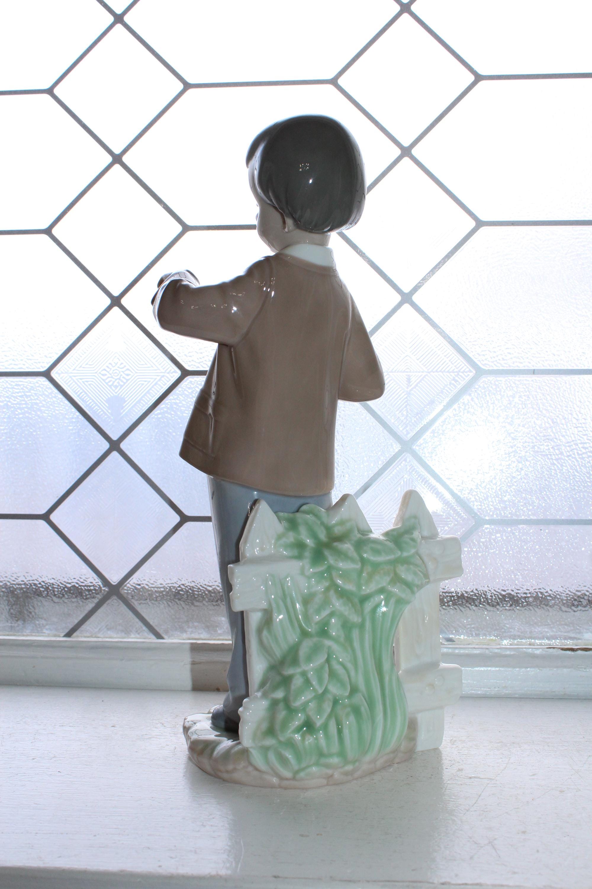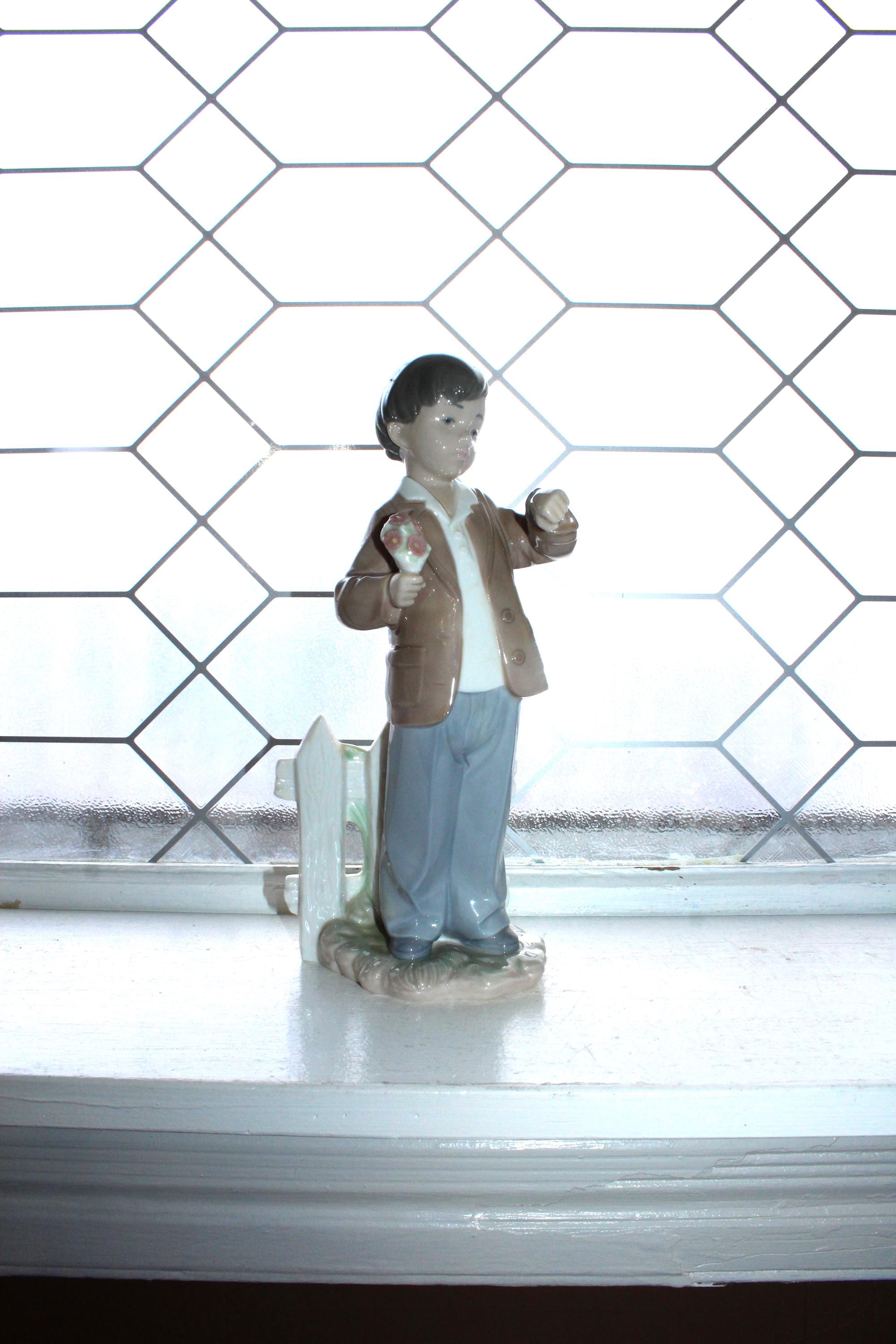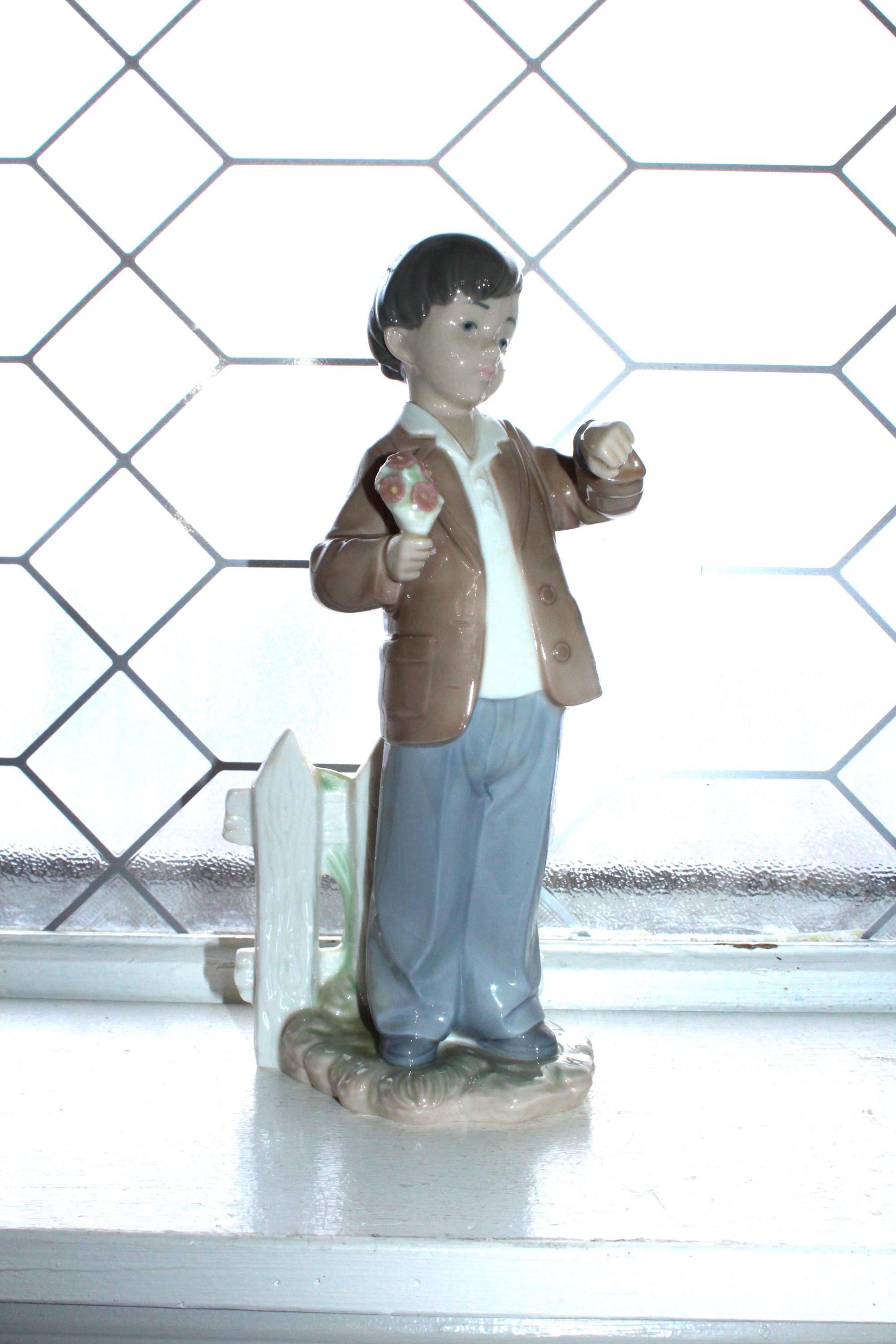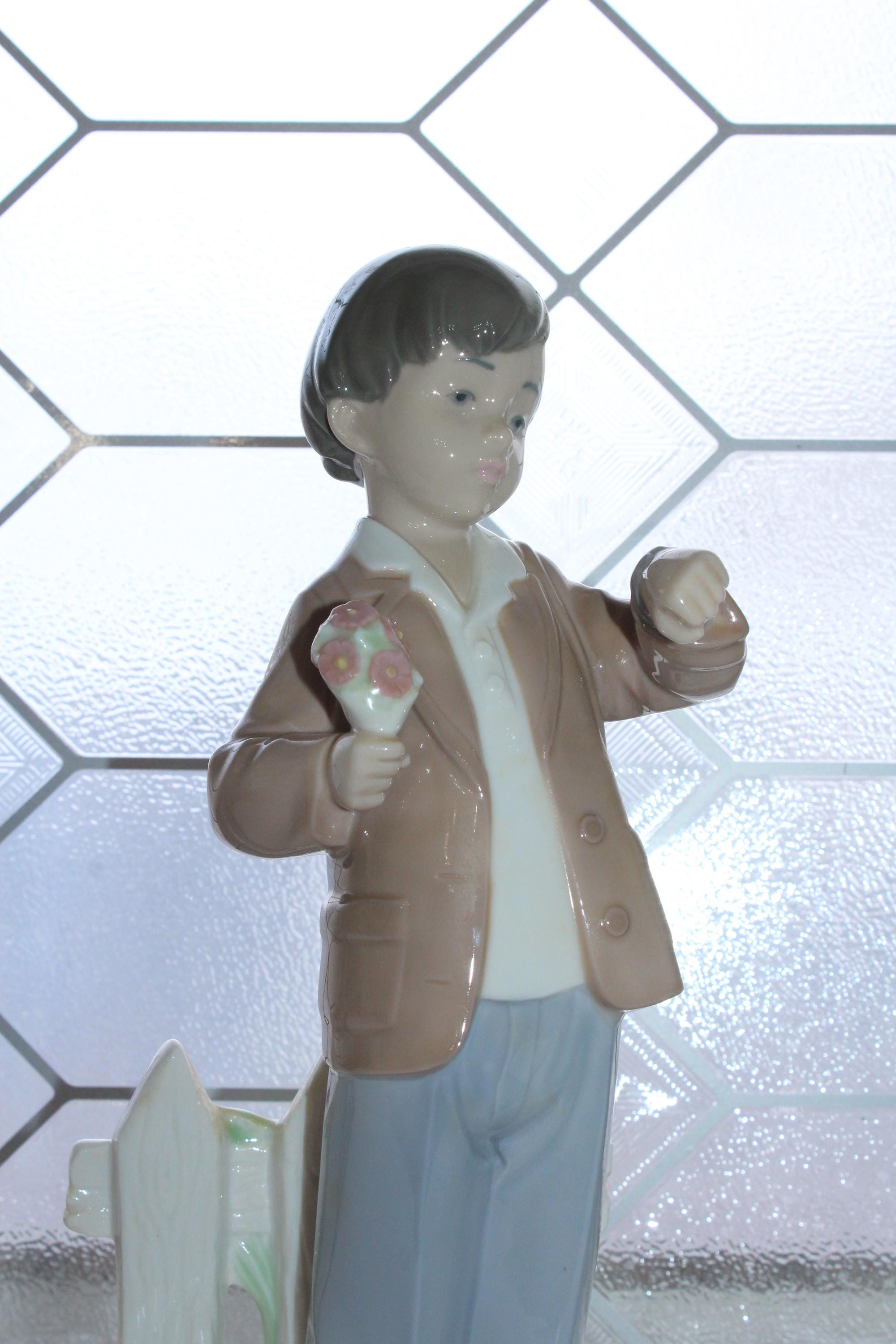 Vintage Lladro NAO porcelain figurine of a boy with flowers, titled She's Late, 1278. It measures 10" high. No damage or wear, perfect for display. Enjoy!