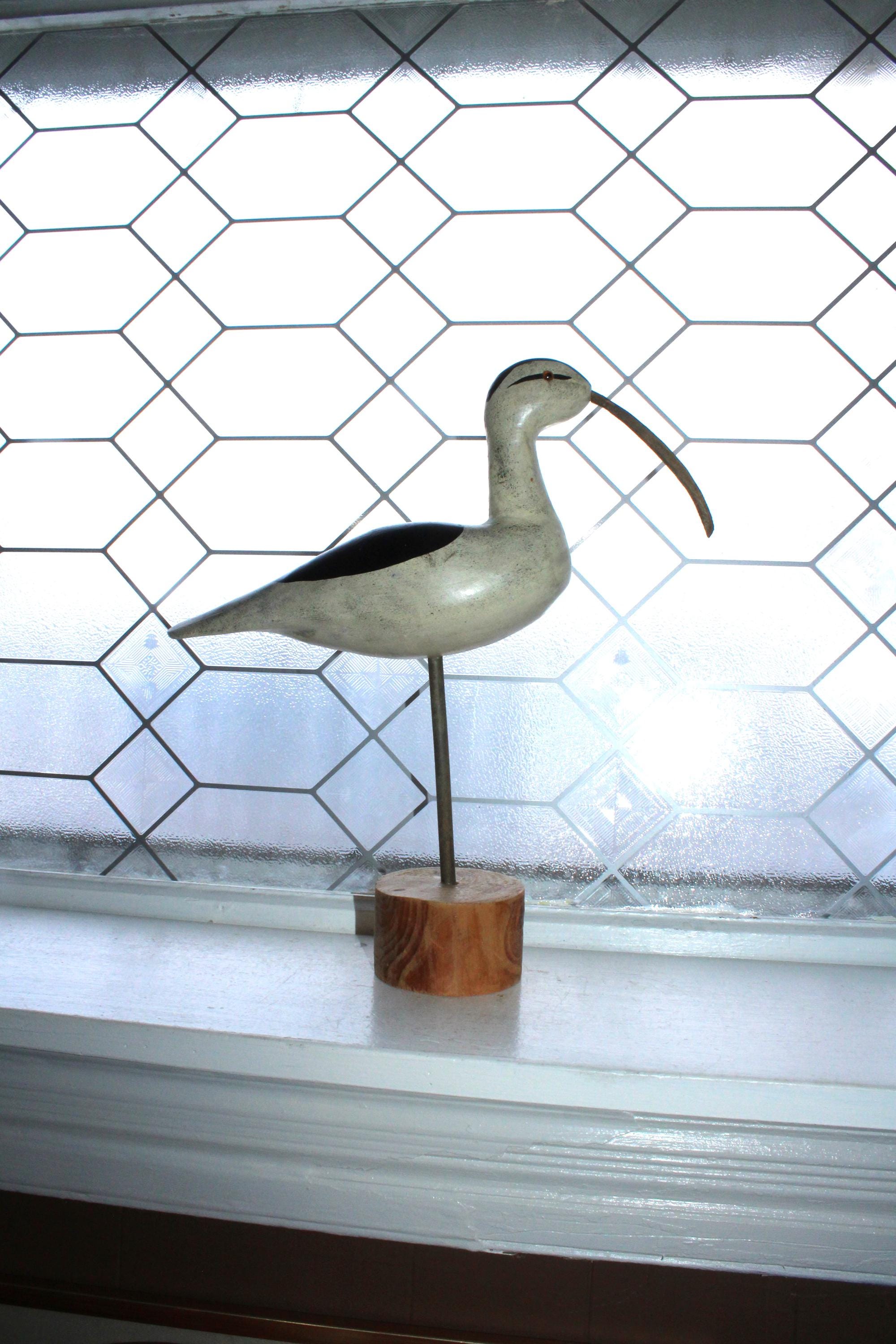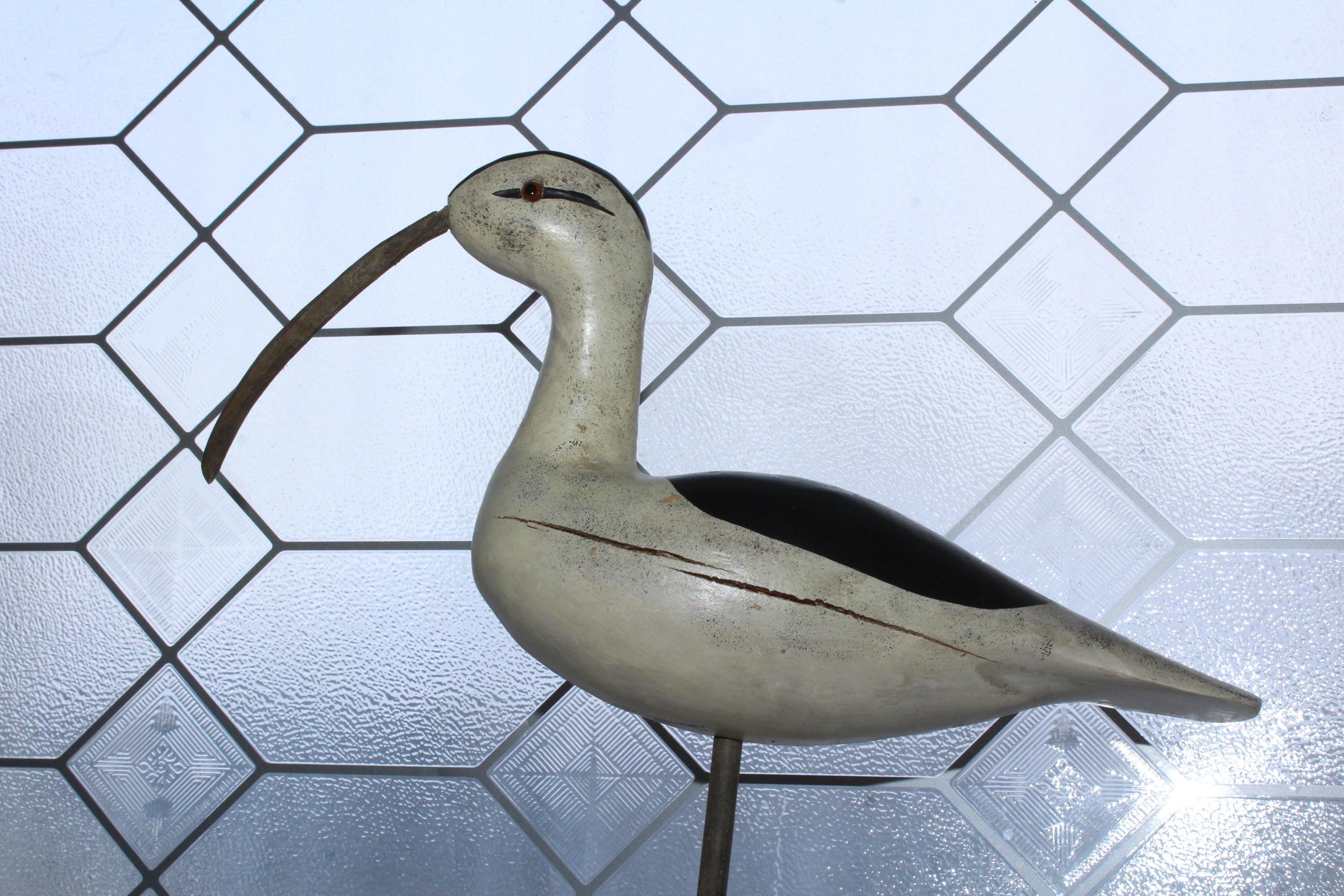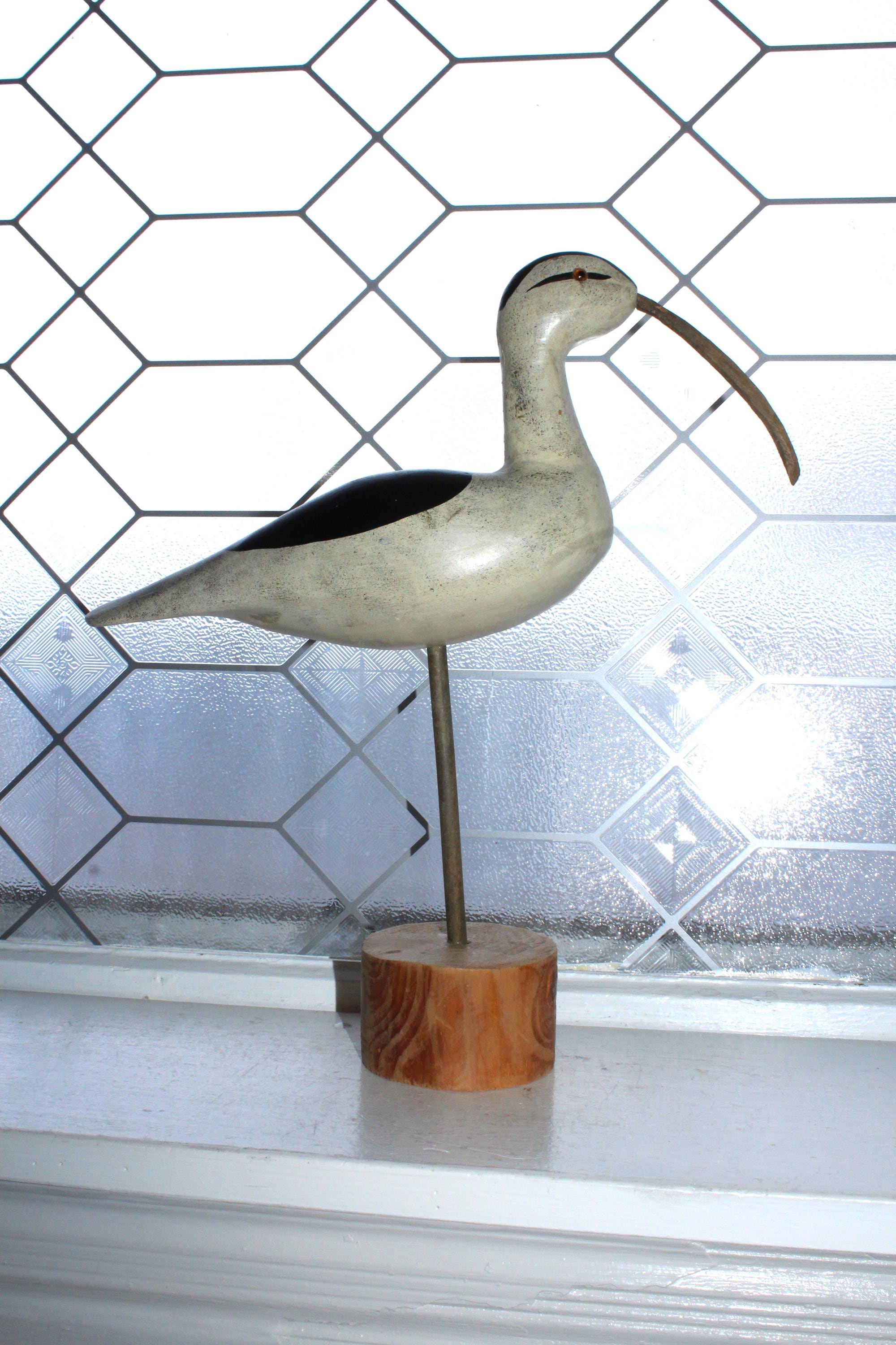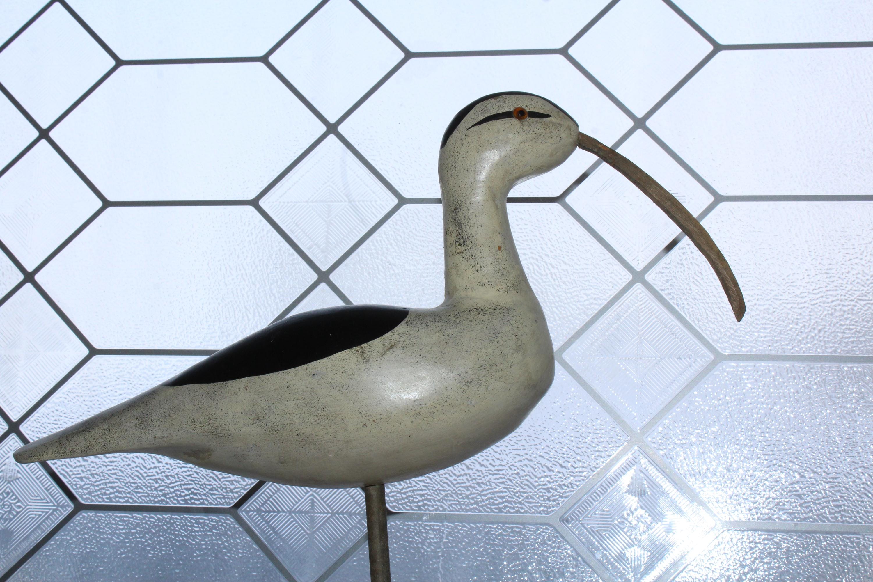 Vintage carved wood shore bird statue, a long billed curlew. It measures 13" high, condition as shown in the photos, displays very well. Enjoy!