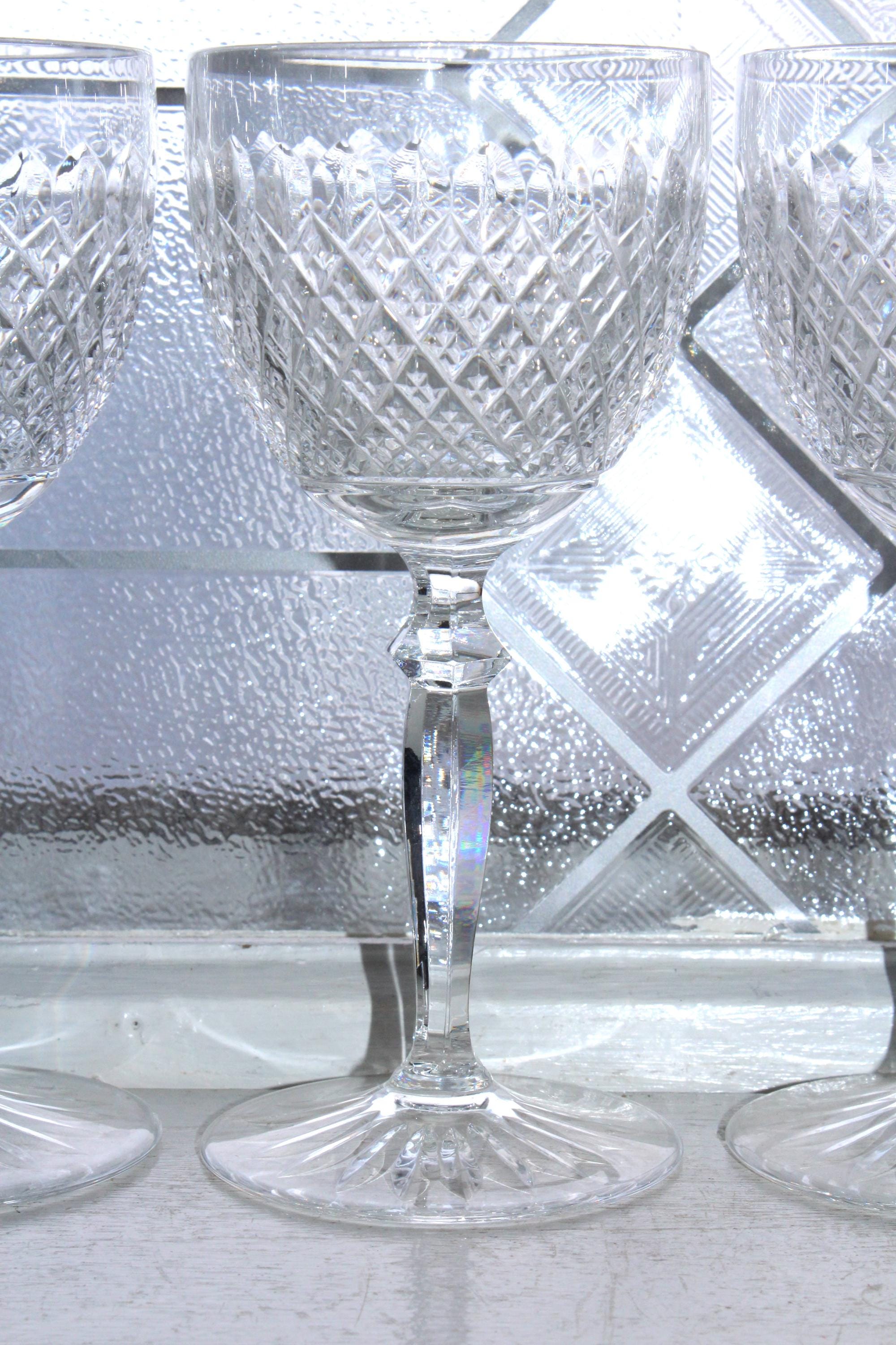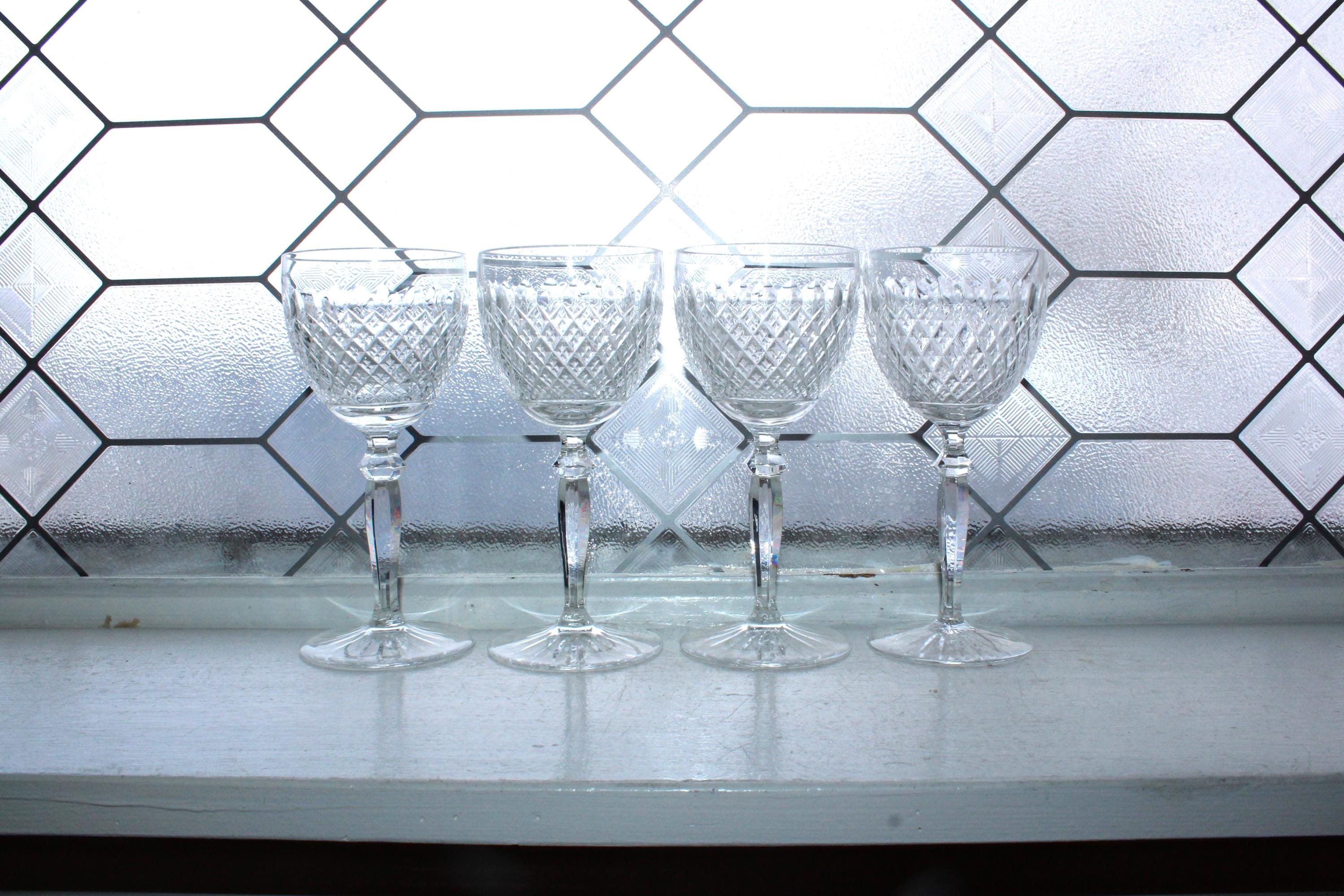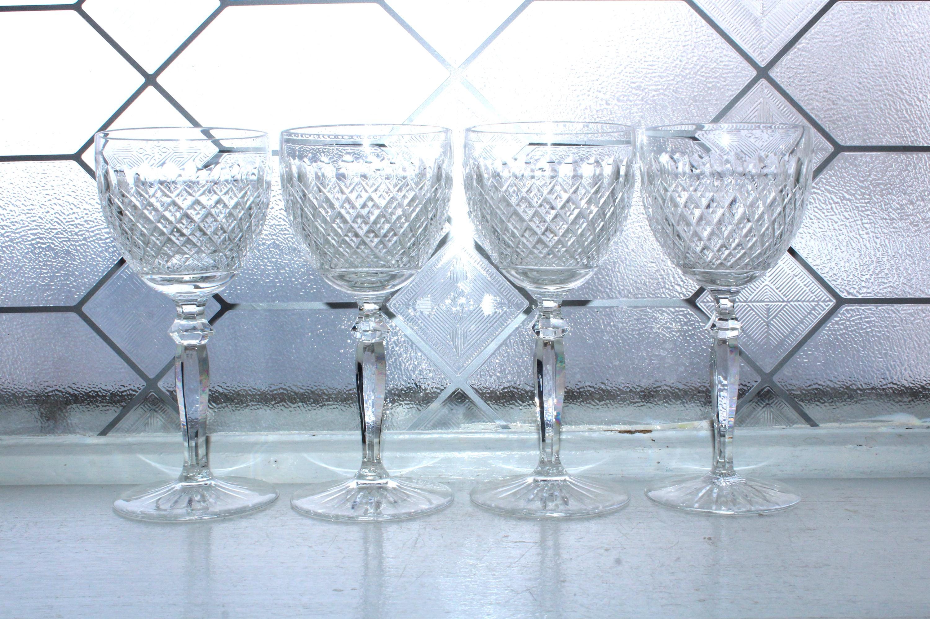 4 vintage 1950s Franz Wittwer elegant crystal Mozell claret wine glasses, in excellent condition. They measure 6 1/4" high x 3" wide at the rim. No chips or cracks, great for use or display. I also have several other pieces of this pattern listed separately. Enjoy!