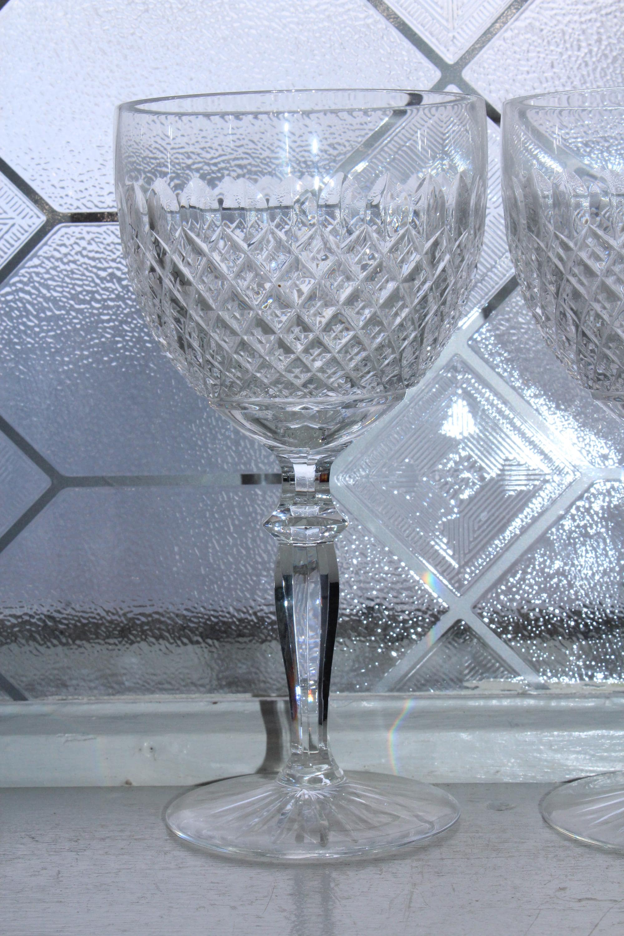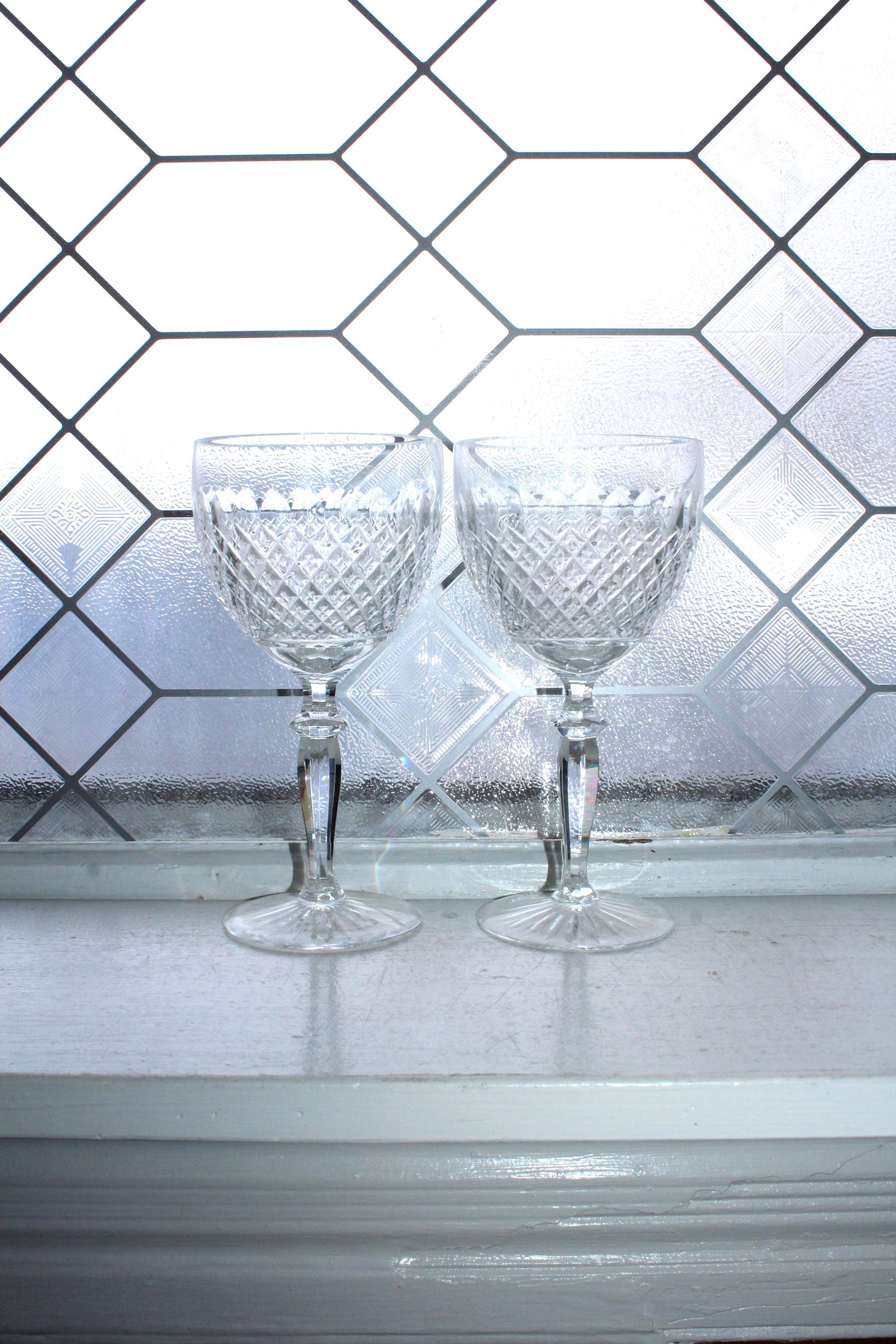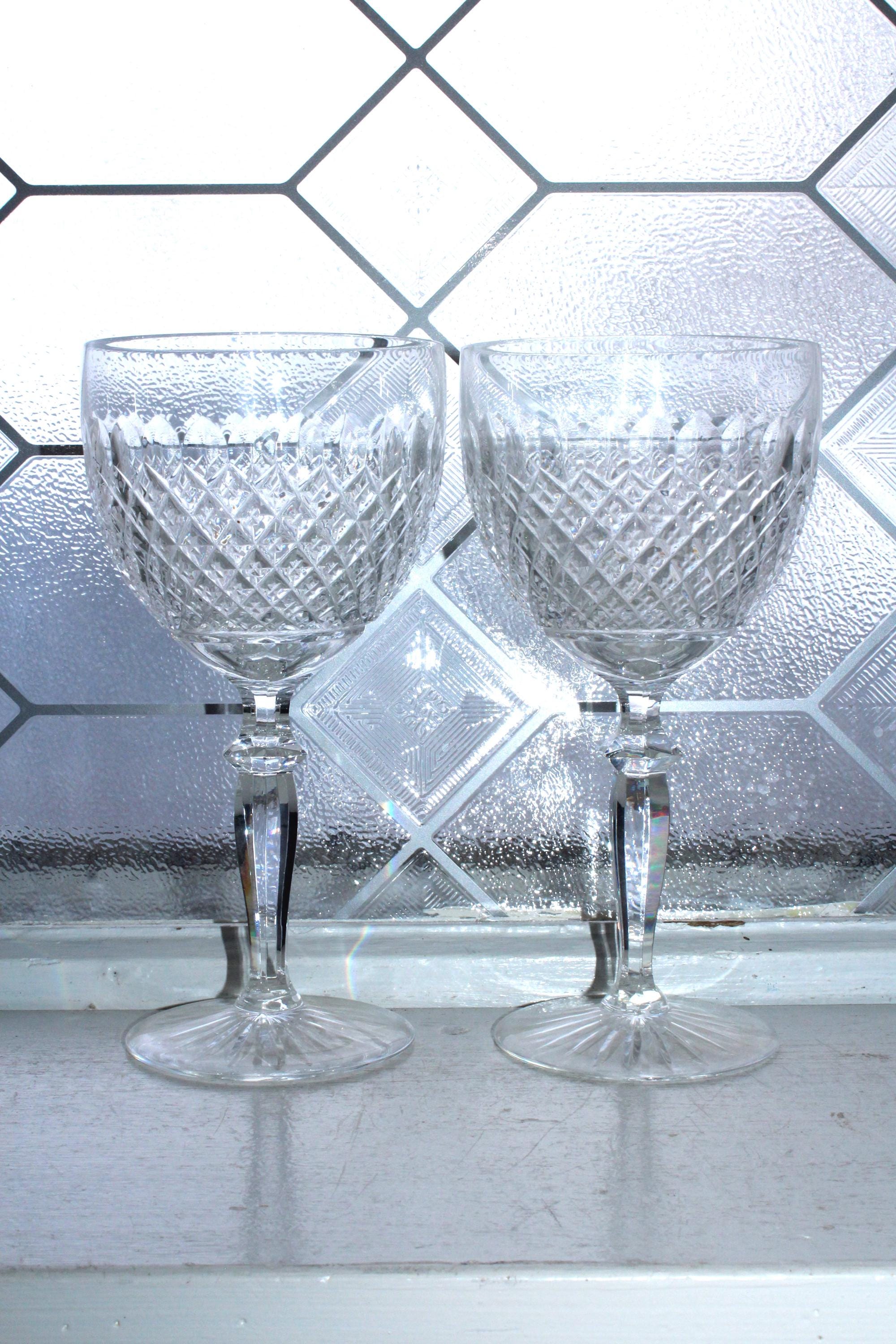 2 vintage 1950s Franz Wittwer elegant crystal Mozell water goblets/glasses, in excellent condition. They measure 7 1/8" high x 3 5/8" wide at the rim. No chips or cracks, great for use or display. I also have several other pieces of this pattern listed separately. Enjoy!