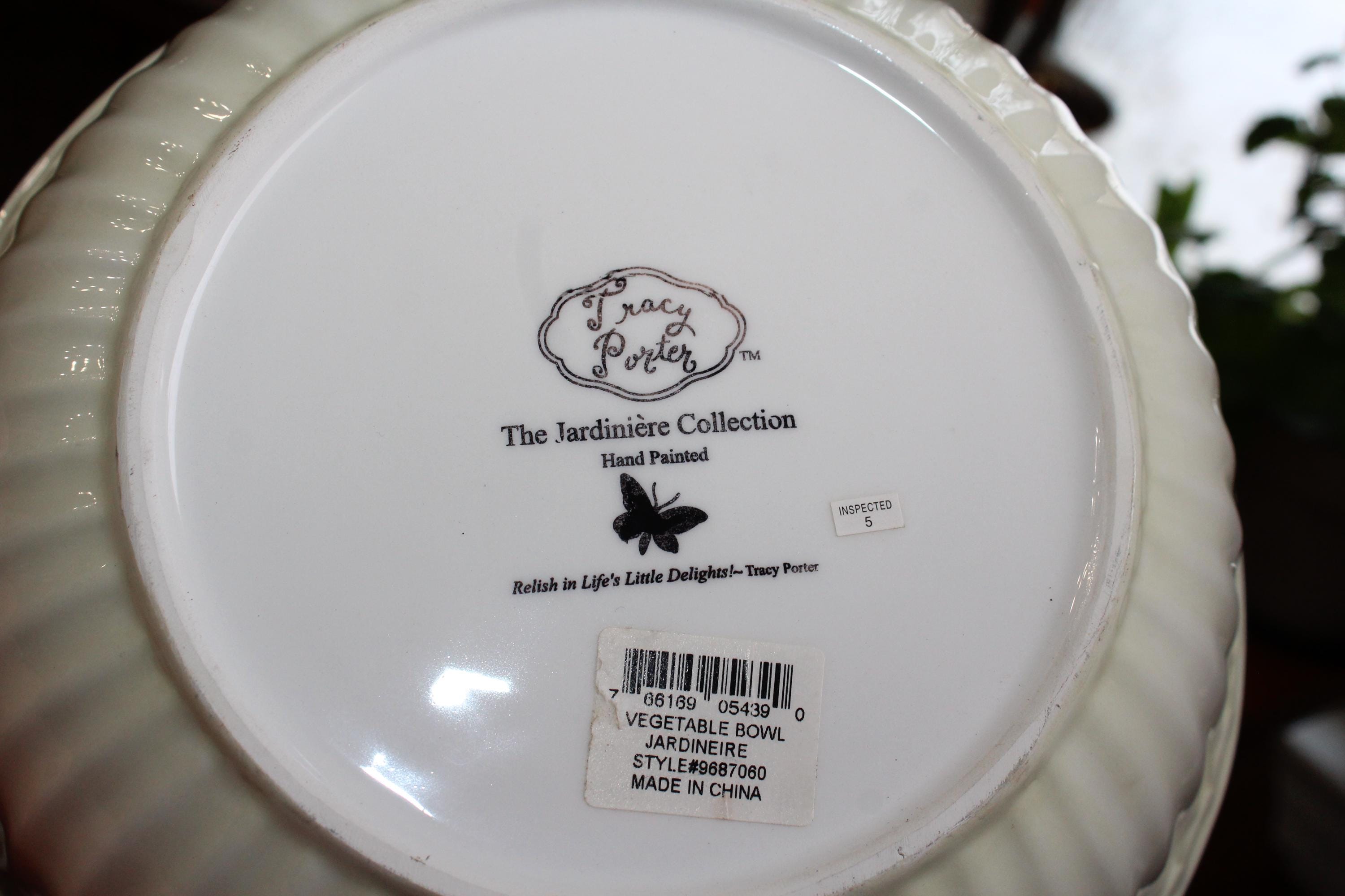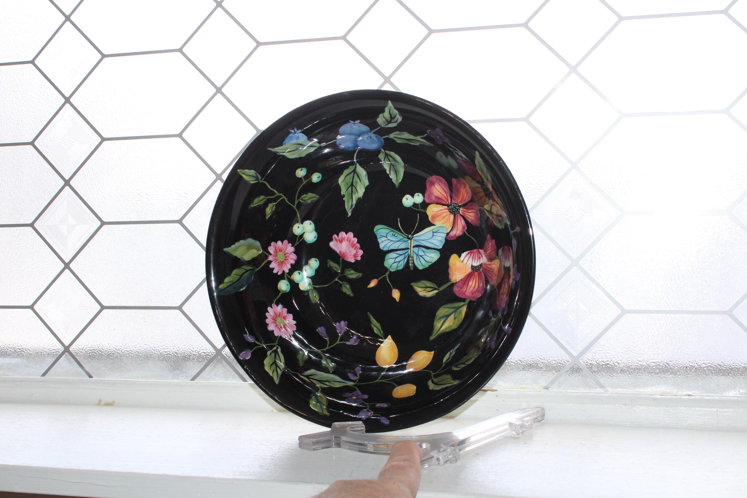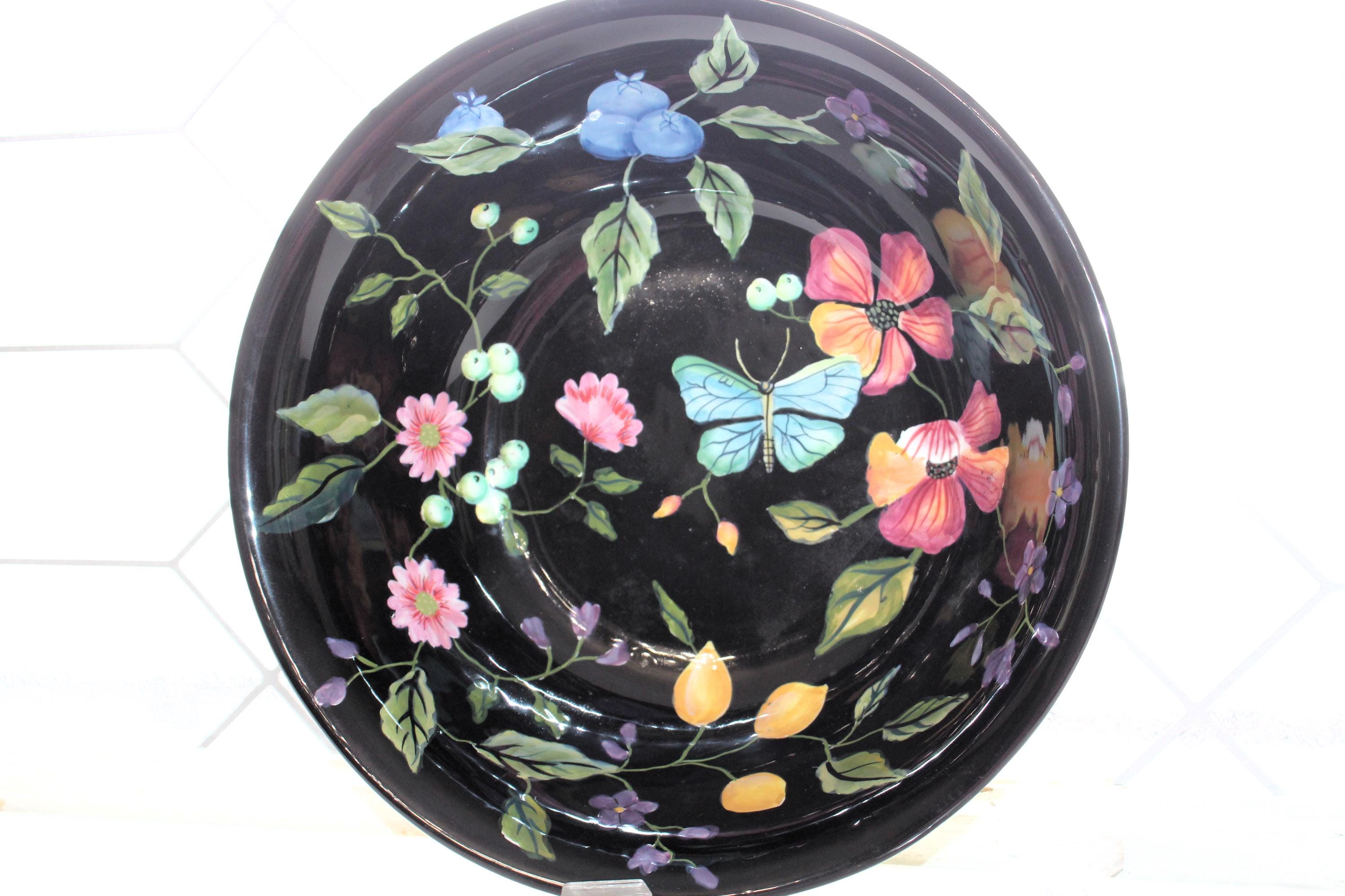 Vintage Tracy Porter Jardiniere Collection large serving bowl in black with flowers and butterfly, in excellent condition and great for use and display. It measures 3 1/4" high x 10 1/4" wide. No chips or cracks, displays very well. Enjoy!