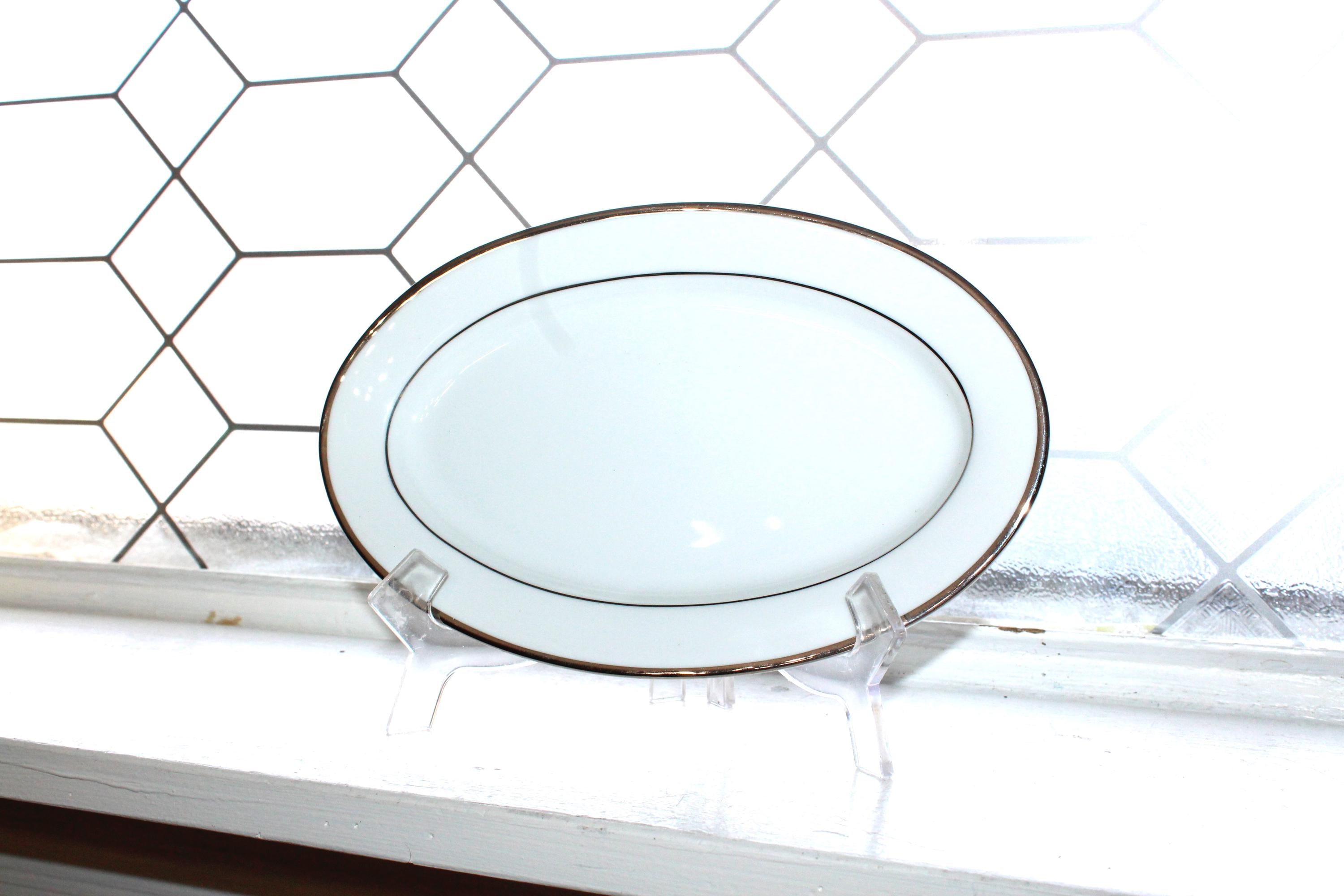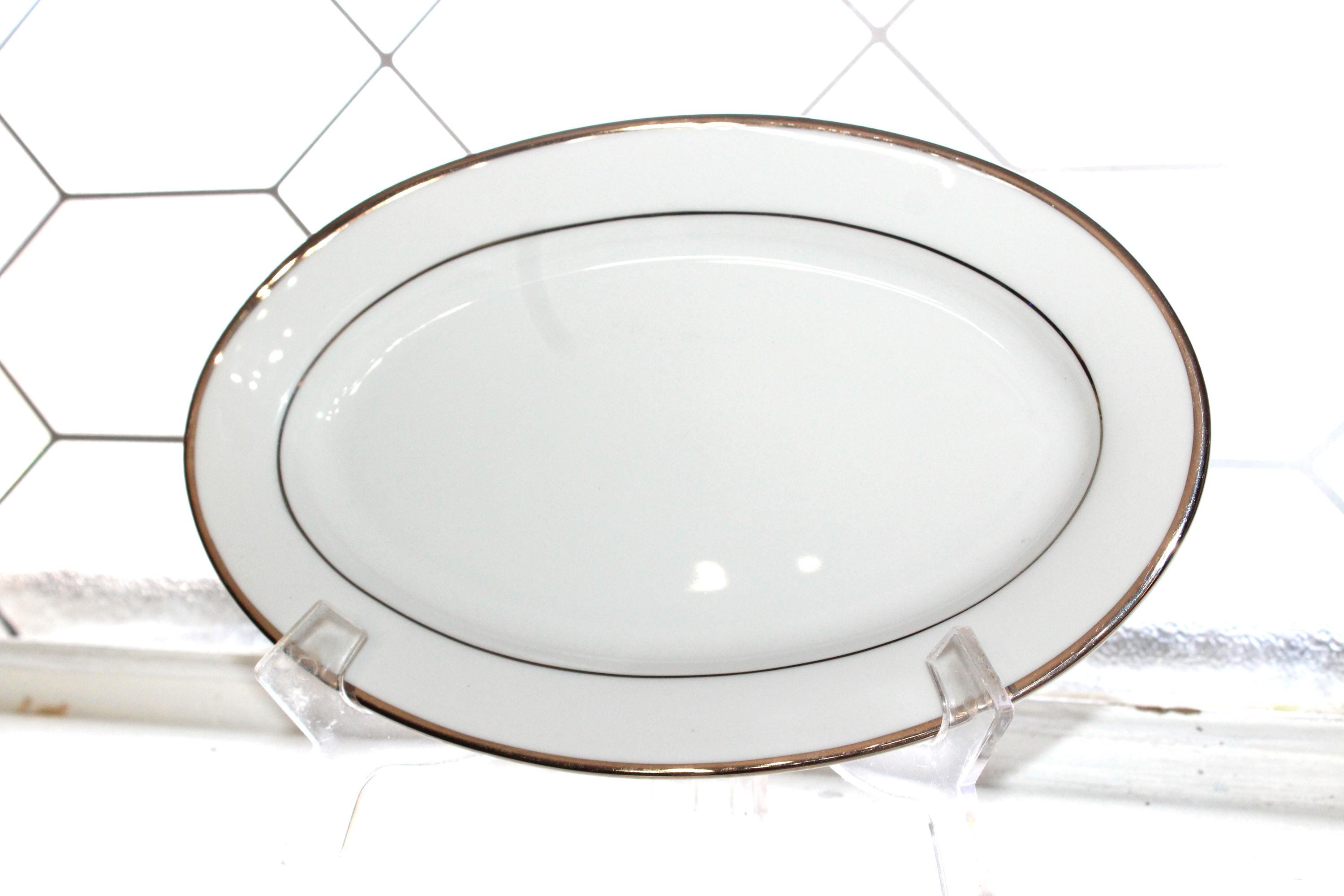 Nikko Patra Band of Platinum fine china oval butter or relish tray, in excellent condition. It measures 9 1/4" x 5 7/8" wide. No chips, cracks or crazing, perfect for use or display. I HAVE SEVERAL OTHER PIECES OF THIS PATTERN AVAILABLE IN MY SHOP. Enjoy!