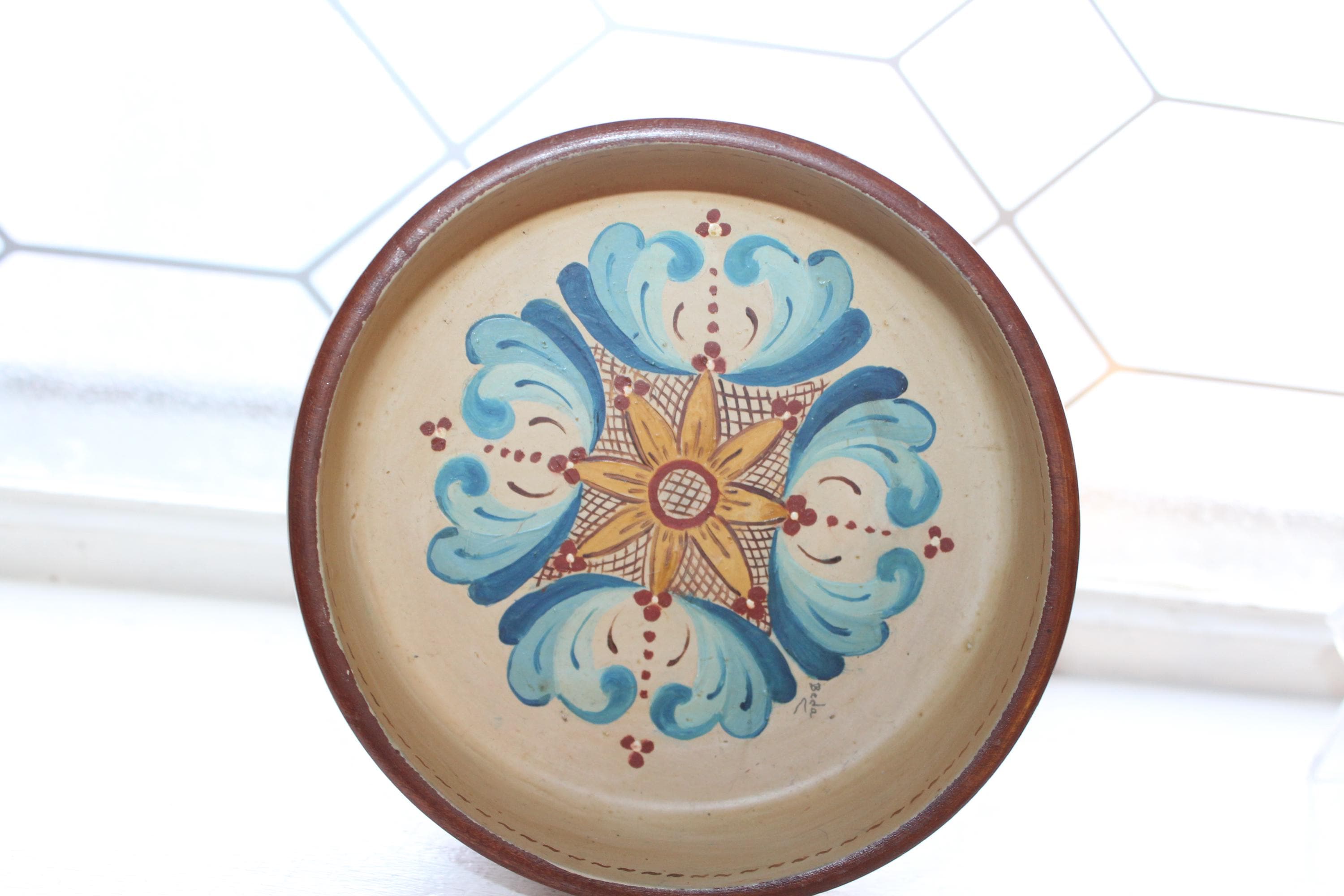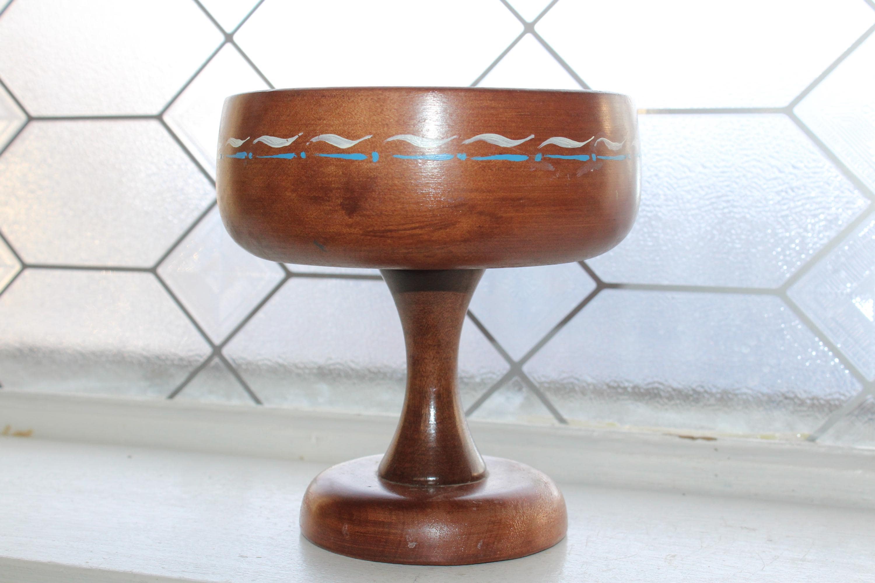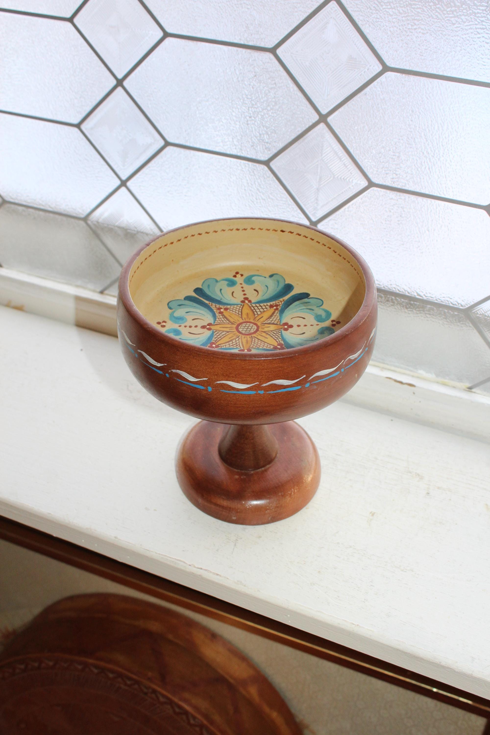 Vintage Norwegian style rosemaling decorated wood compote/pedestal bowl measuring 6 1/8" high x 5 3/4" wide, signed Beda and great for use or display! Enjoy!