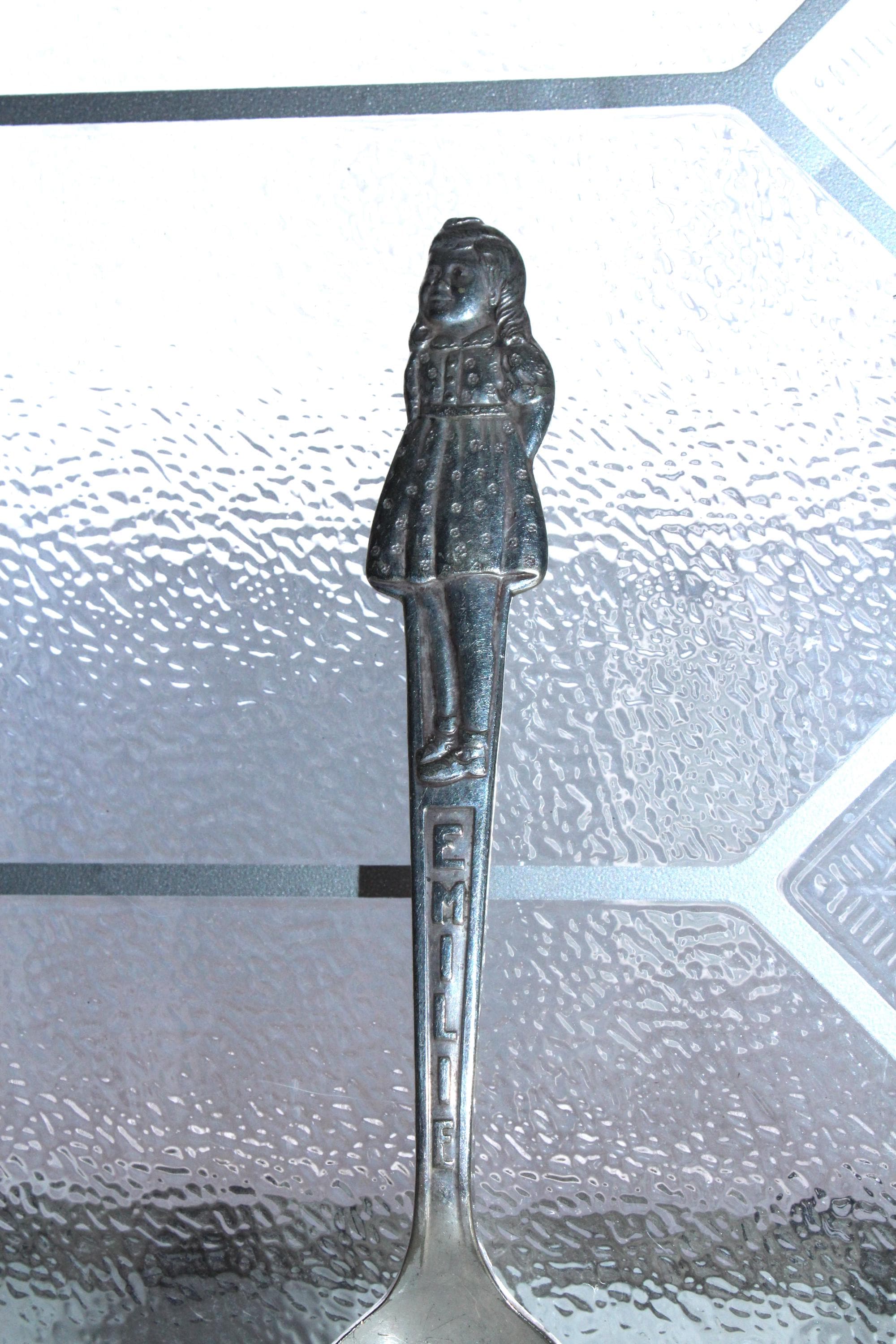 Vintage 1930s silverplate Emily spoon, one of the Dionne Quintuplets, by Carlton, in good condition. It measures 6" long. Enjoy!