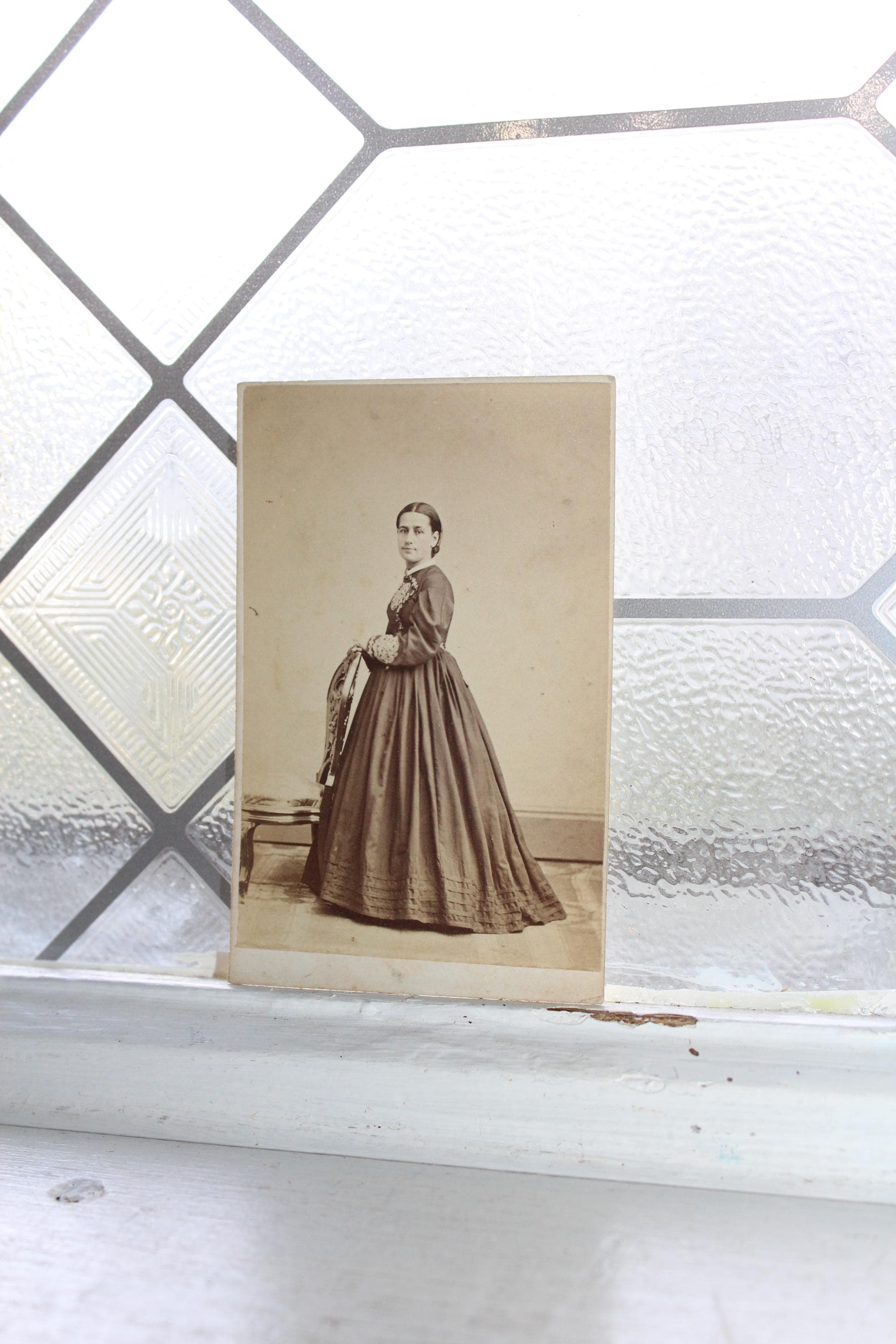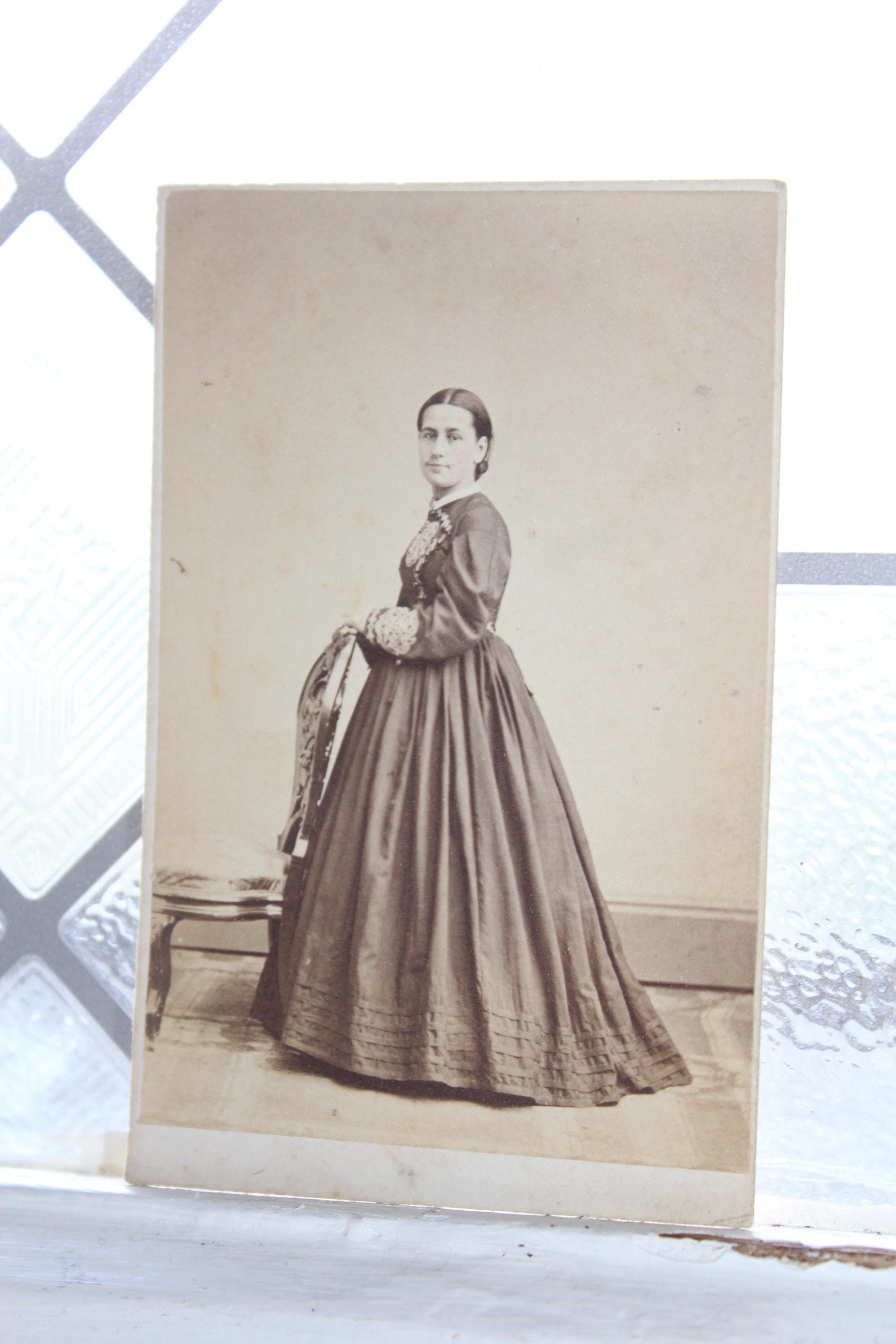 This is an antique carte de visite, or cdv photograph of Victorian woman with an R13, circa 1862 to 1871, 2 cent U.S. Internal Revenue Stamp, proprietary, blue. The card measures 4” x 2 1/2". Enjoy!