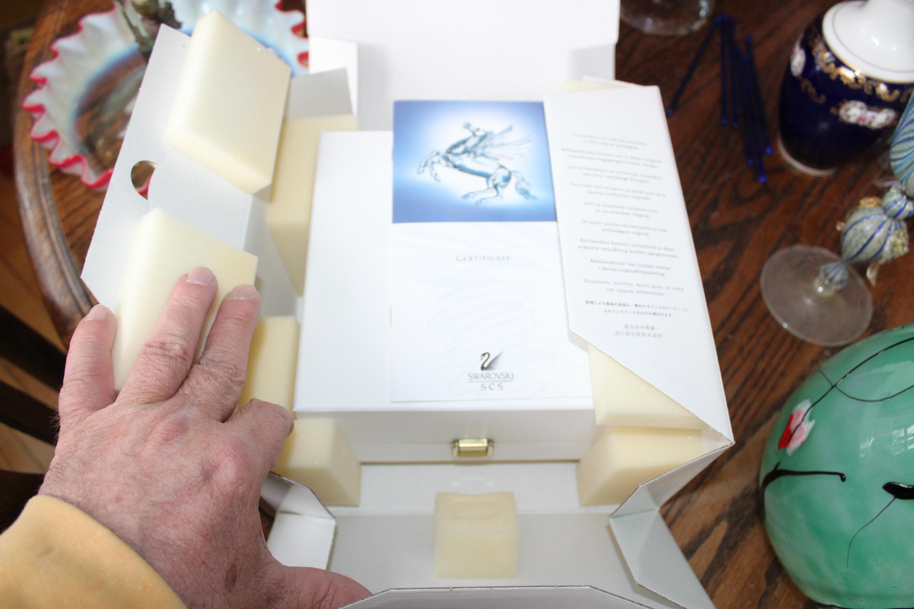 Vintage 1998 Swarovski crystal The Pegasus figurine, part of the Fabuloous Creatures collection, with papers and original box. It is in mint condition. Enjoy!