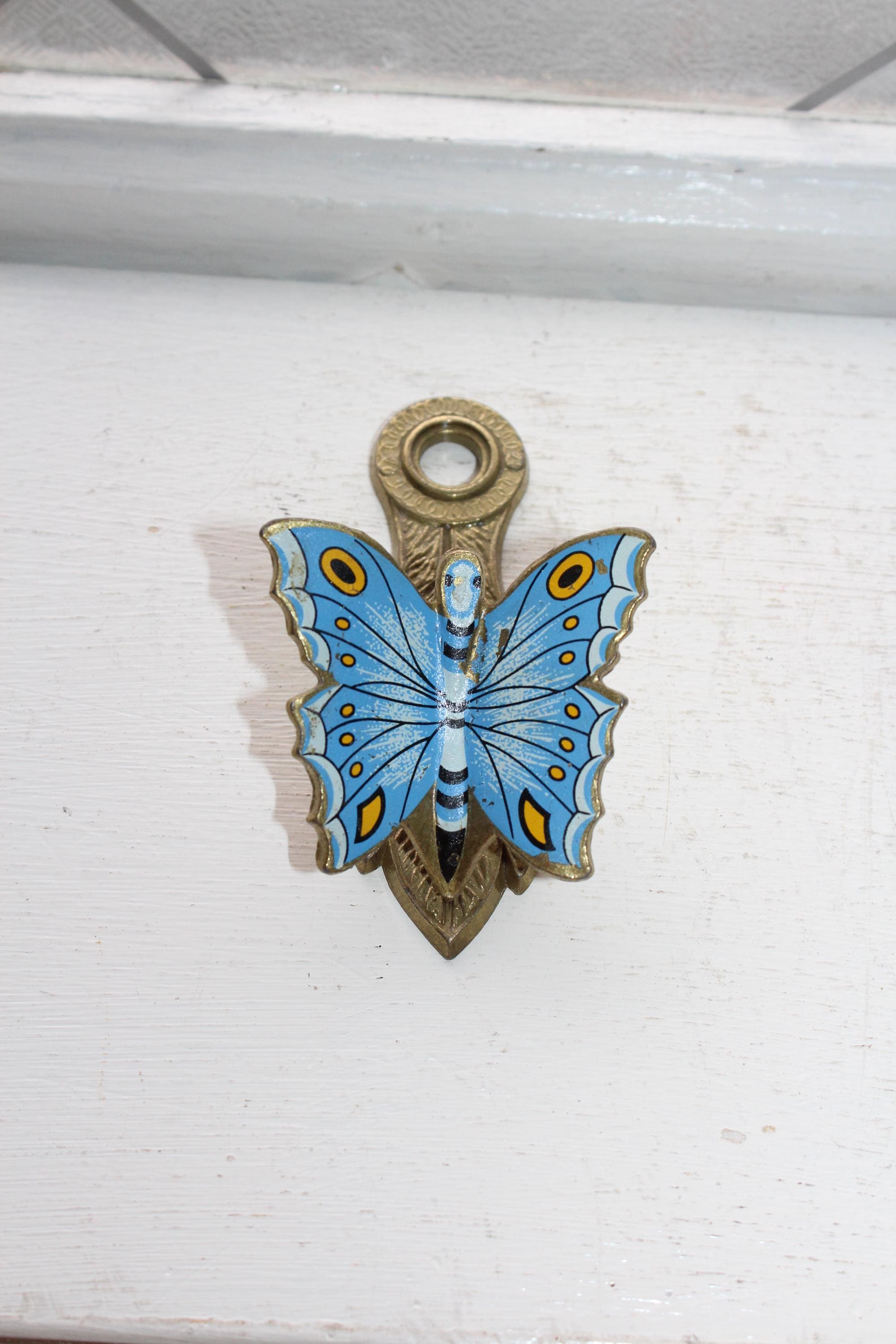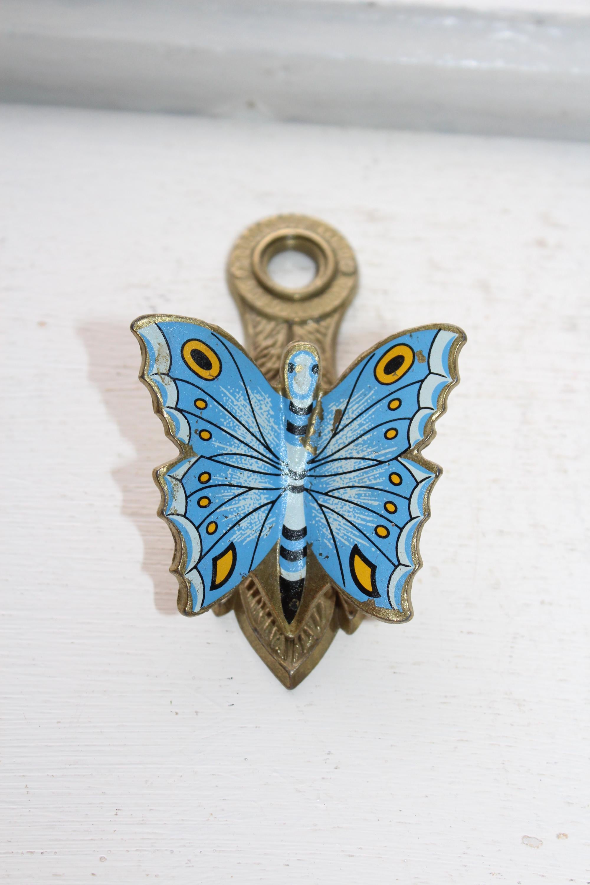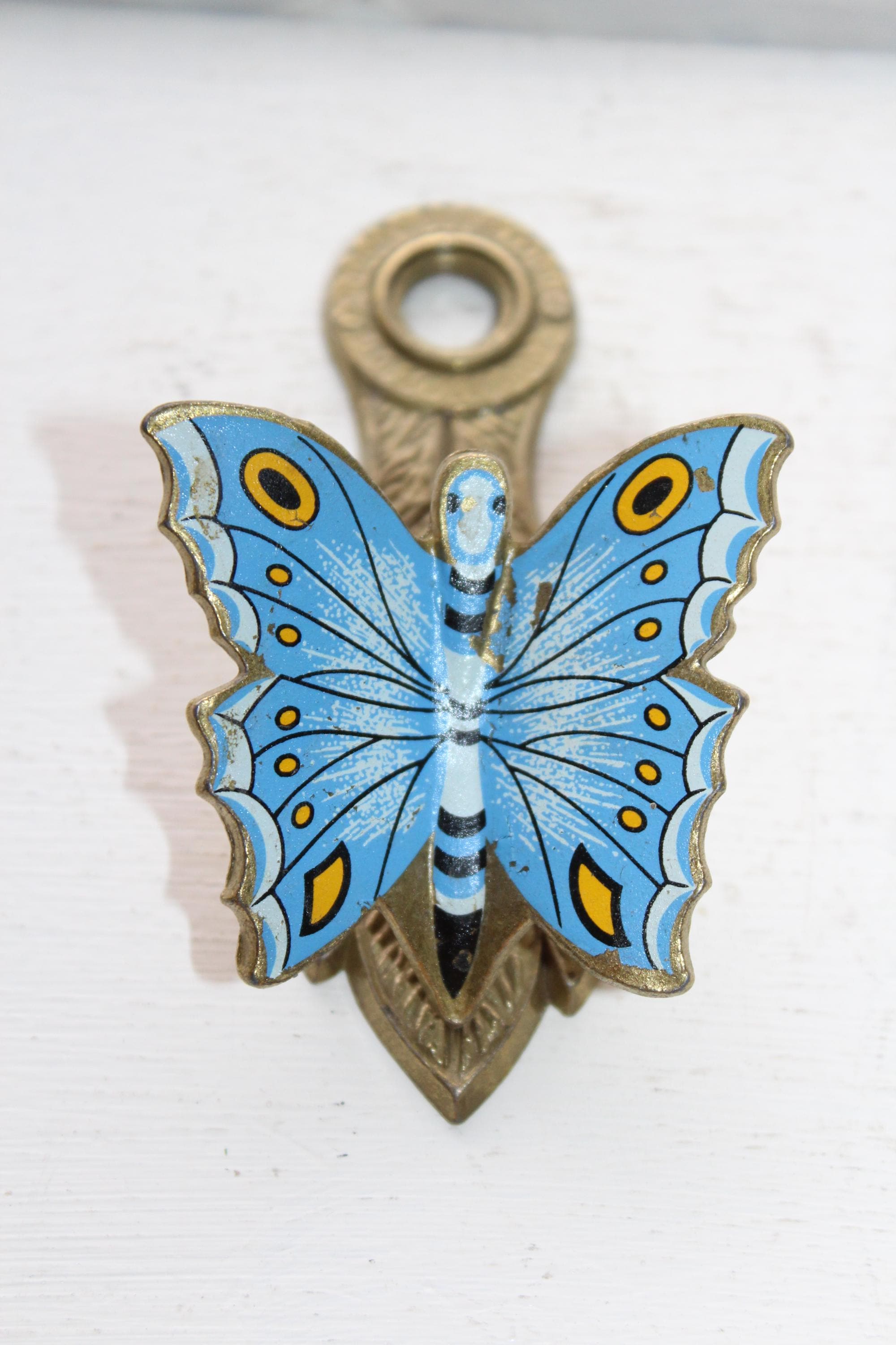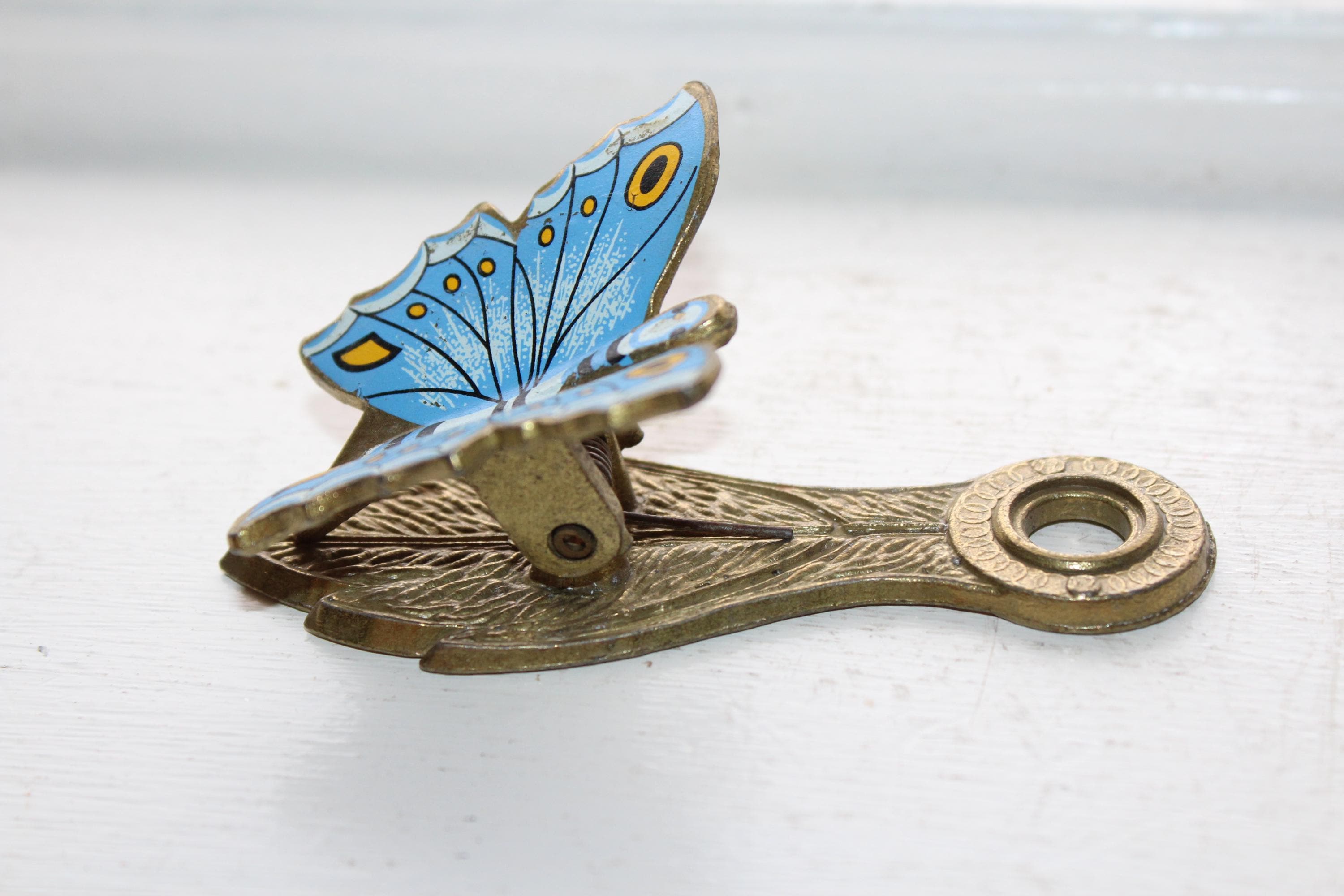 Vintage blue butterfly brass clip by Allied, great as a desk clip, paper clip or wall clip, spring loaded and in good condition. It measures 4" long and works well. Several other colors are available in separate listings. Enjoy!