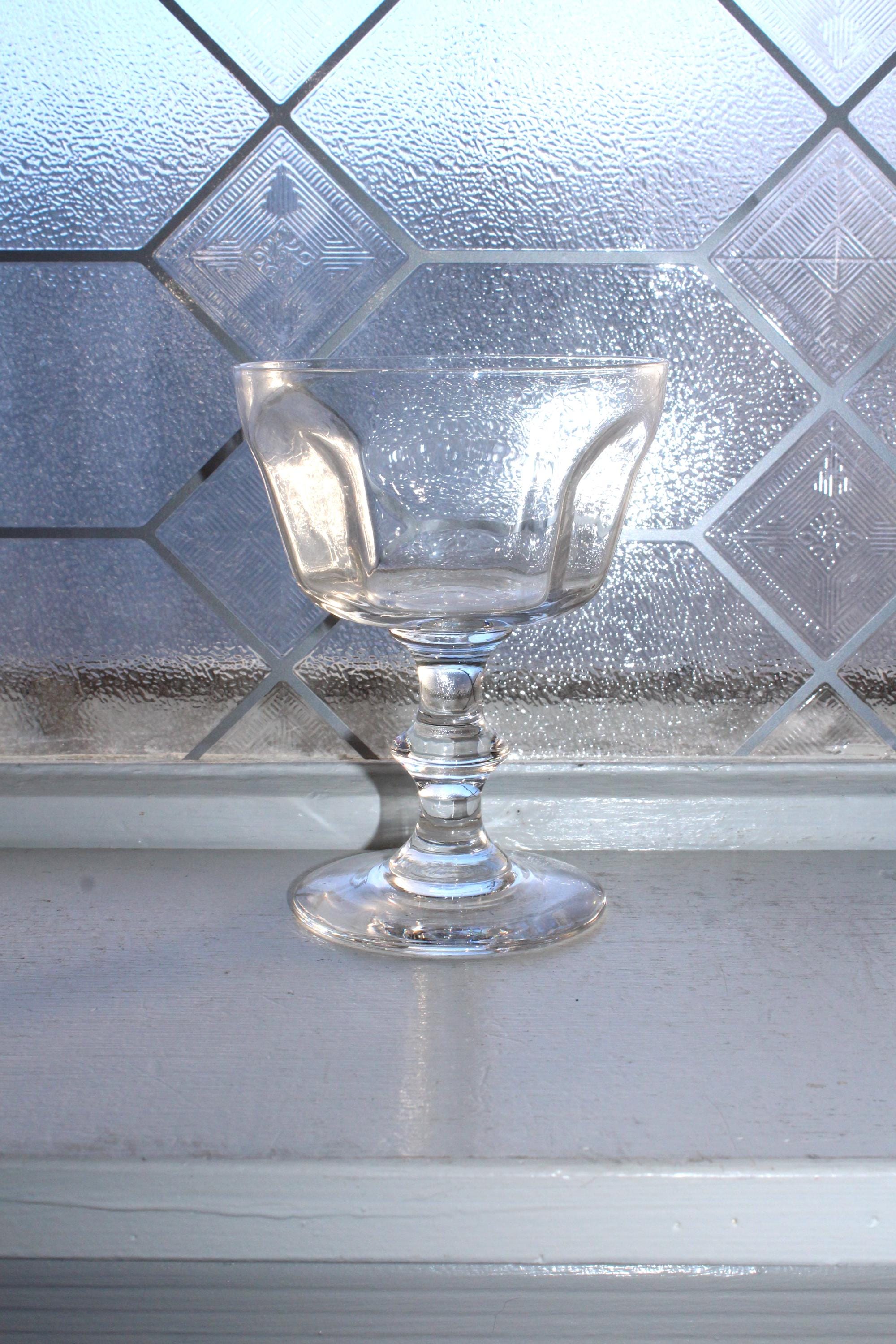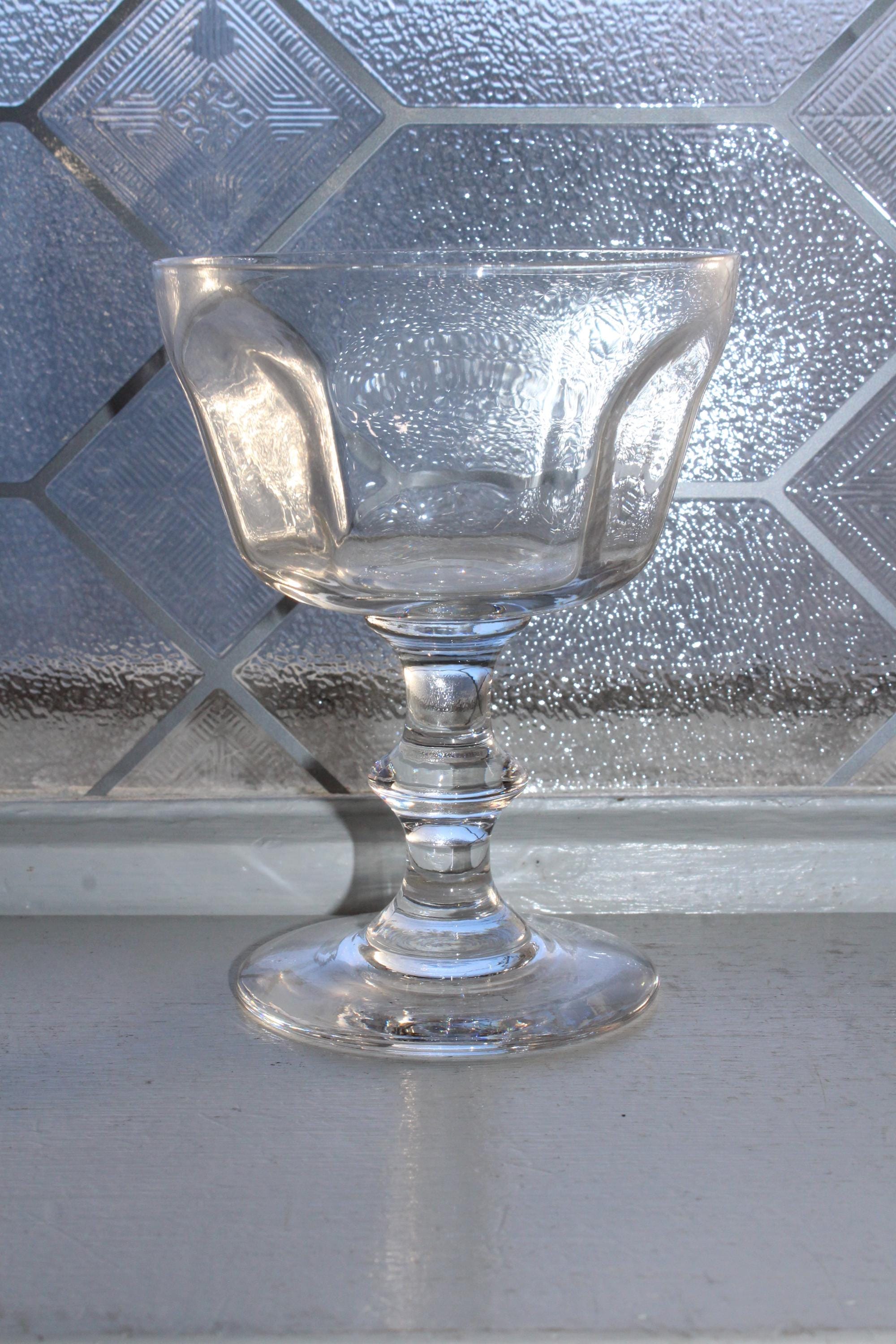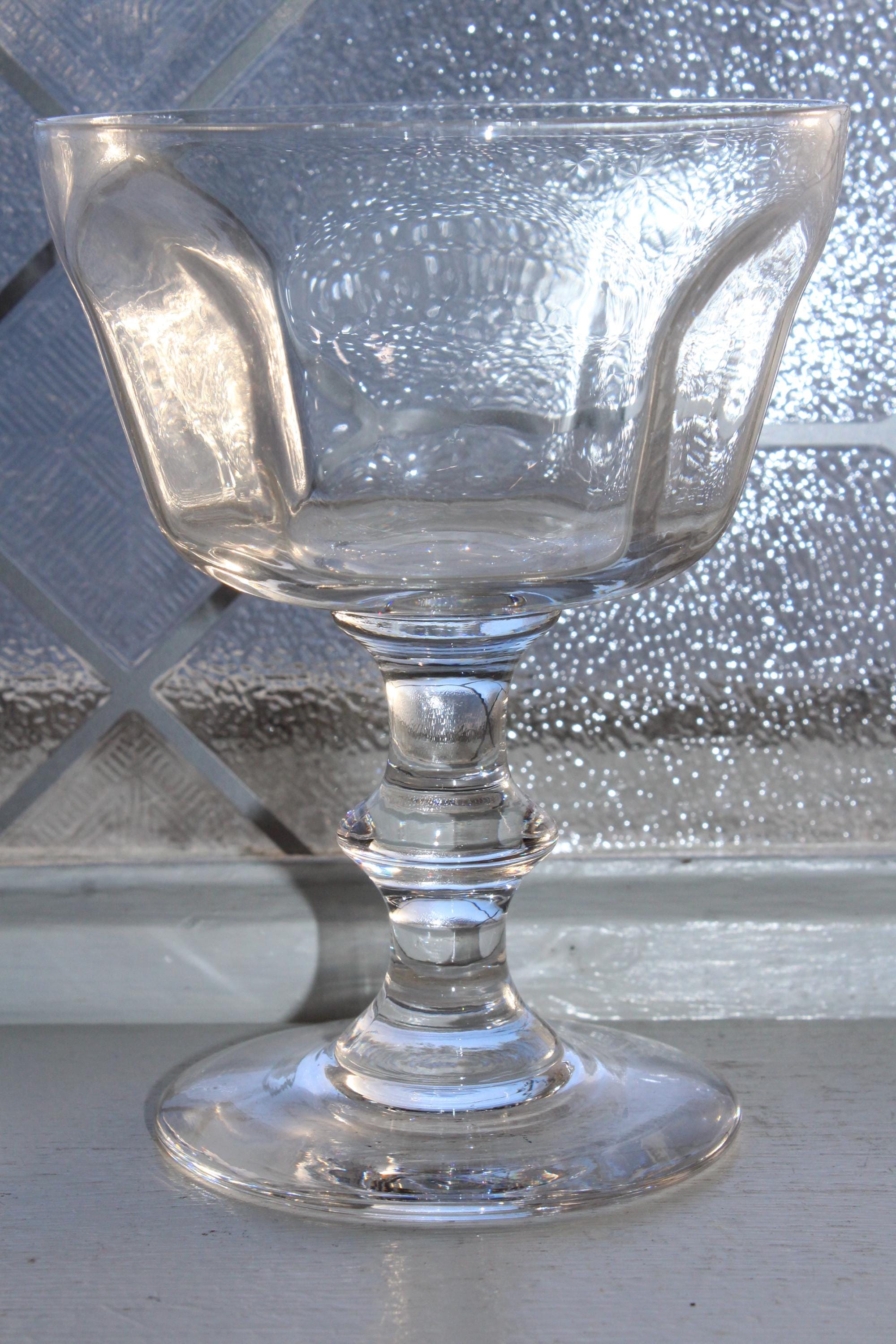 Vintage Mid Century Lenox glass footed champagne coupe or tall sherbet bowl in the Antique Clear pattern, in excellent condition. It measures 5" high. No chips or cracks, great for use or display in a retro home. Enjoy!