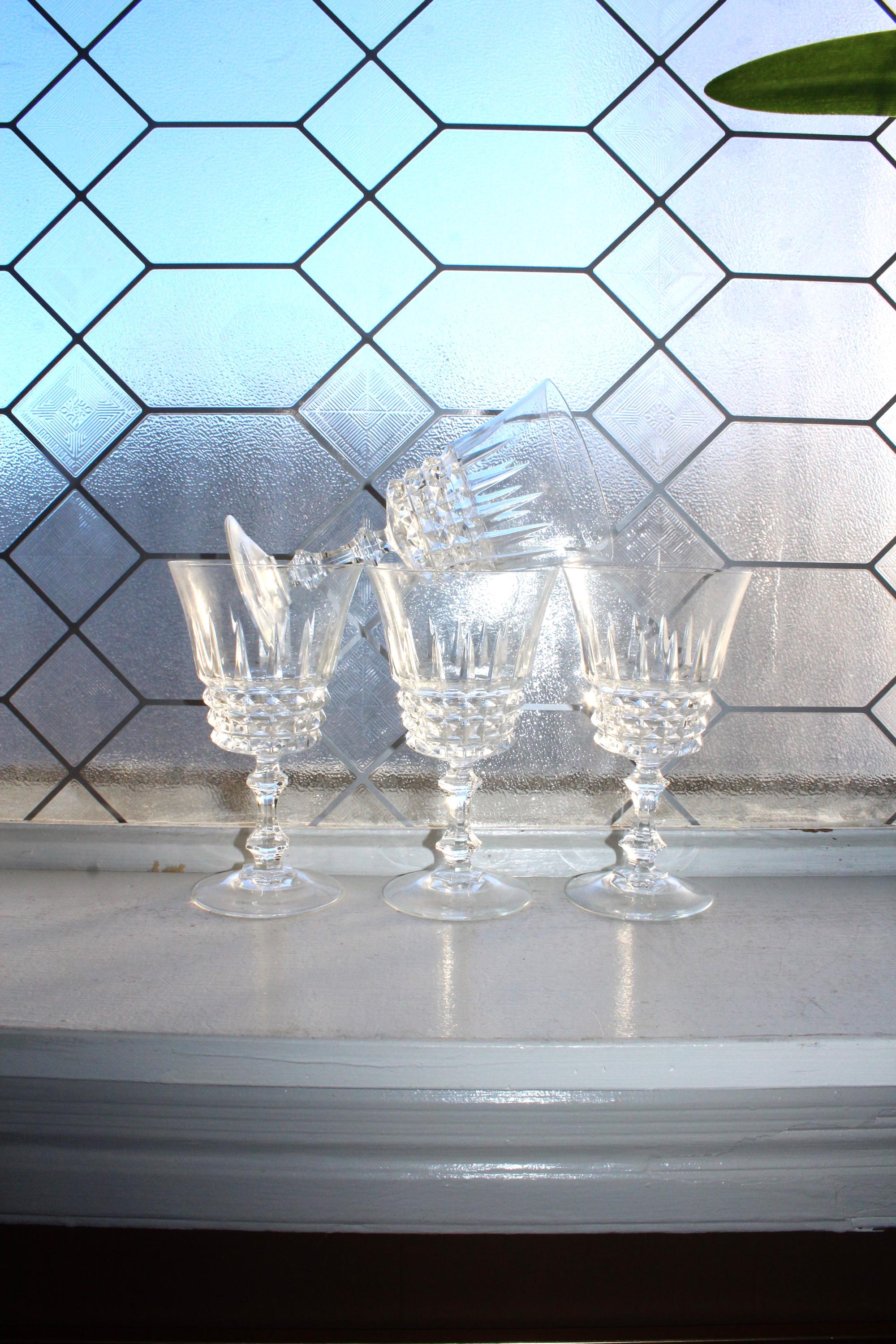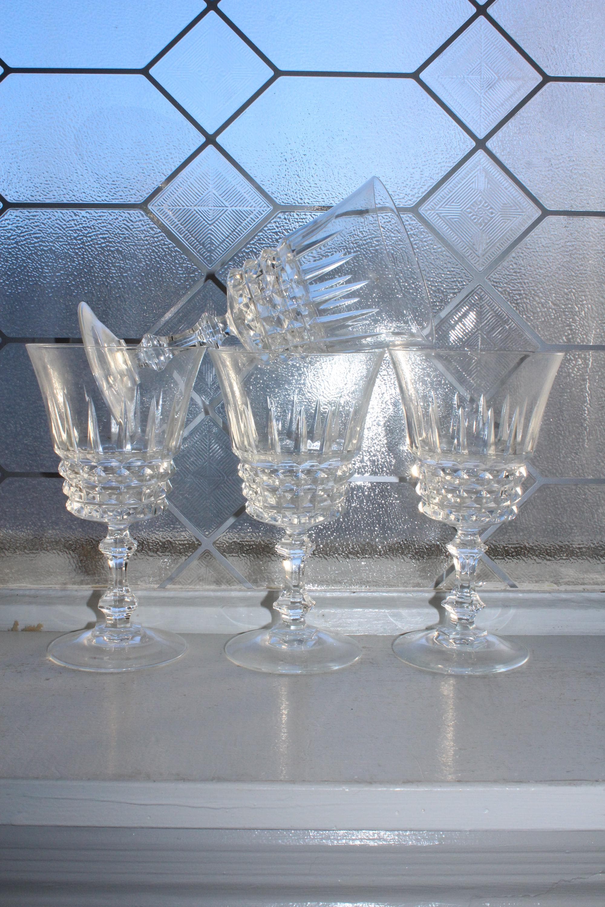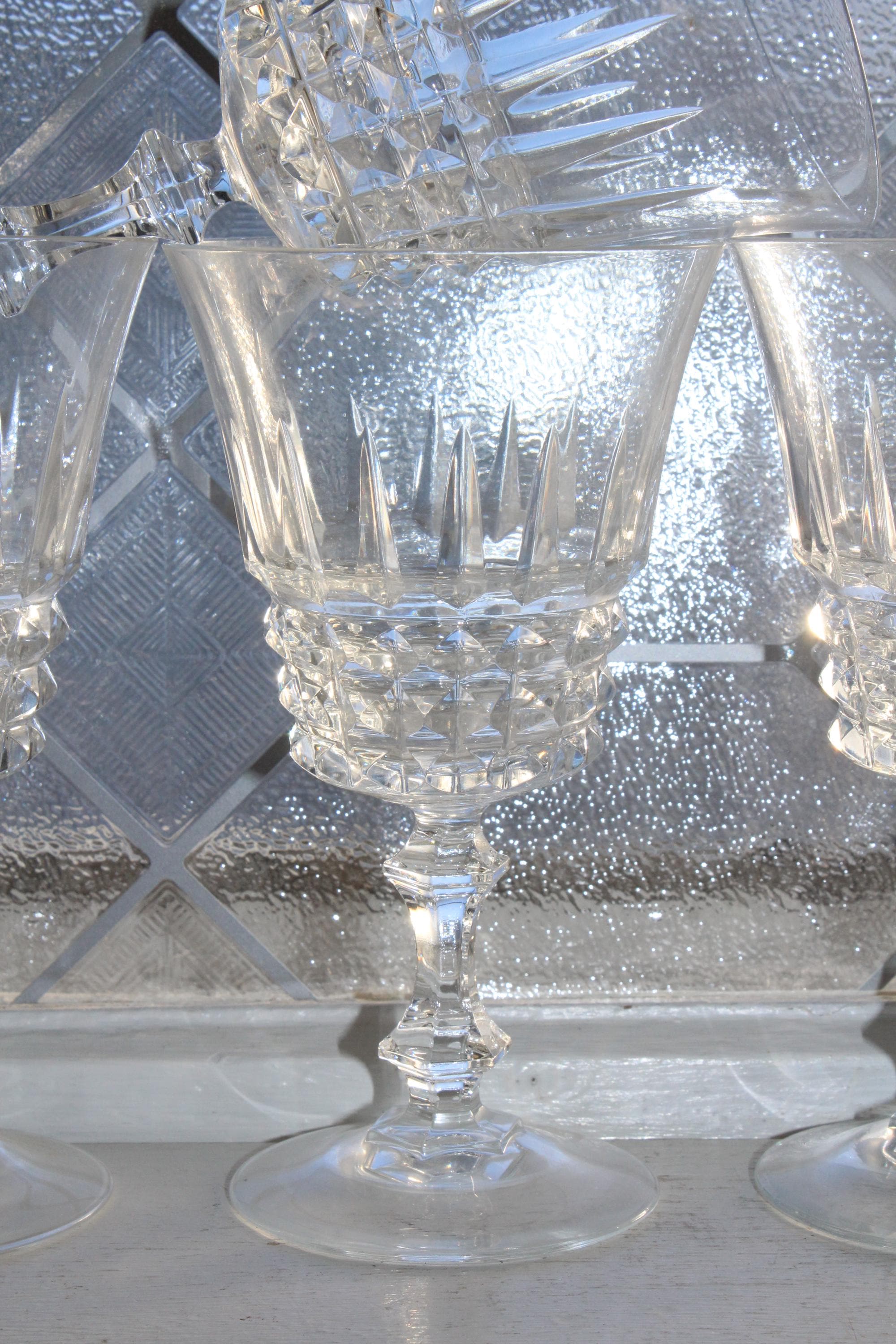 4 vintage crystal wine or water goblets, Tuilleries Villandry by Cristal D'Arques-Durand, in excellent condition and perfect for use or display. They measure 6" high and have no chips or cracks. Enjoy!