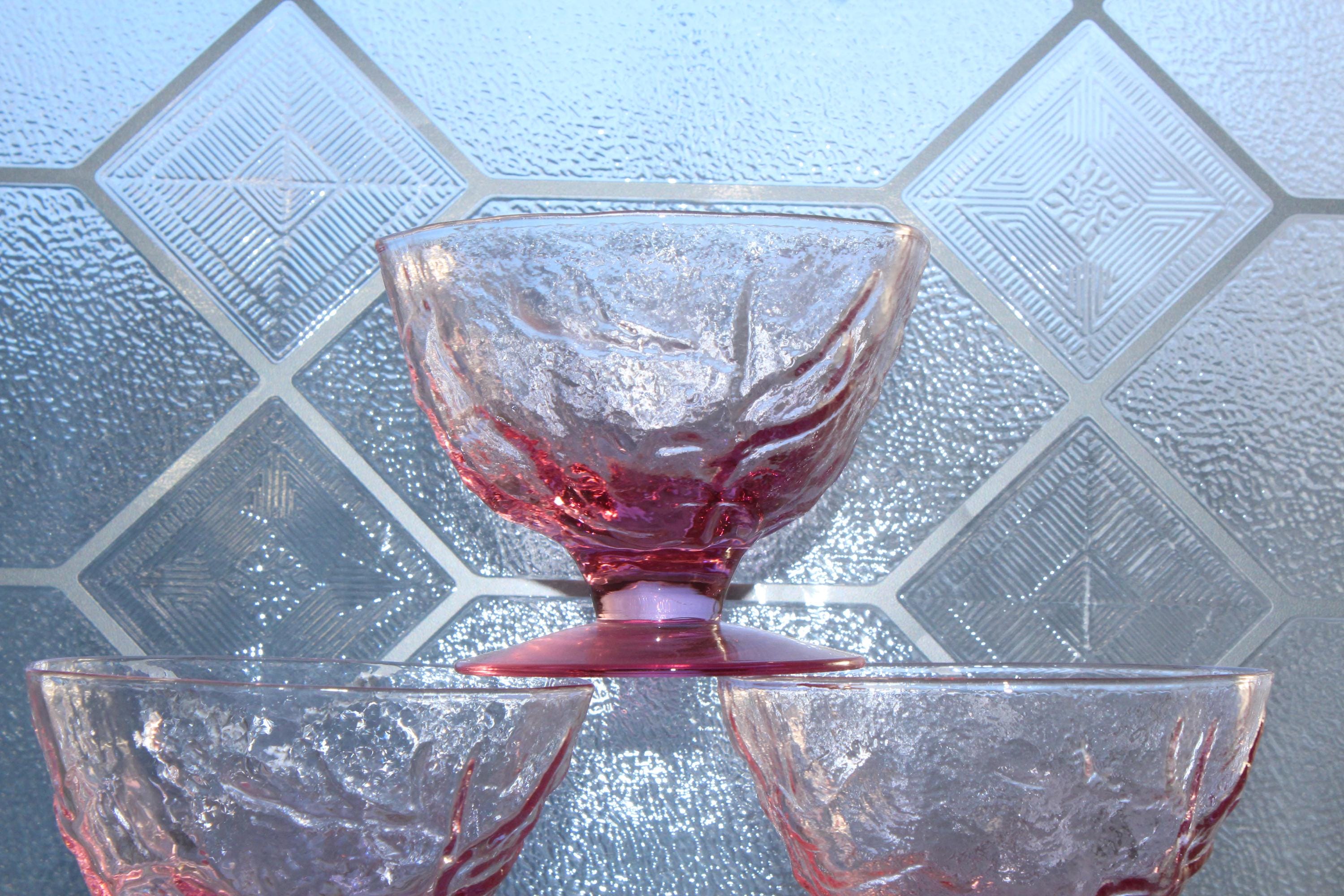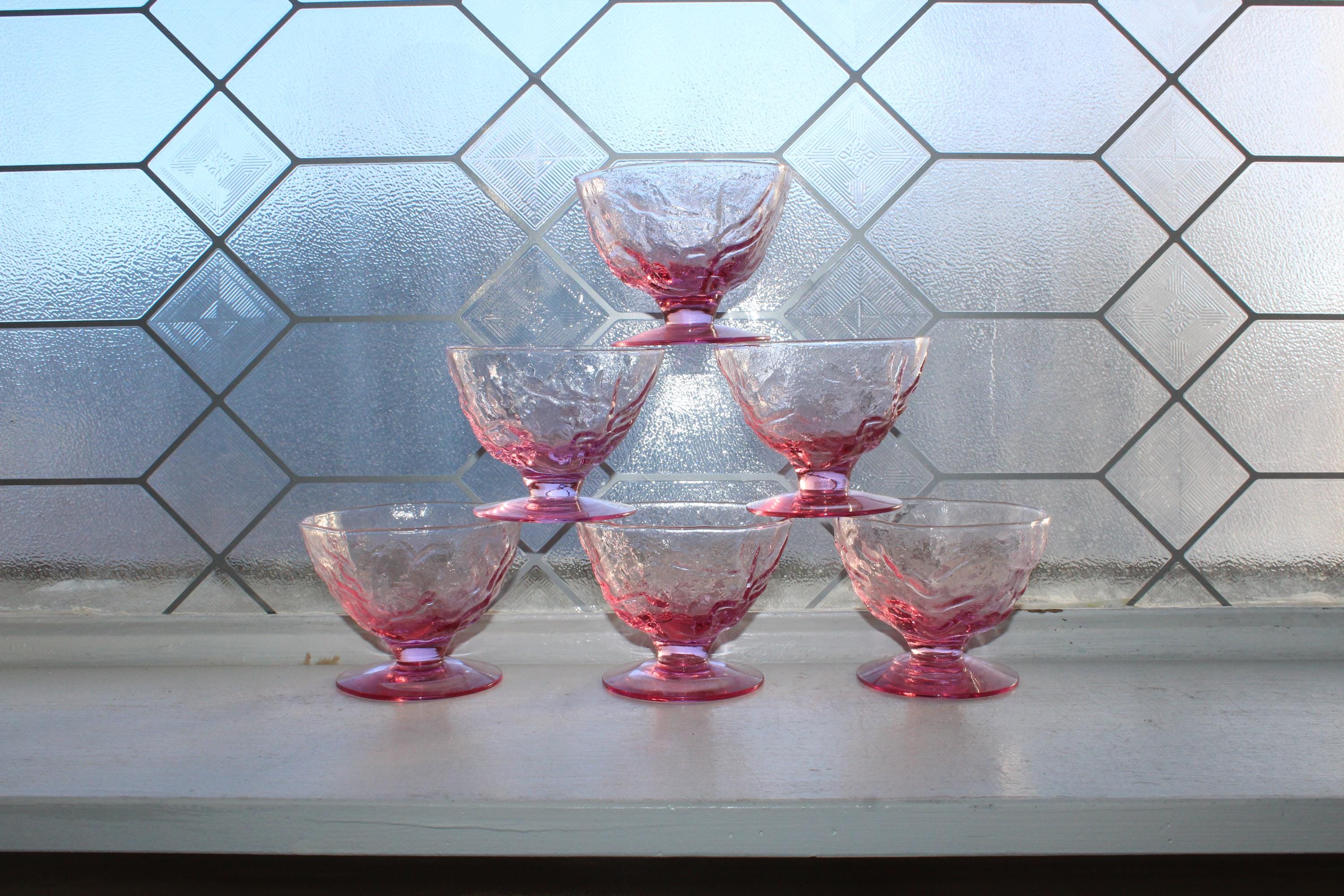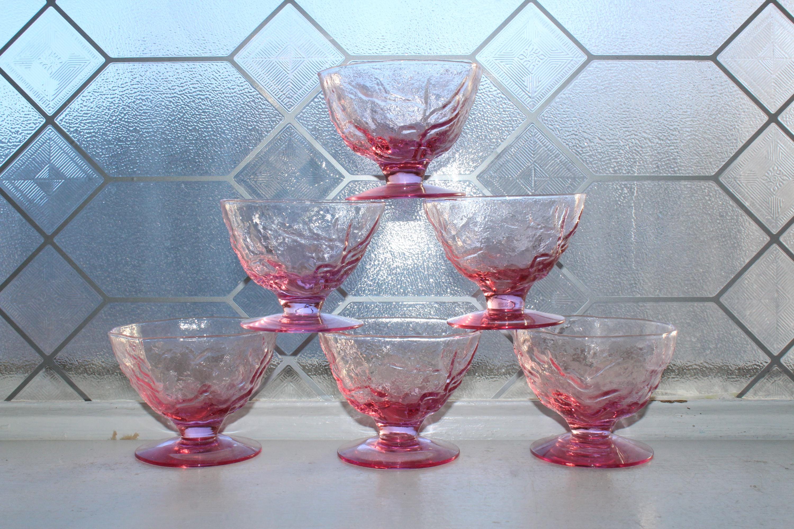 6 vintage Mid Century pink Driftwood by Seneca crinkle sherbet dishes, in excellent condition. They measure 3" high. No chips or cracks, perfect for use or display. Enjoy!