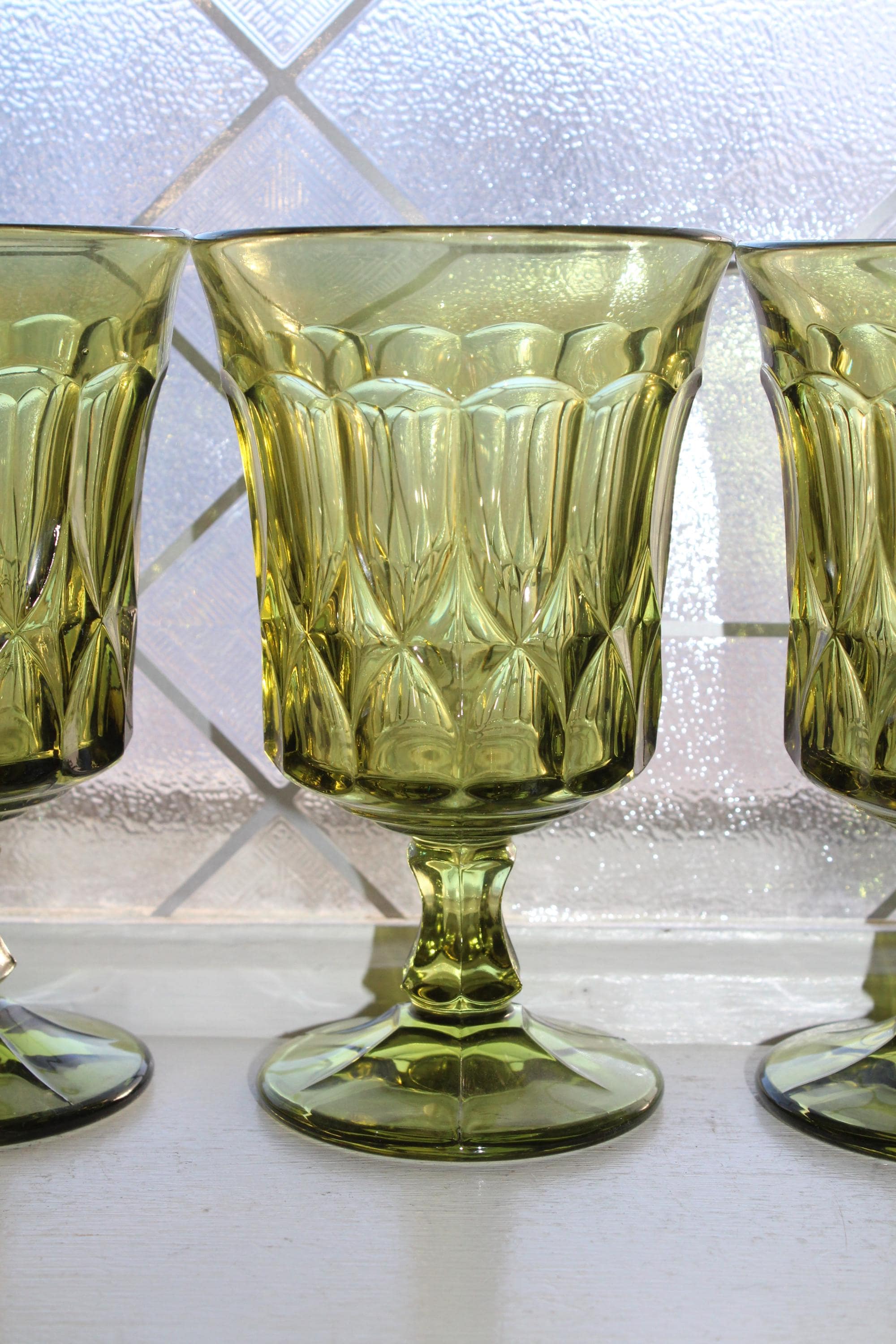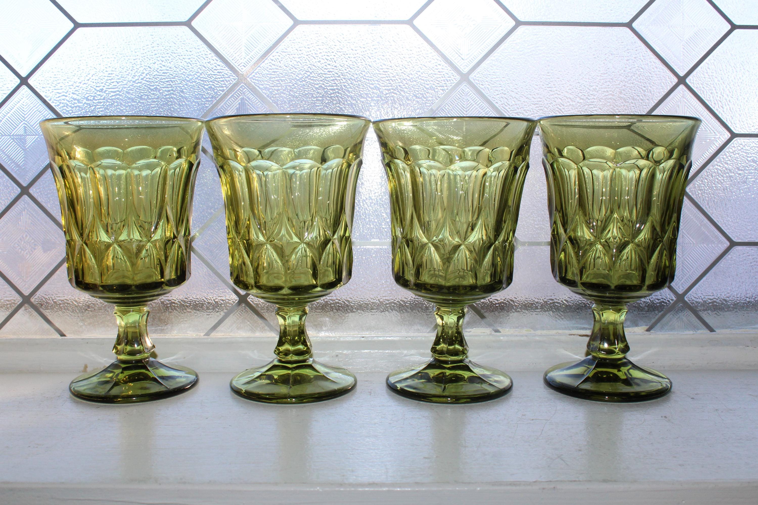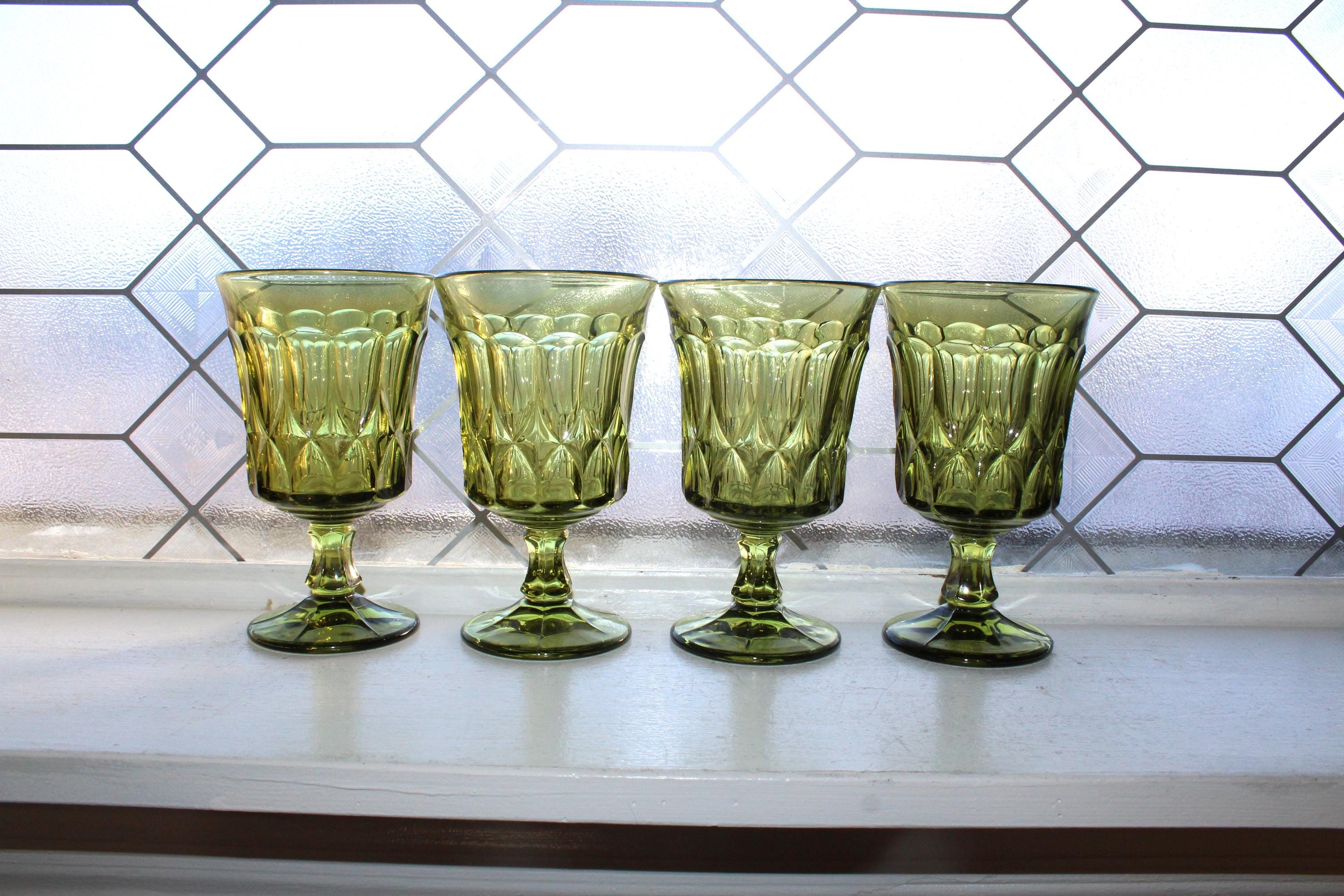 Set of 4 vintage 1970s Noritake Perspective green glass iced tea tumblers/goblets. Each one measures 6 1/2" high. No chips or cracks, great for use or display. Enjoy!