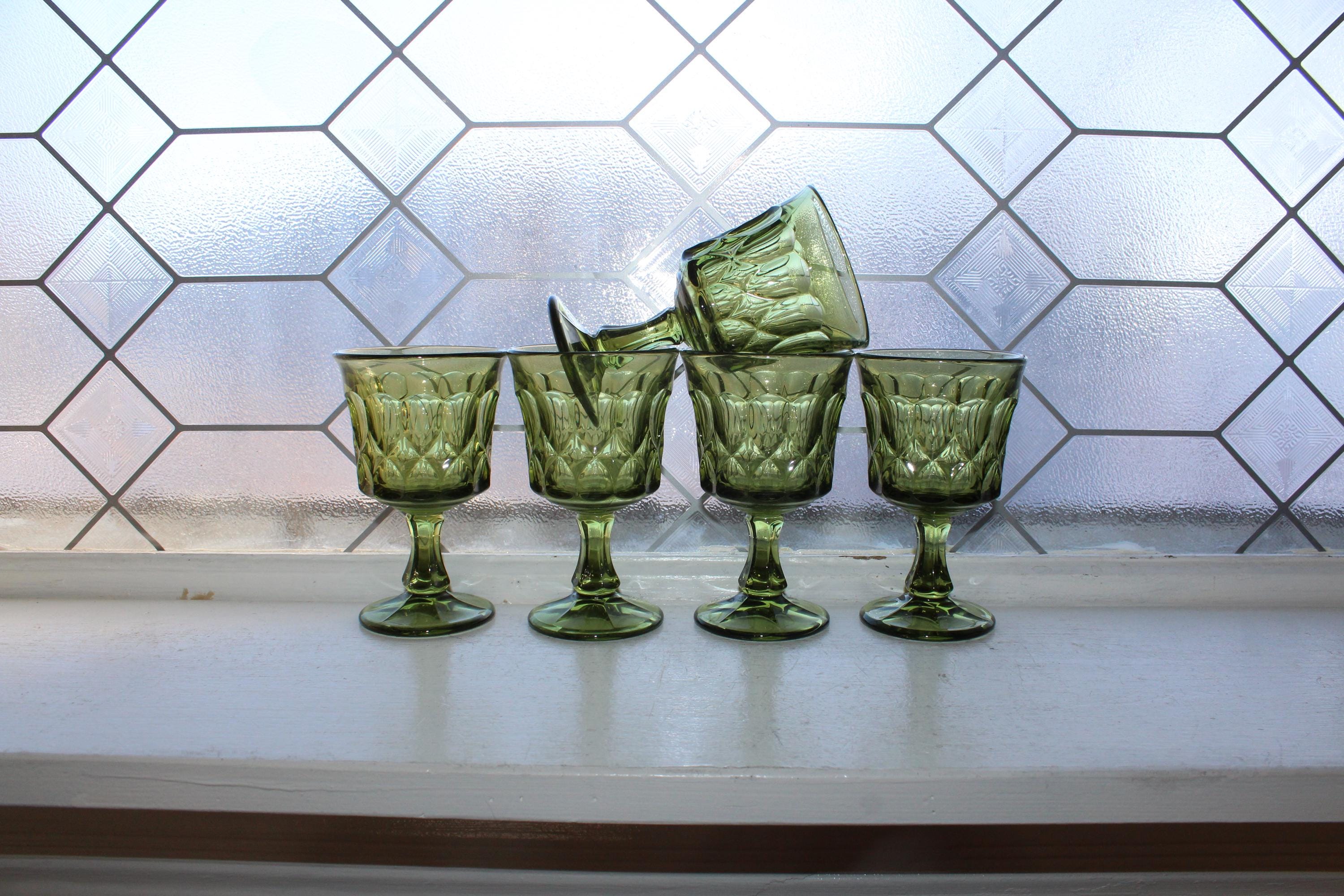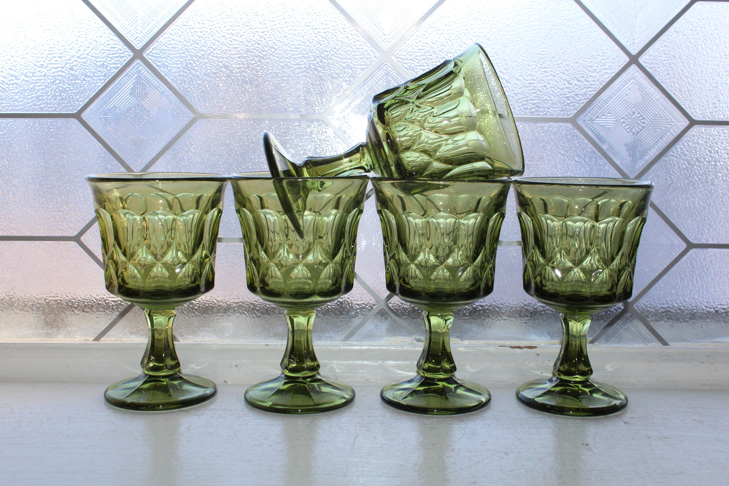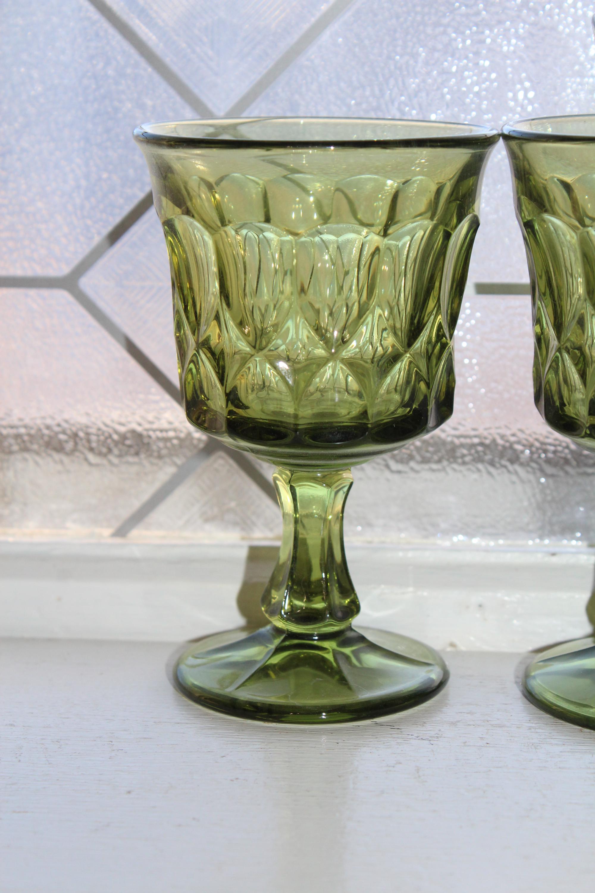 Set of 5 vintage 1970s Noritake Perspective green glass water goblets. Each one measures 4 7/8" high. No chips or cracks, great for use or display. Enjoy!