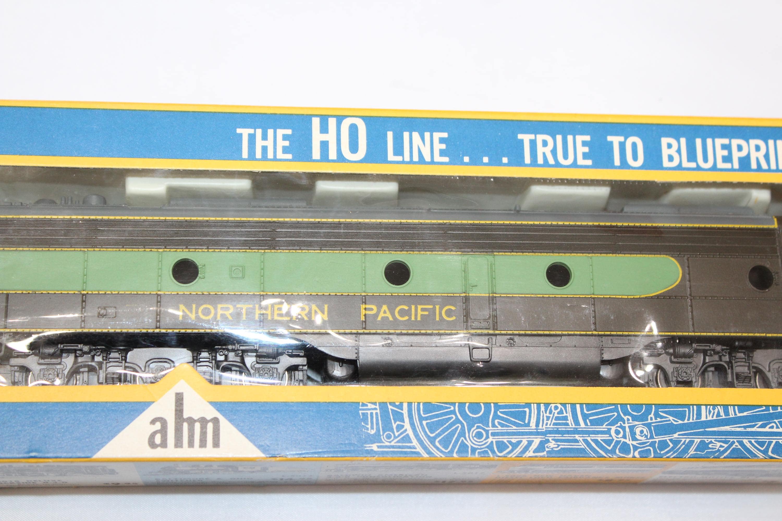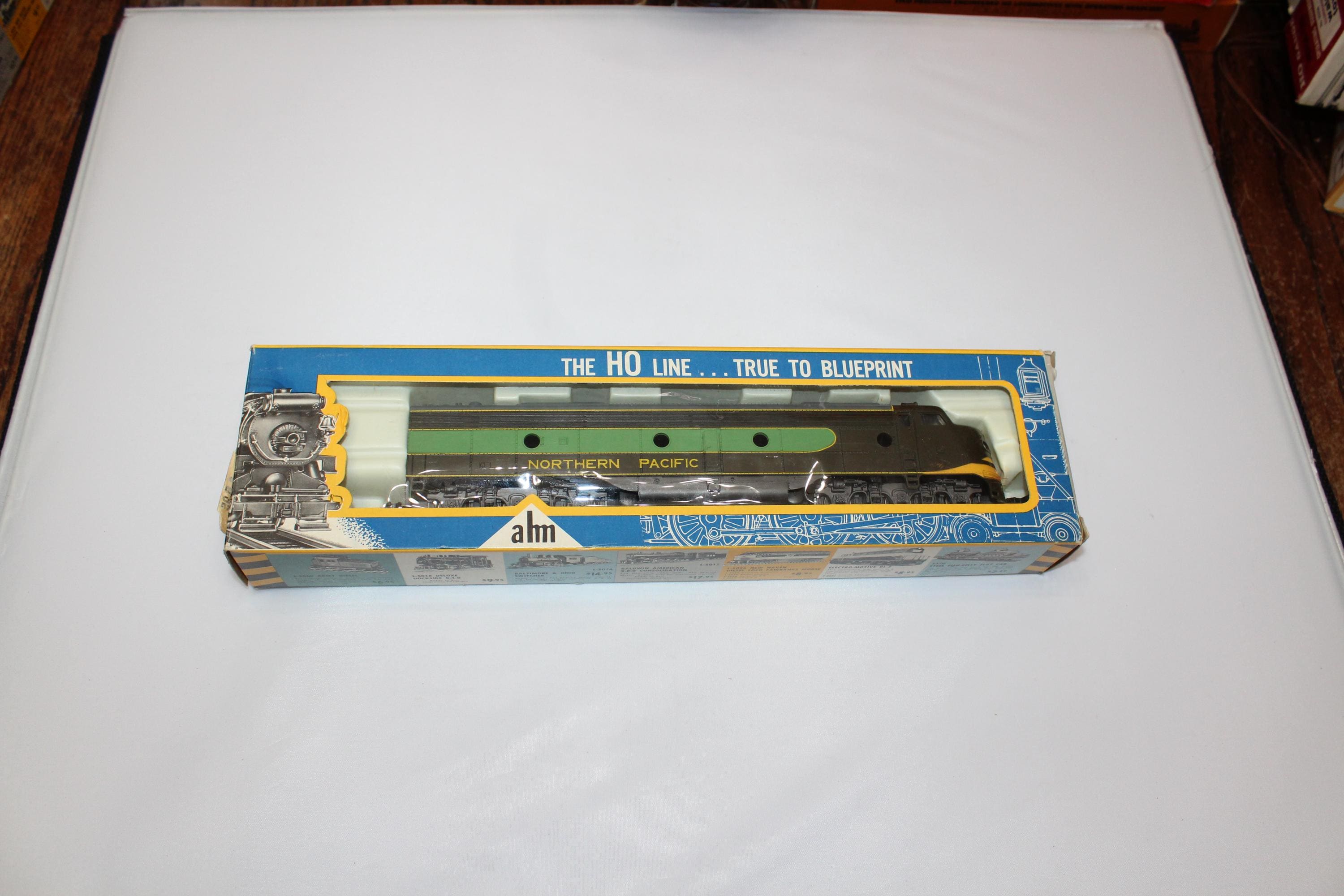 This is a vintage AHM HO Scale Rivarossi Northern Pacific E-8 A-Dummy diesel train engine #5127D, in very good condition with original box. Car is excellent, box shows wear. Enjoy!