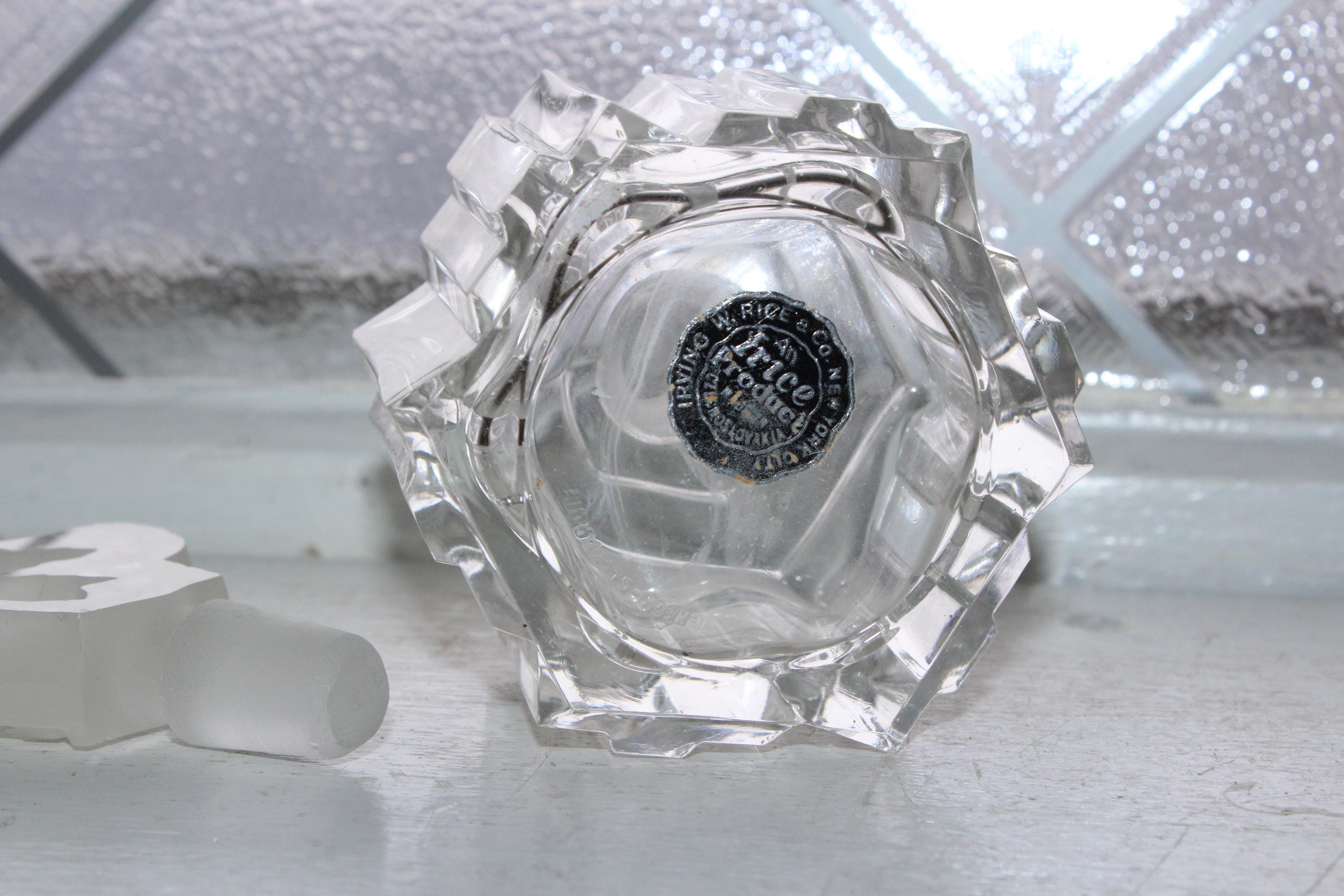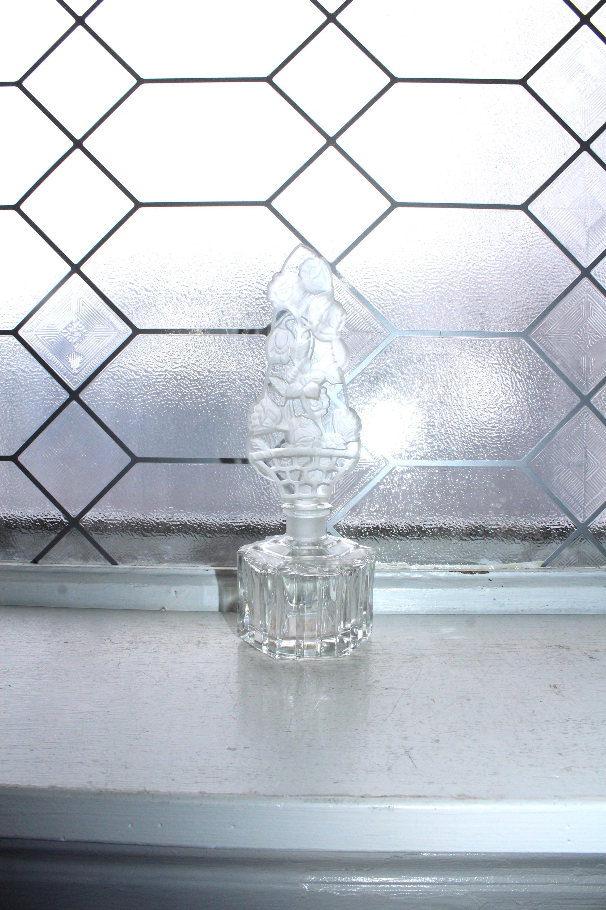 Vintage Irice intaglio cut crystal perfume bottle made in Czechoslovakia, in excellent condition. No chips or cracks. It measures 7 5/8" high. Enjoy!