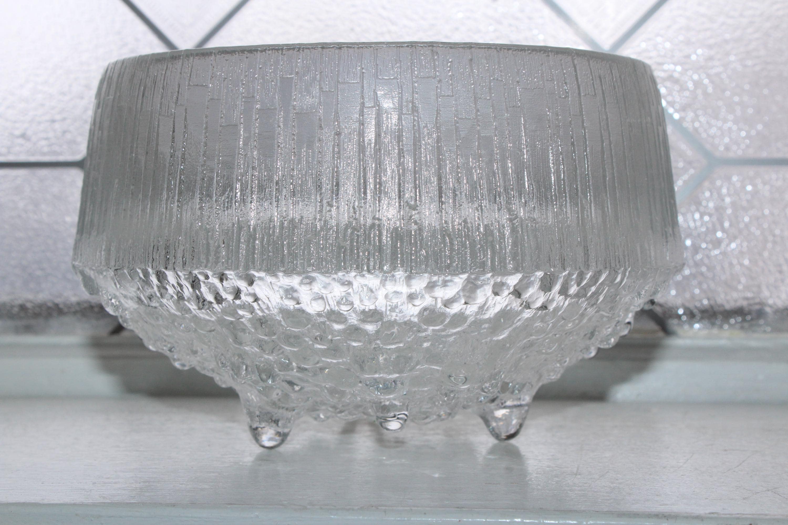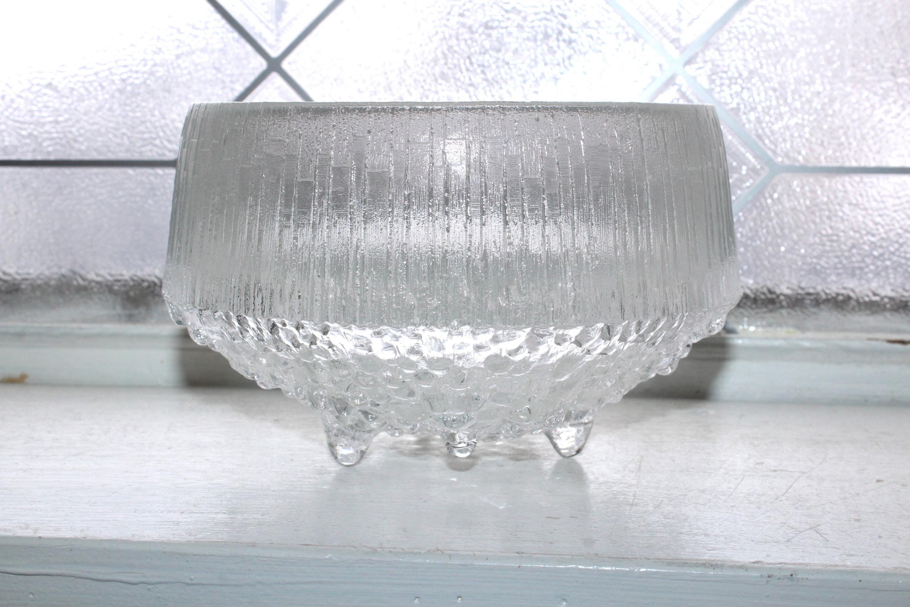 Vintage 1970s Iittala Finland glass Ultima Thule 3 footed bowl, designed by Tapio Wirkkala, in excellent condition. This piece is gorgeous! It measures 6" wide x 4" high and weighs just over 2 lbs. No chips or cracks, perfect for use or display. Enjoy!
