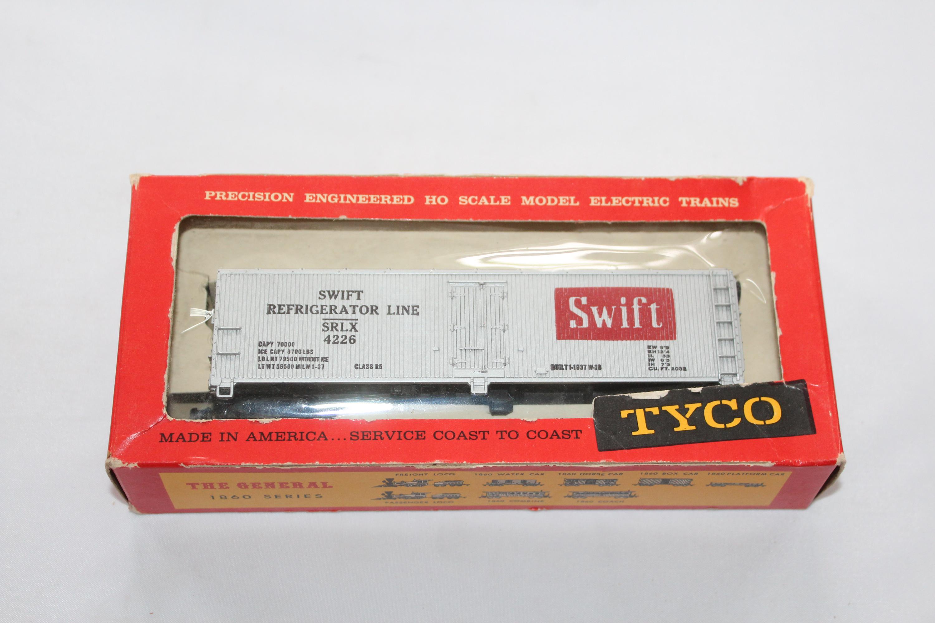 This is a vintage Tyco HO Swift Refrigerator Line railroad car SRLX 4226 T329A, in very good condition with original box. Car is excellent, box shows wear. Enjoy!