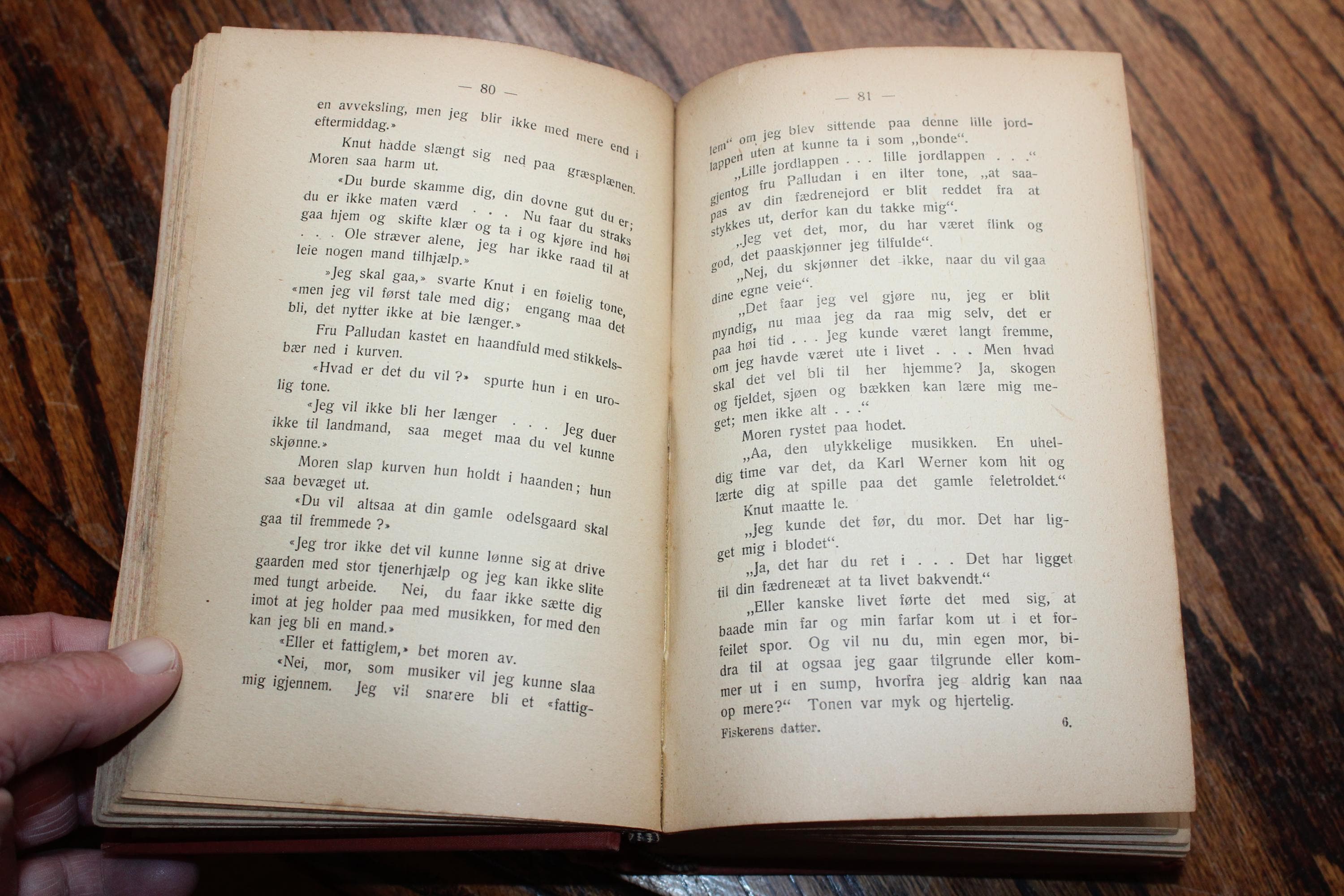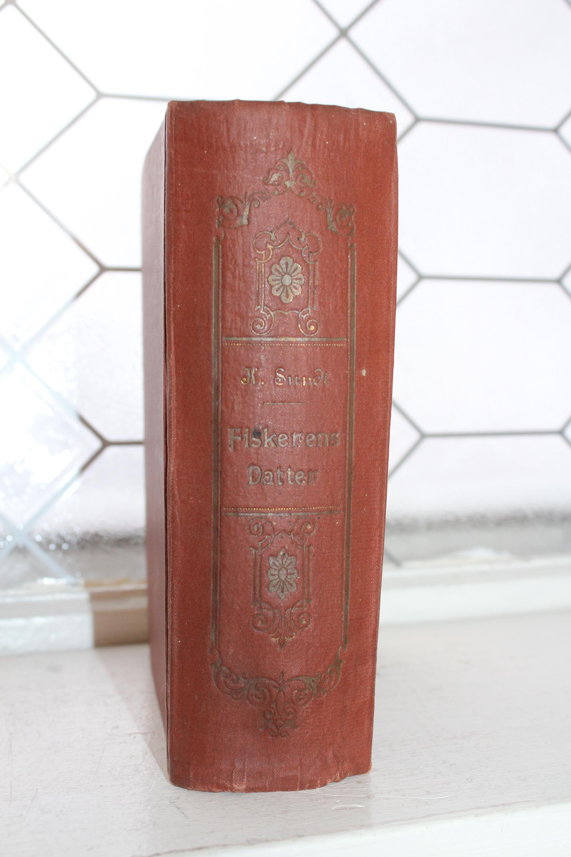 Antique 1915 Norwegian Book Fiskerens Datter (The Fisherman's Daughter) by Karen Sundt. The book measures 7 1/2" x 5 1/4" x 2 1/4" thick and has 874 pages. Enjoy!