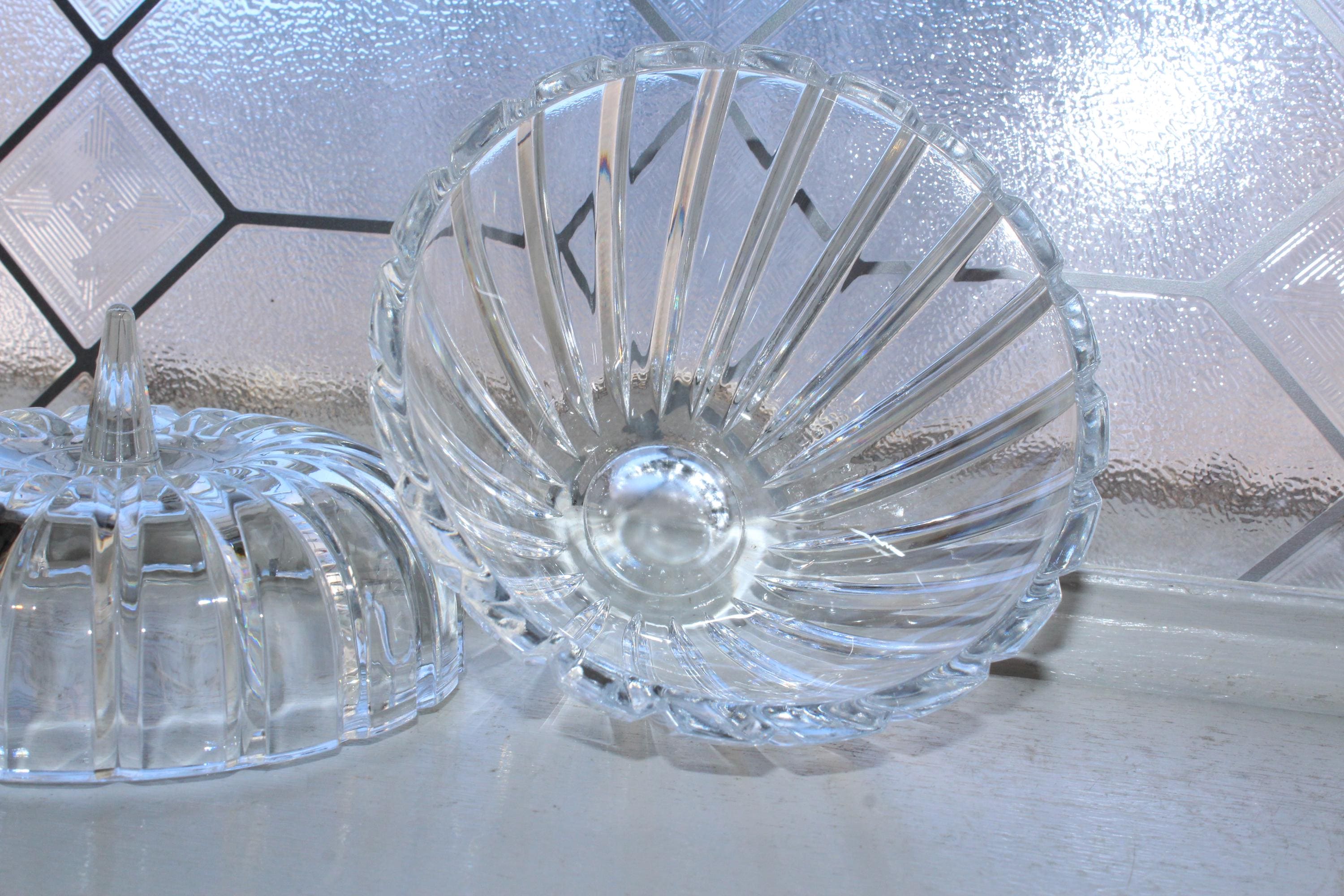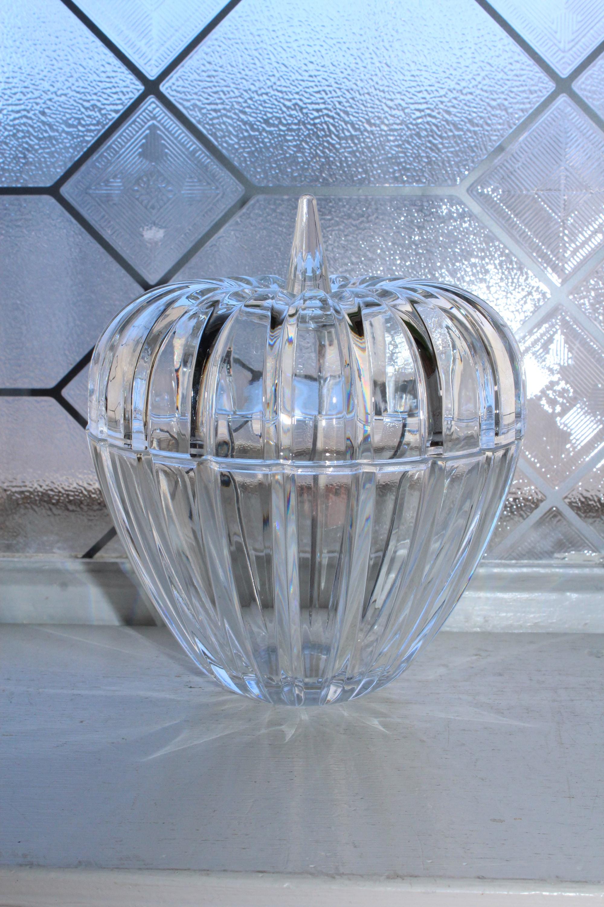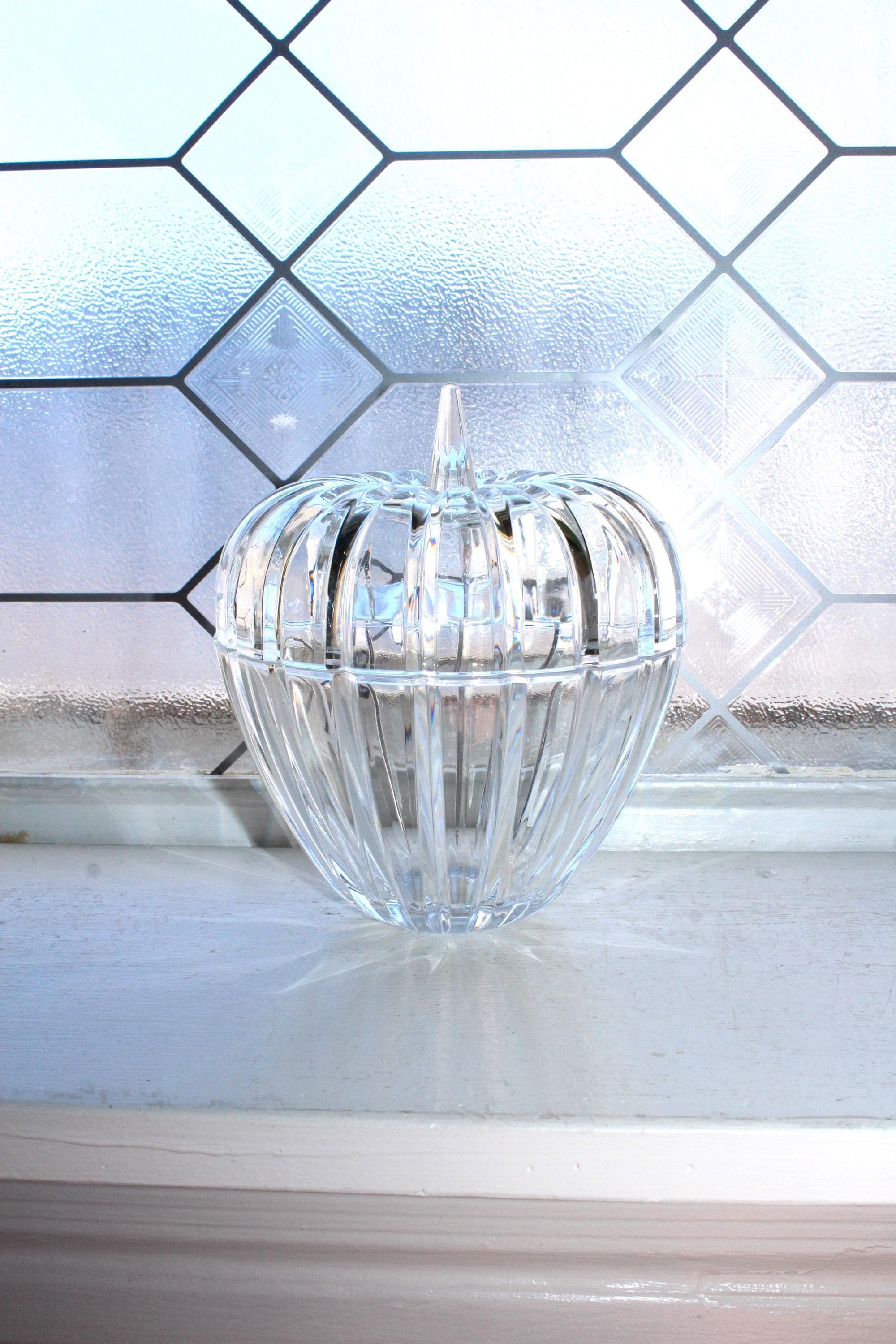 Gorgeous vintage lead crystal ribbed apple shaped candy dish with lid, by Crystal Clear Industries, in excellent condition. It measures 5 3/4" high and weighs 2 1/2 lbs. No chips, cracks or wear, perfect for use or display. Enjoy!