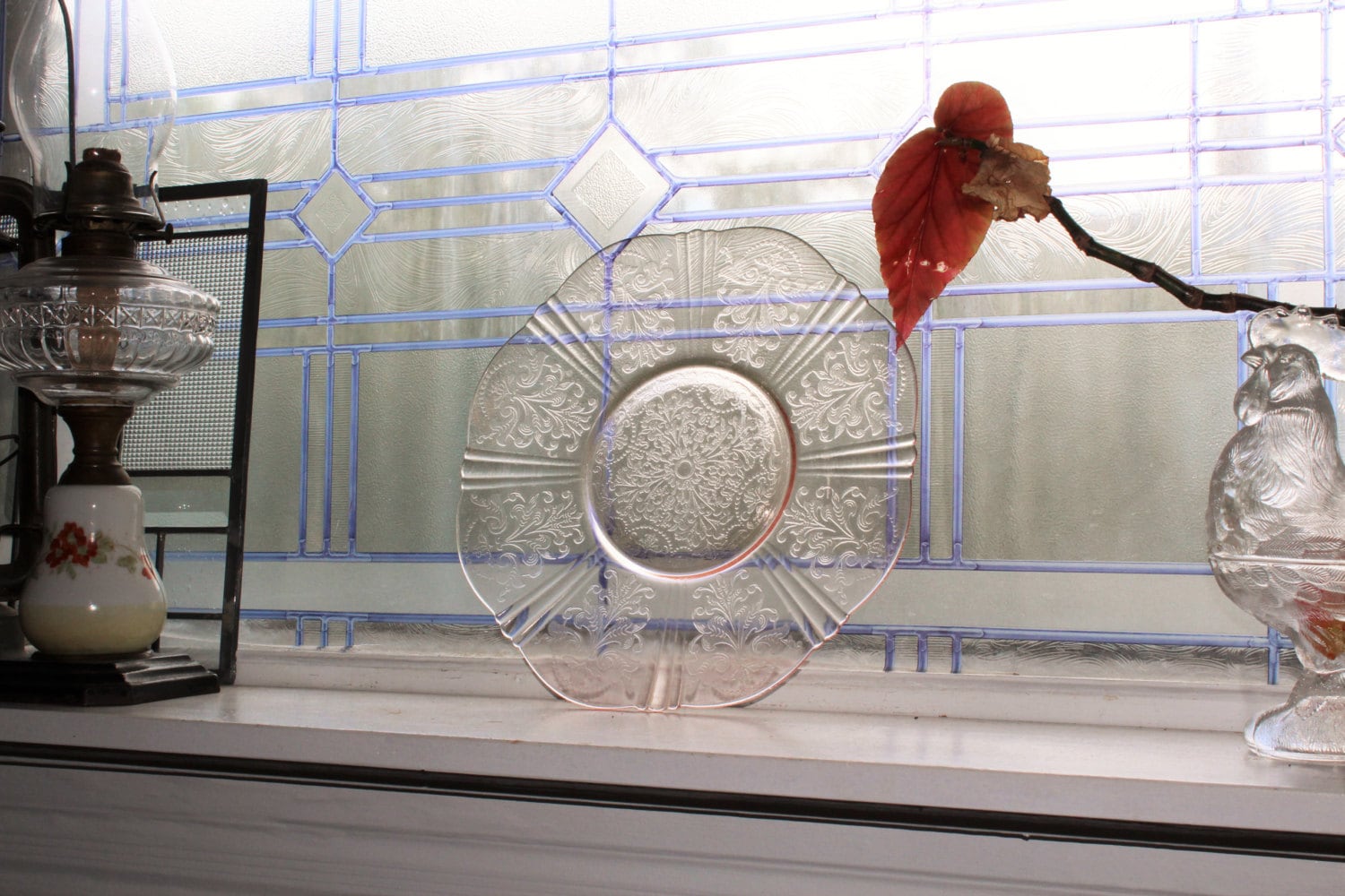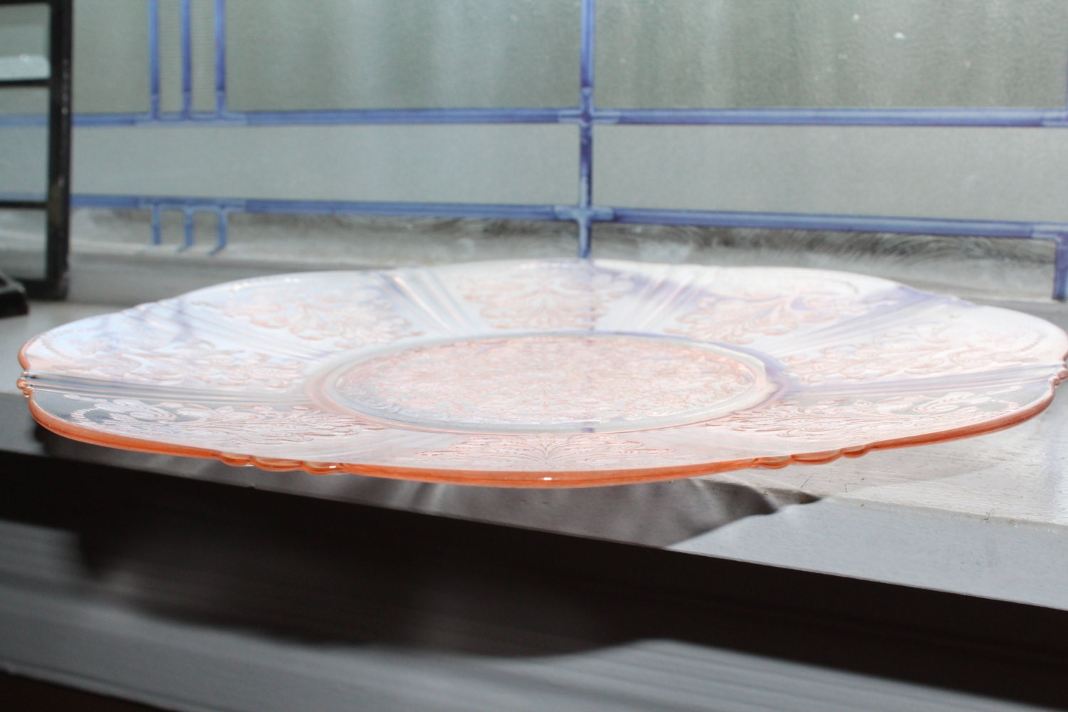 Vintage 1930s pink depression glass American Sweetheart round 11 3/4" sandwich or cake plate, in good condition. No chips or cracks, perfect for use or display. Enjoy!