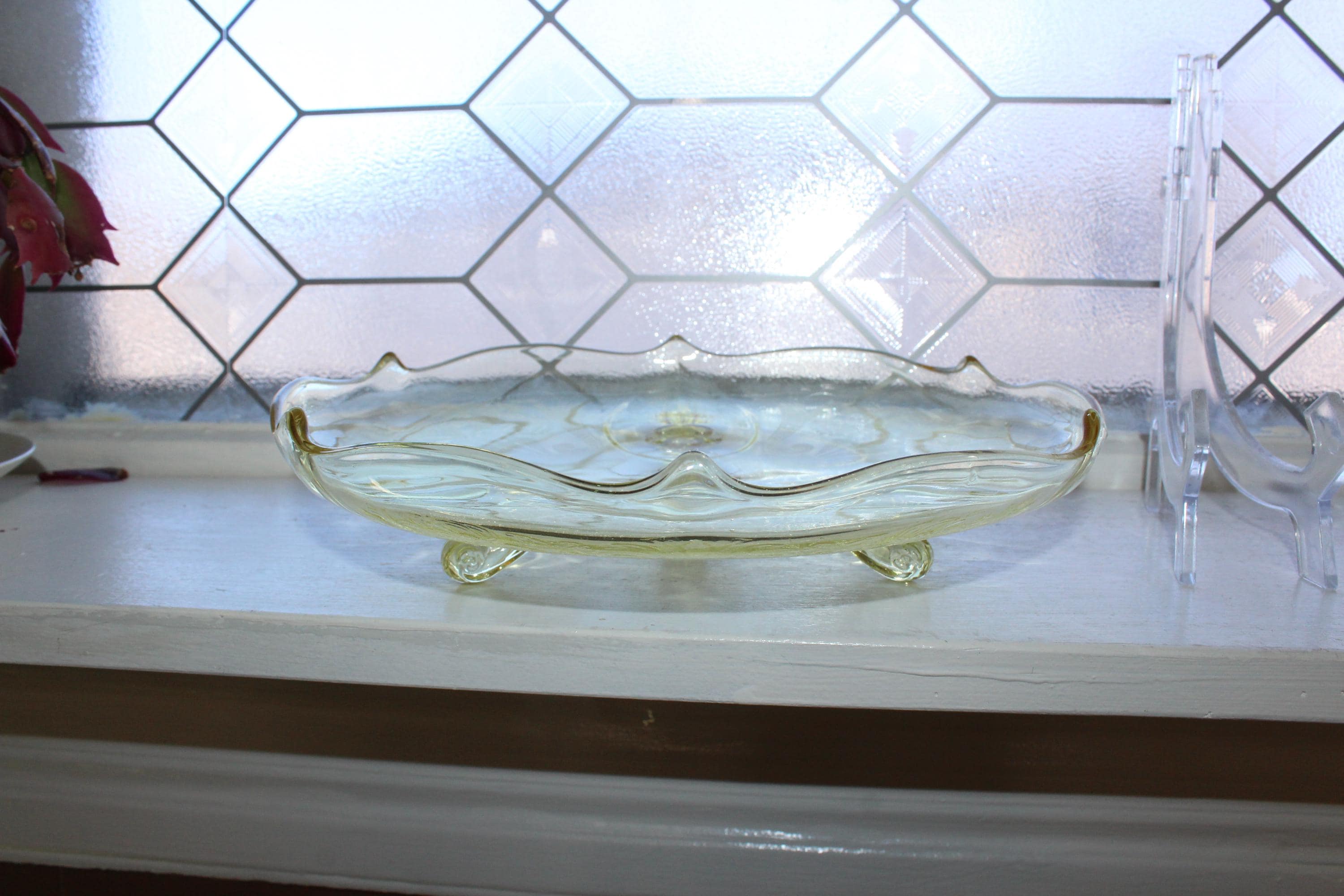 Vintage yellow depression glass Lancaster Jubilee footed bowl, in excellent condition. It measures 10" wide and has no chips or cracks. Enjoy!