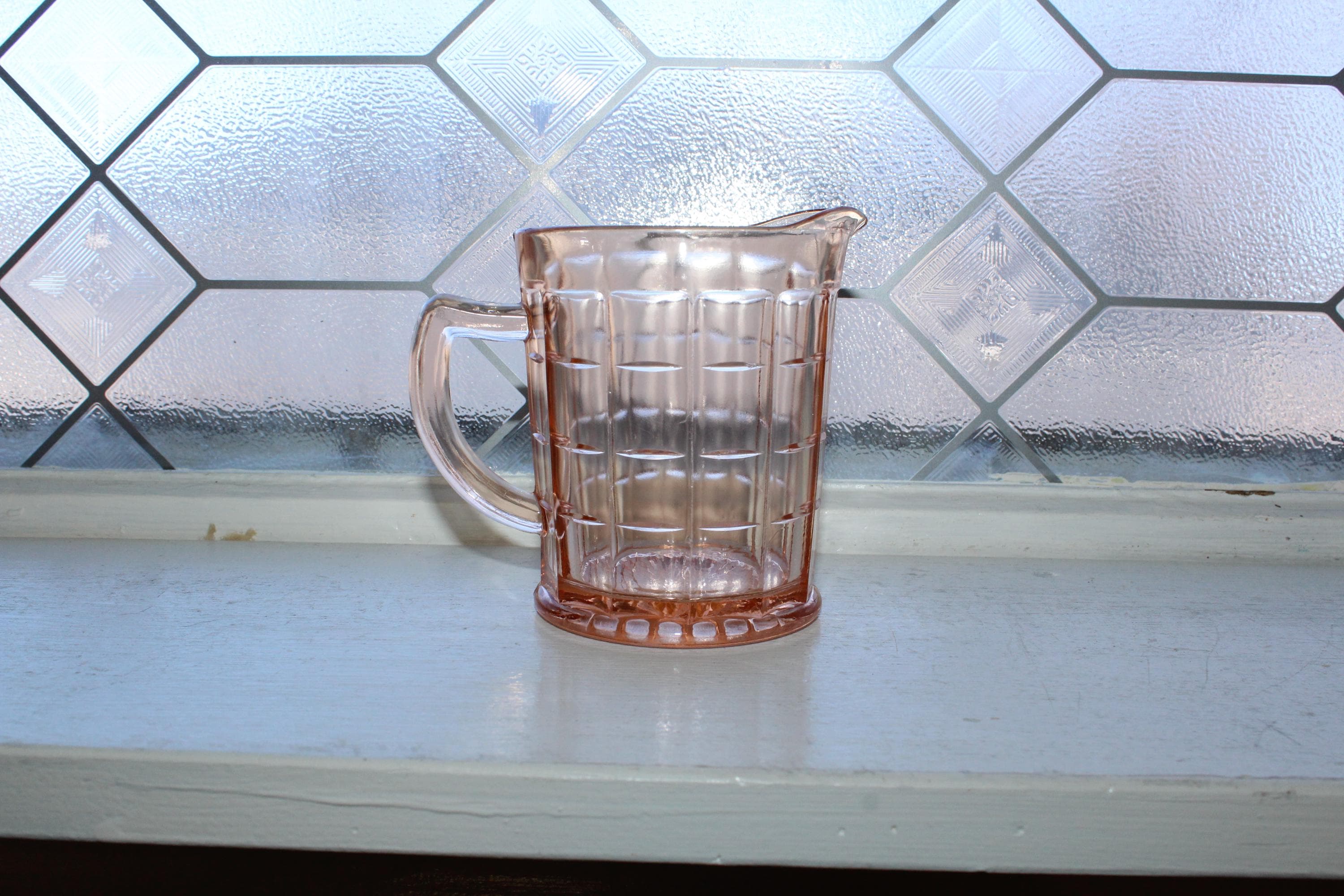 Vintage pink depression glass Hazel Atlas Colonial Block creamer, in excellent condition. It measures 4" high and has no chips or cracks, perfect for use or display. Enjoy!