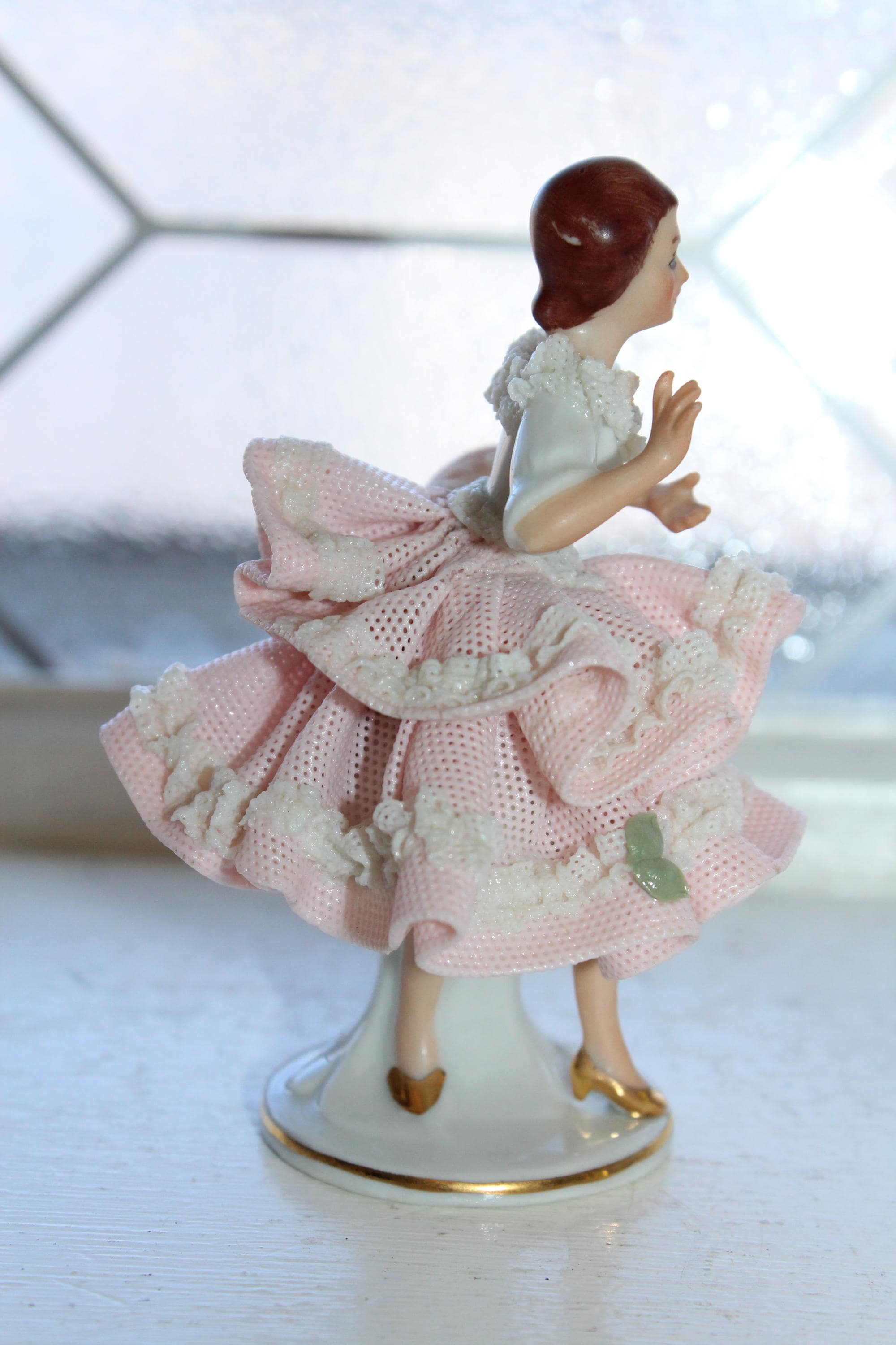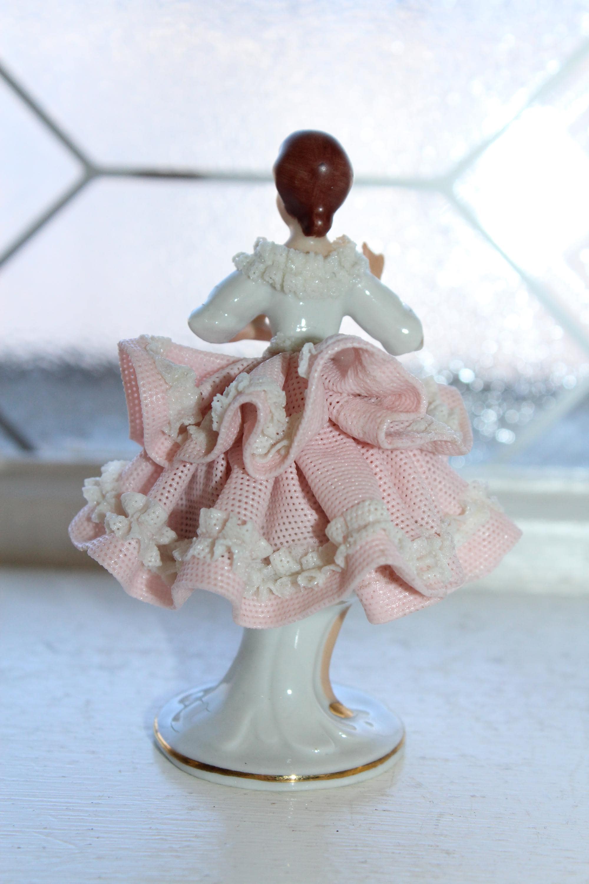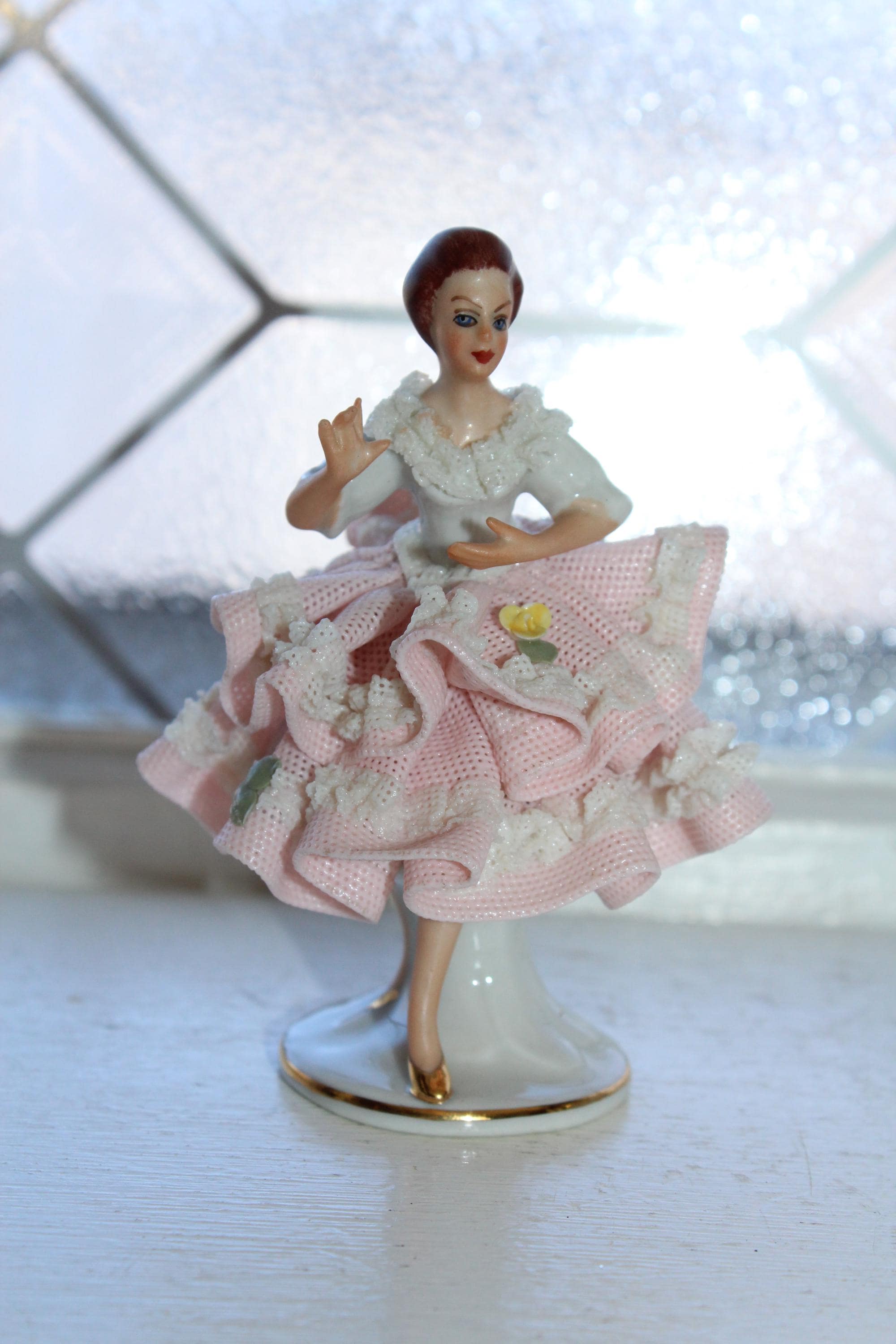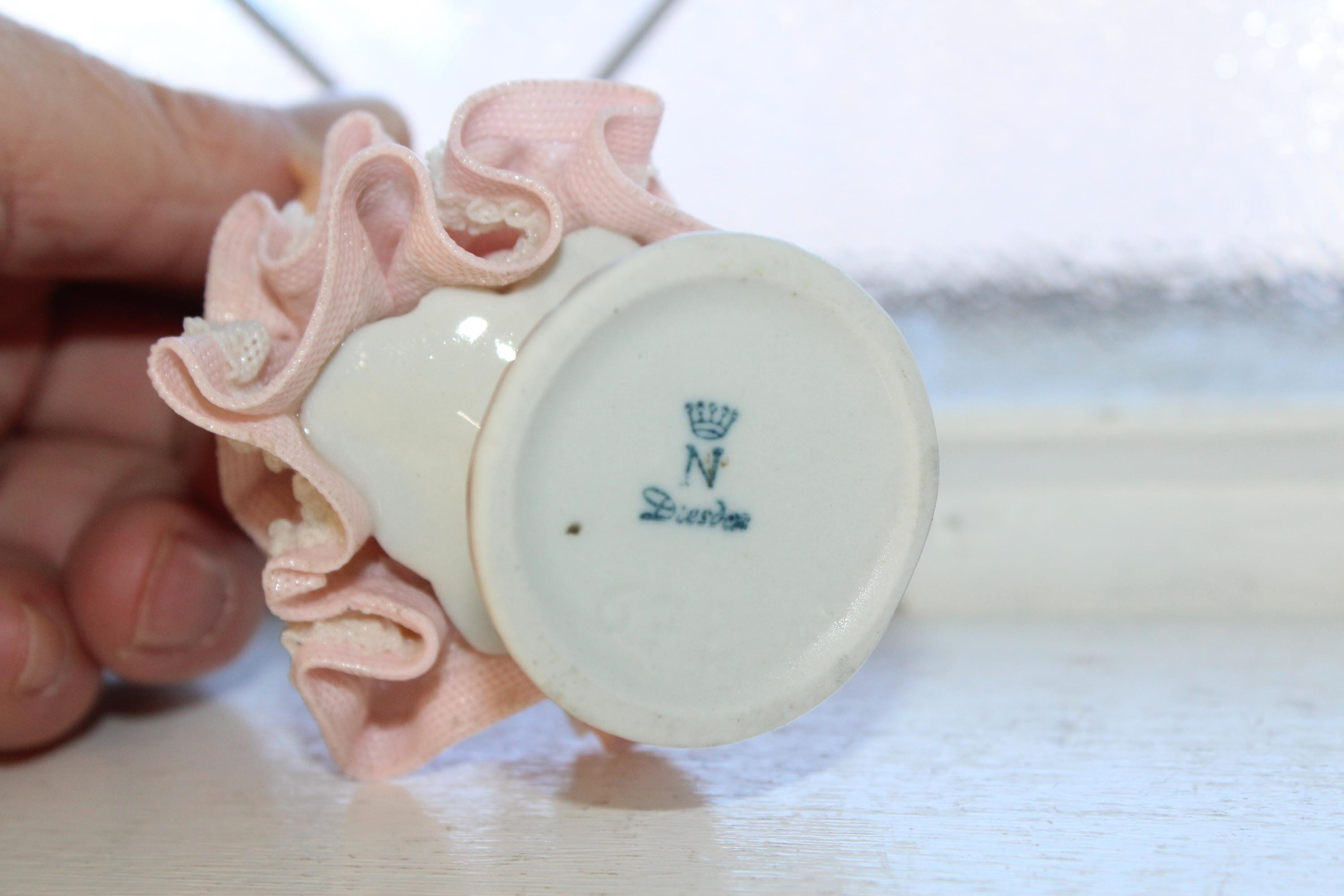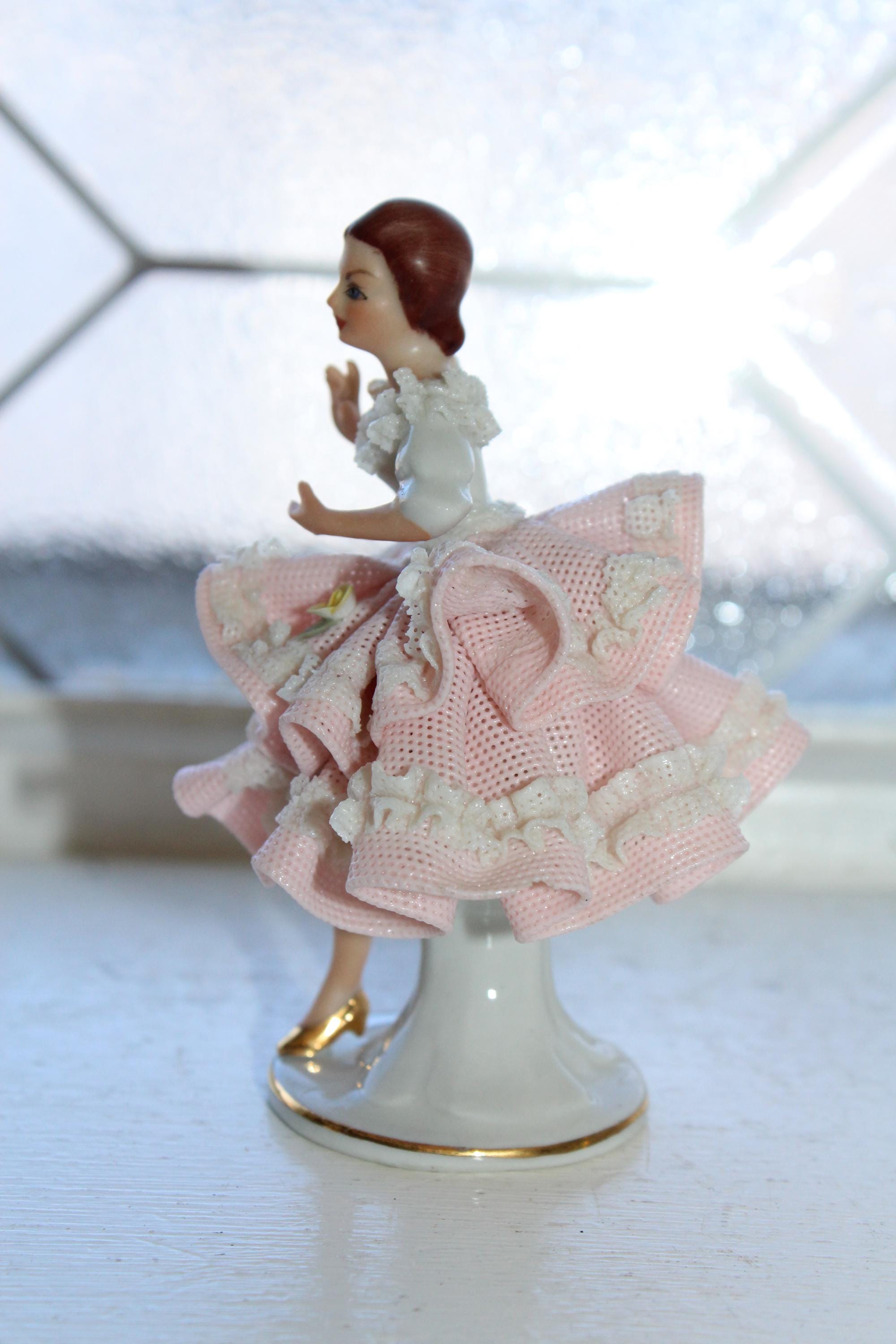 Vintage porcelain Dresden lace woman figurine, in excellent condition. It measures 3 3/4" high. No damage, perfect for display. Enjoy!