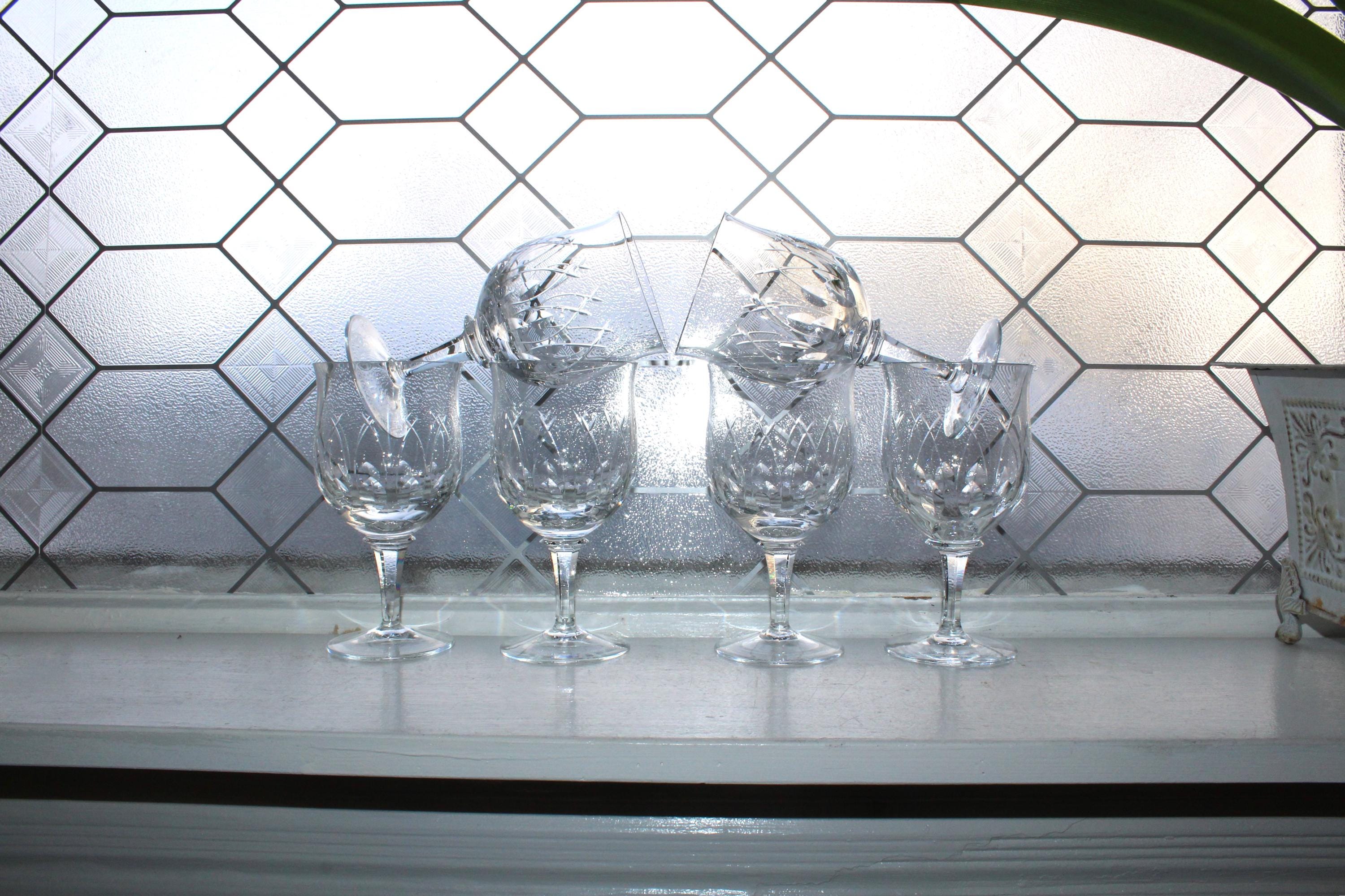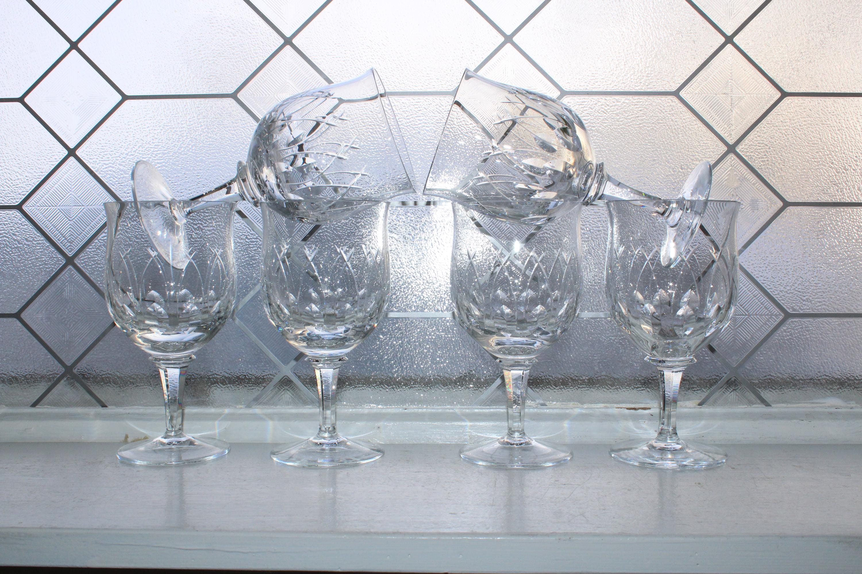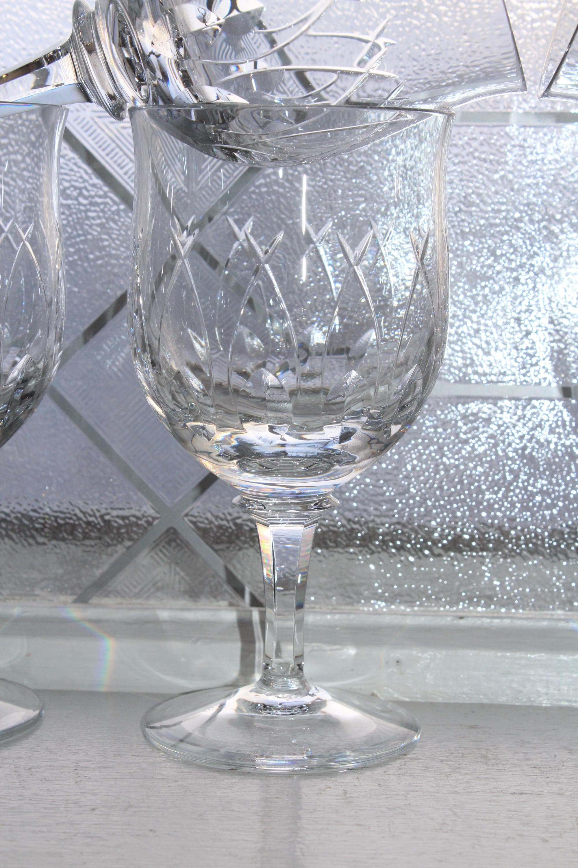 Set of 6 crystal Colette by Josair wine or water goblets, in excellent condition. Each glass measures 6 1/8" high. They are signed on the underside. No chips or cracks, perfect for use or display. I also have a set of 6 claret wine glasses in a separate listing. Enjoy!