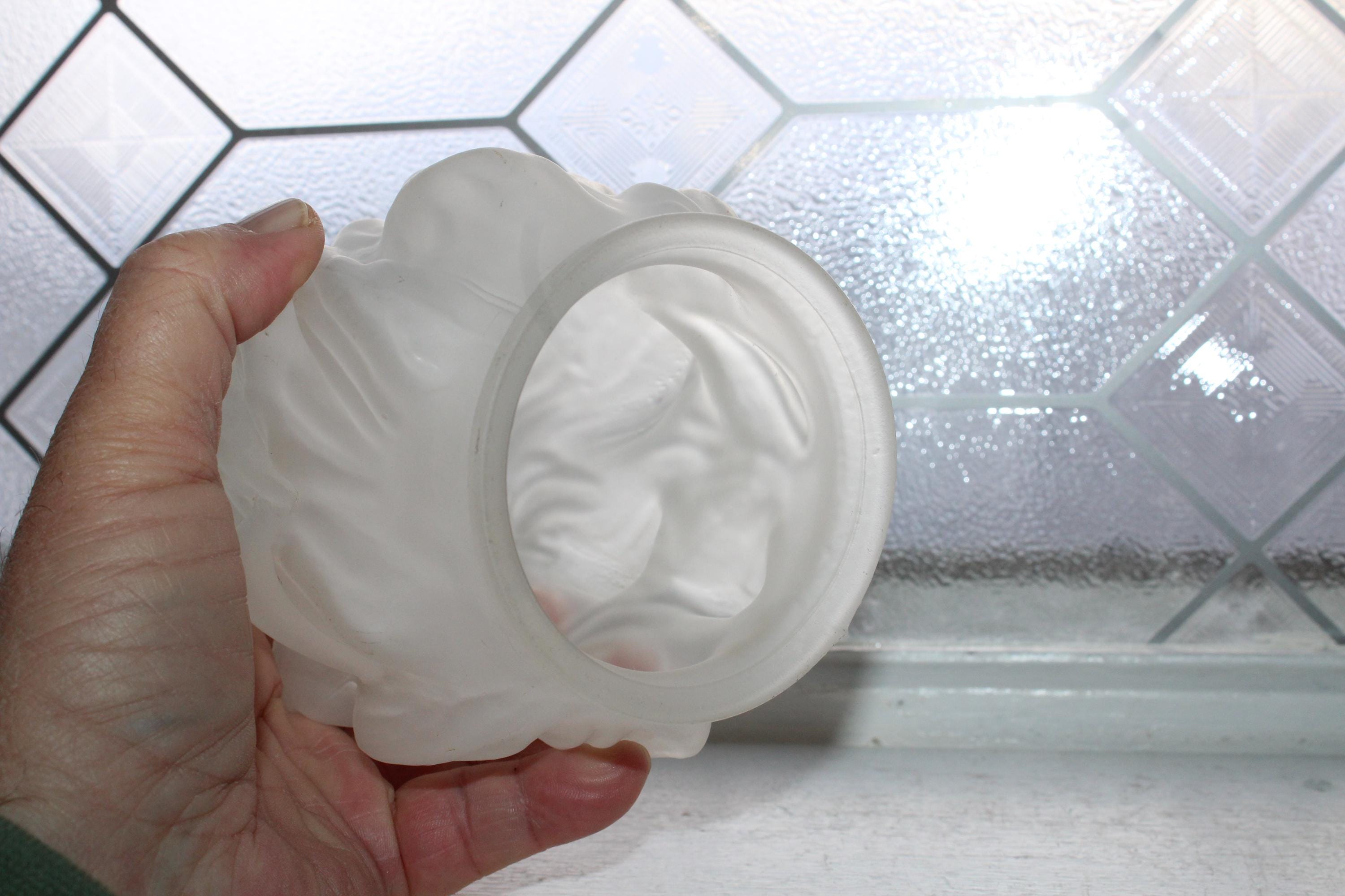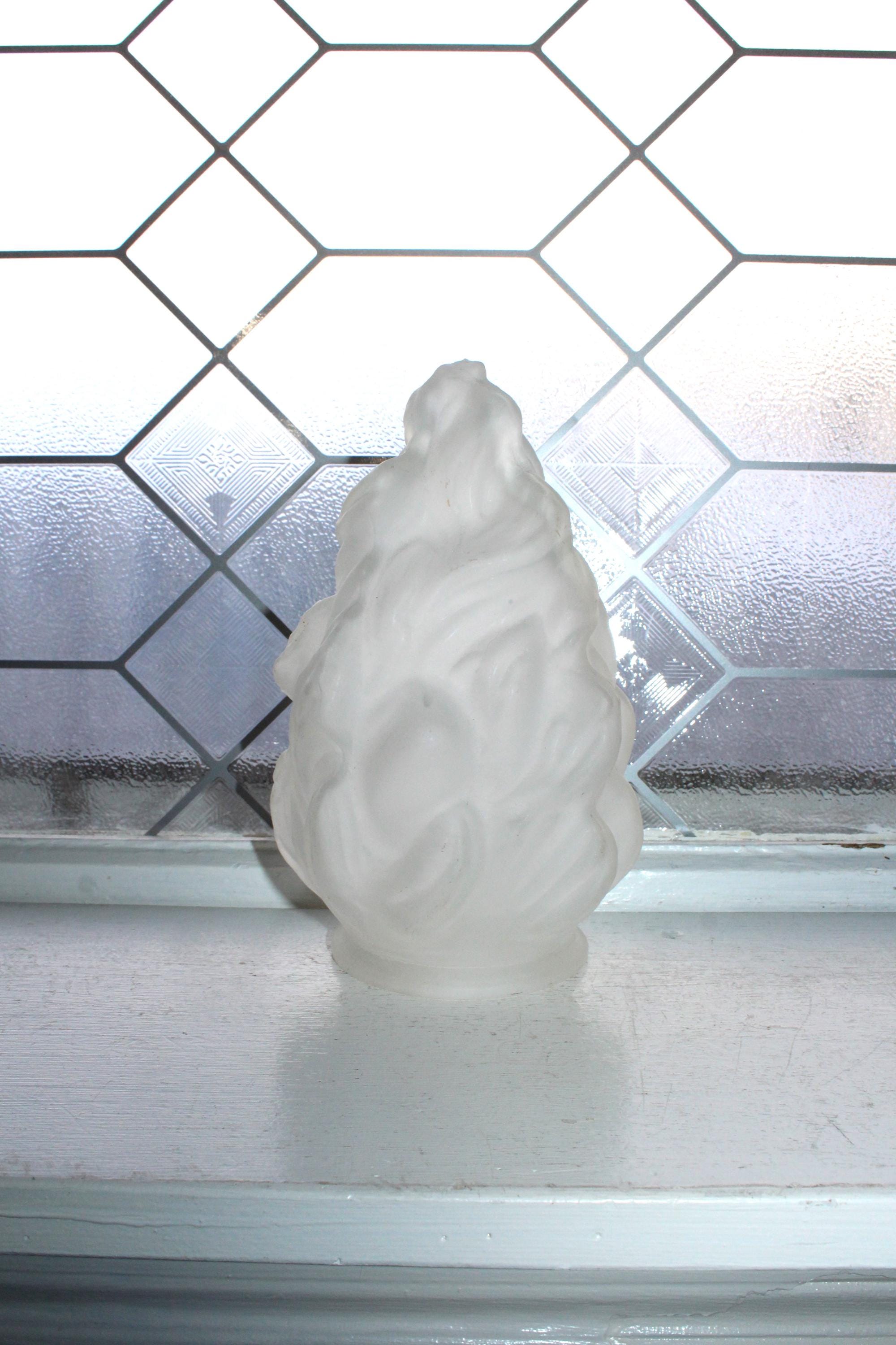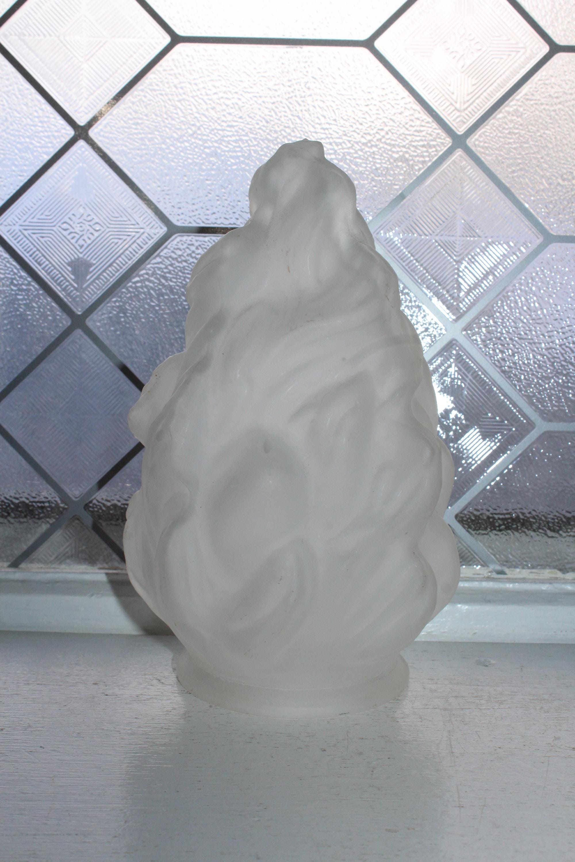 Vintage Art Deco satin glass flame lamp or pendant light shade, in good condition. This piece also looks great as an art object on its own. The shade measures 7 1/2" high, and the opening is 3 1/4" wide. No chips or cracks. Enjoy!