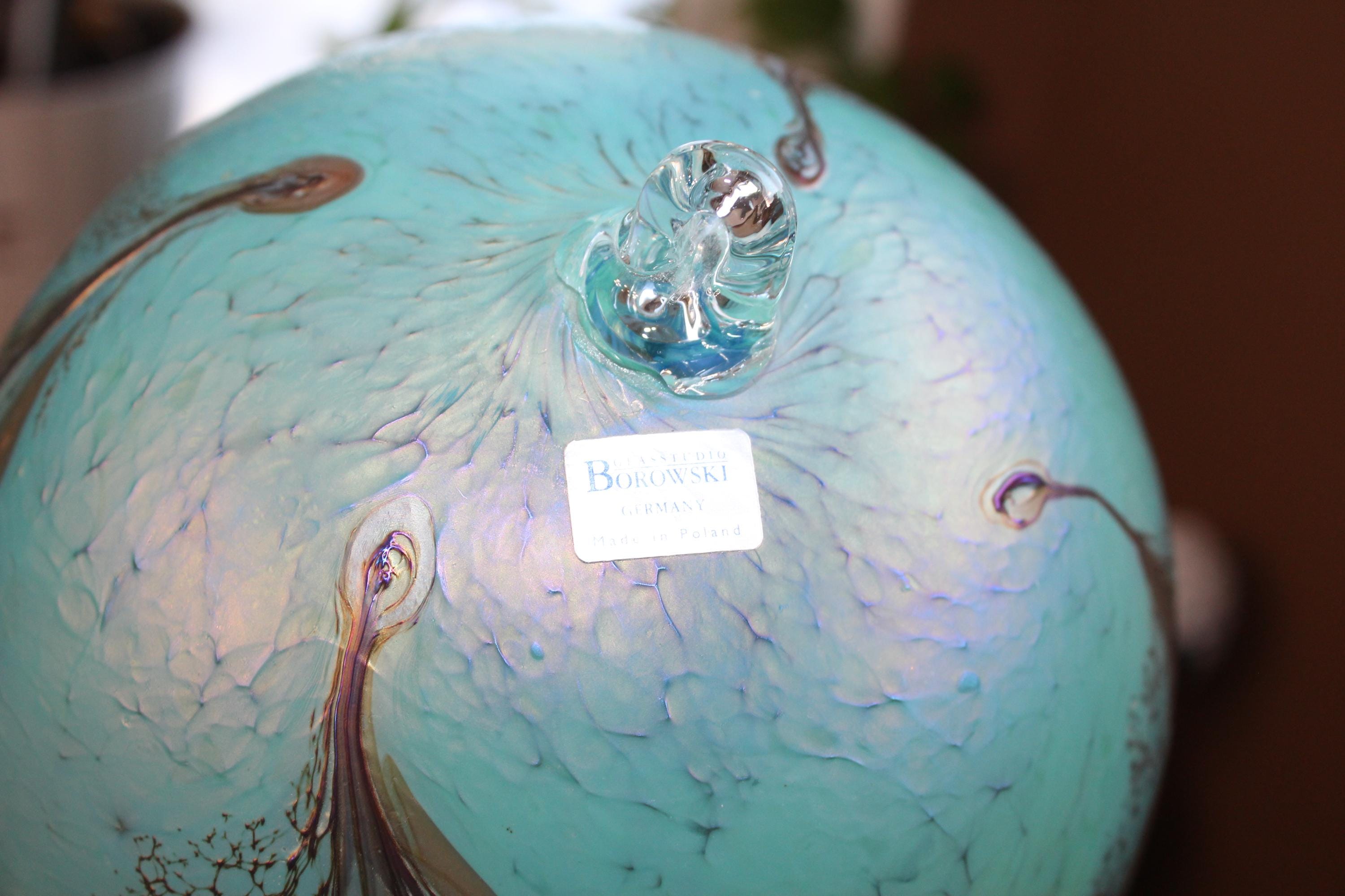 This is a large vintage hand blown Borowski iridescent glass ball ornament, made in Poland and in excellent condition. It measures 7" wide and is a gorgeous piece of art glass with no chips or cracks. Enjoy!