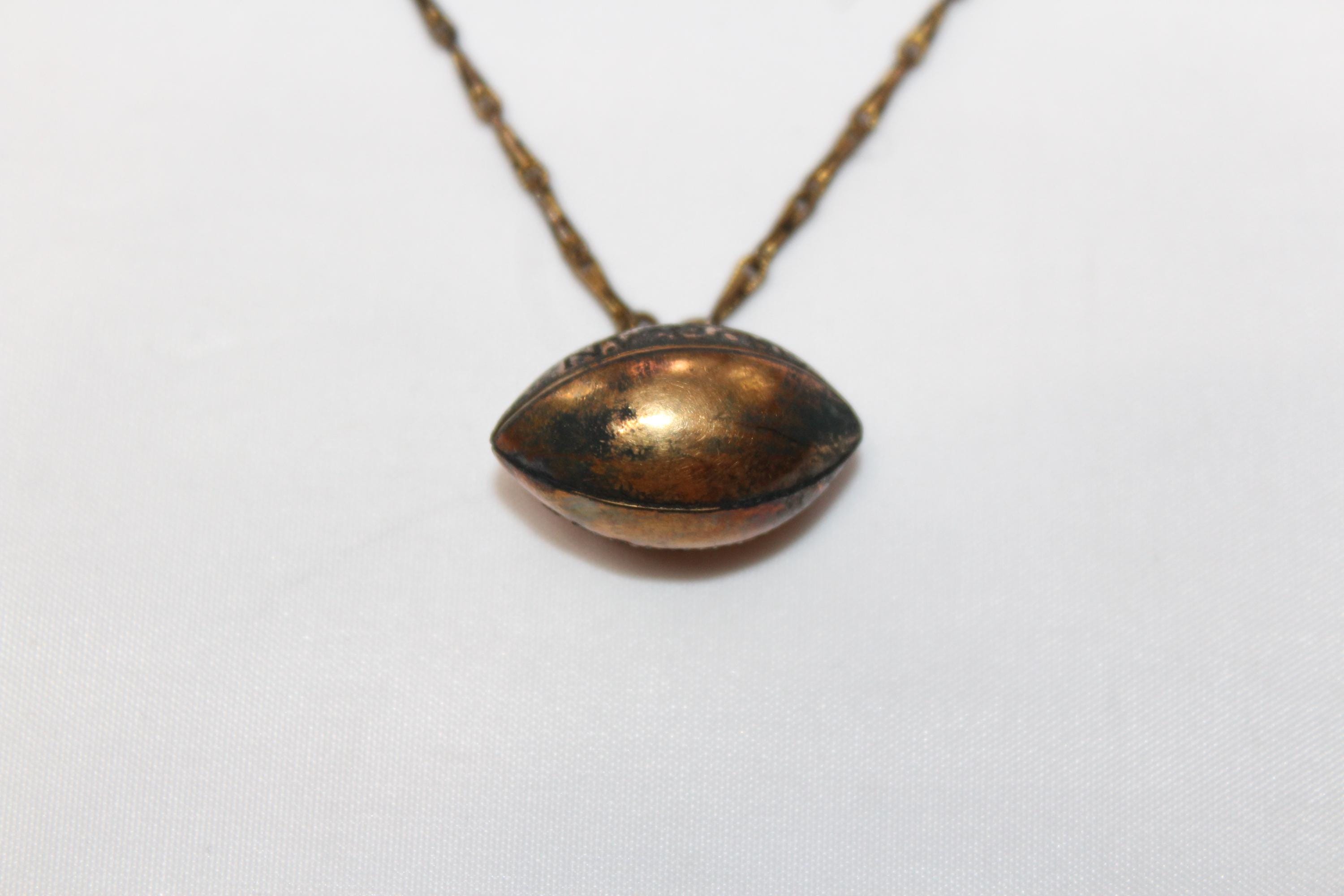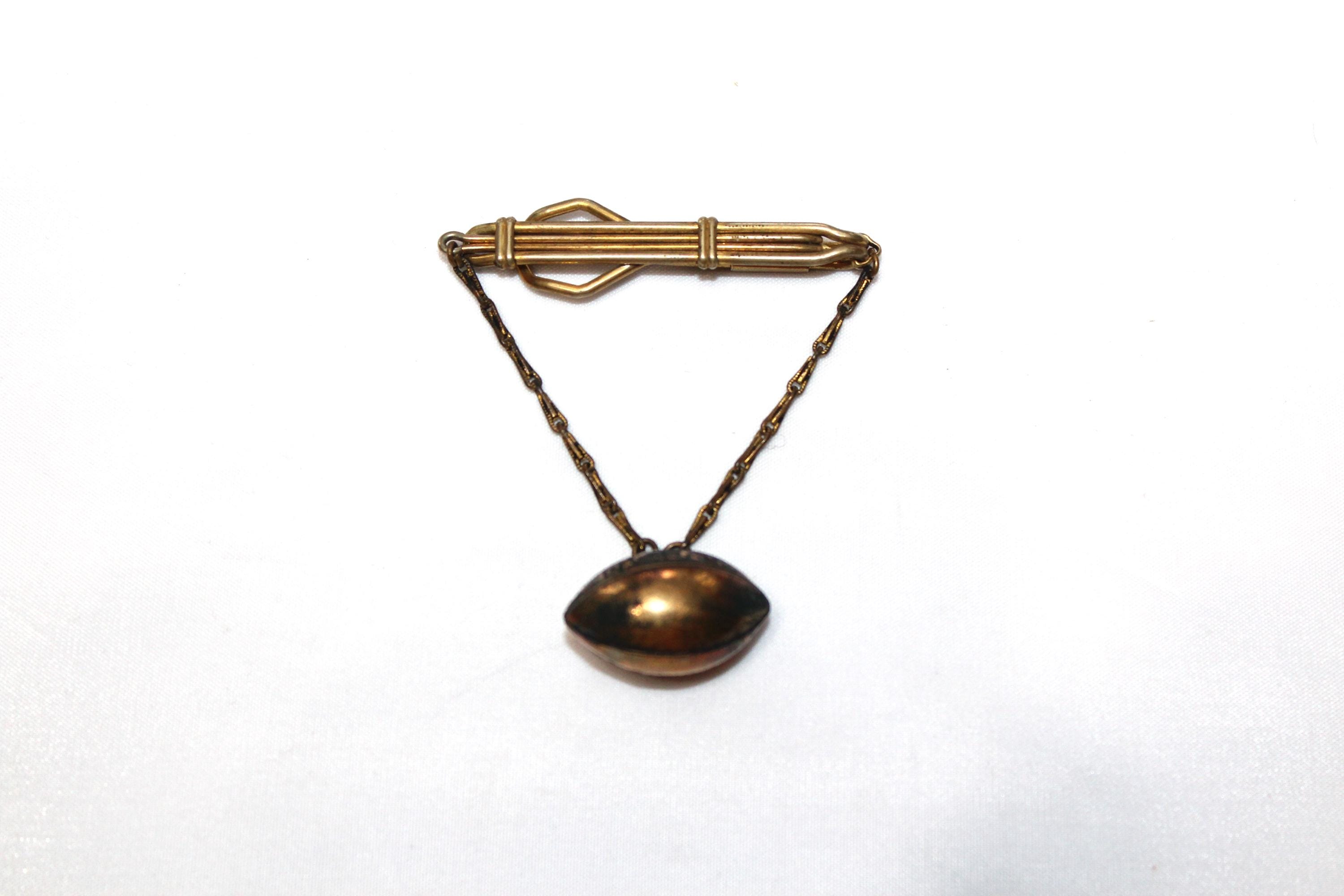Vintage Hayward 1936 football conference champions tie bar clip with hanging football, in fair condition. It shows some wear and could be cleaned up. Enjoy!