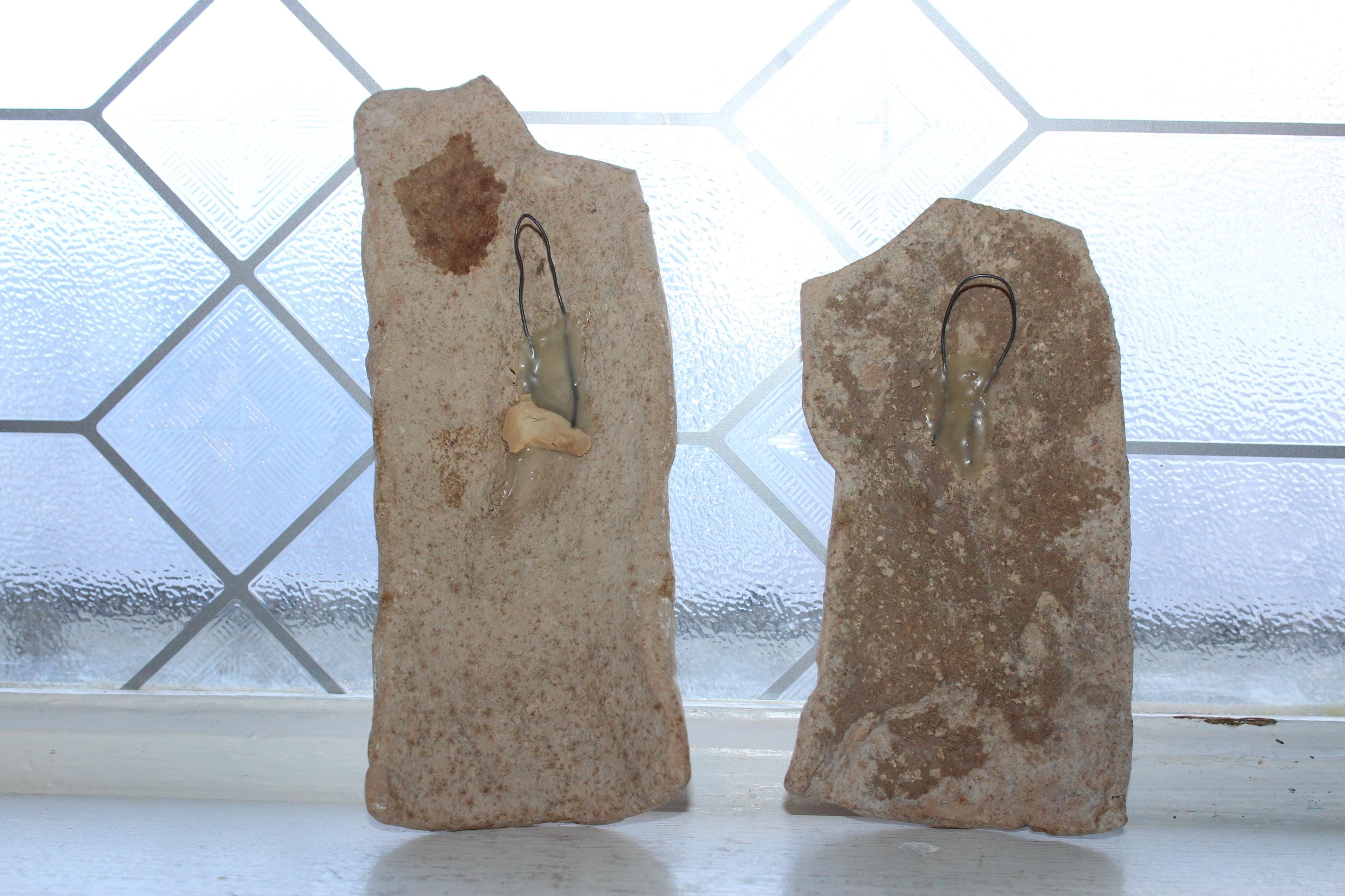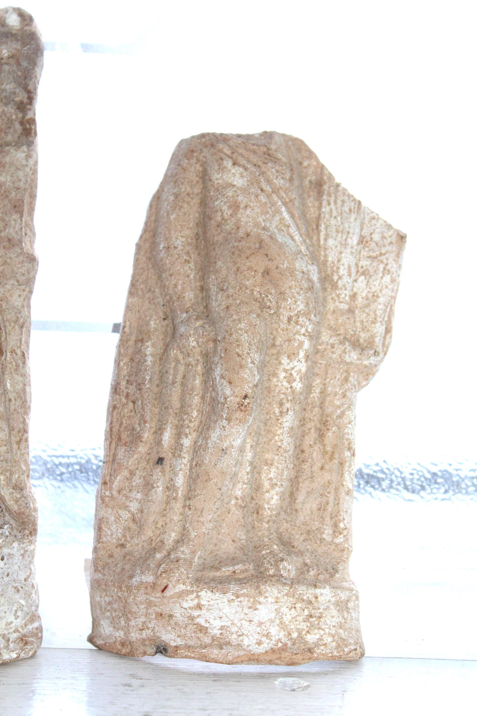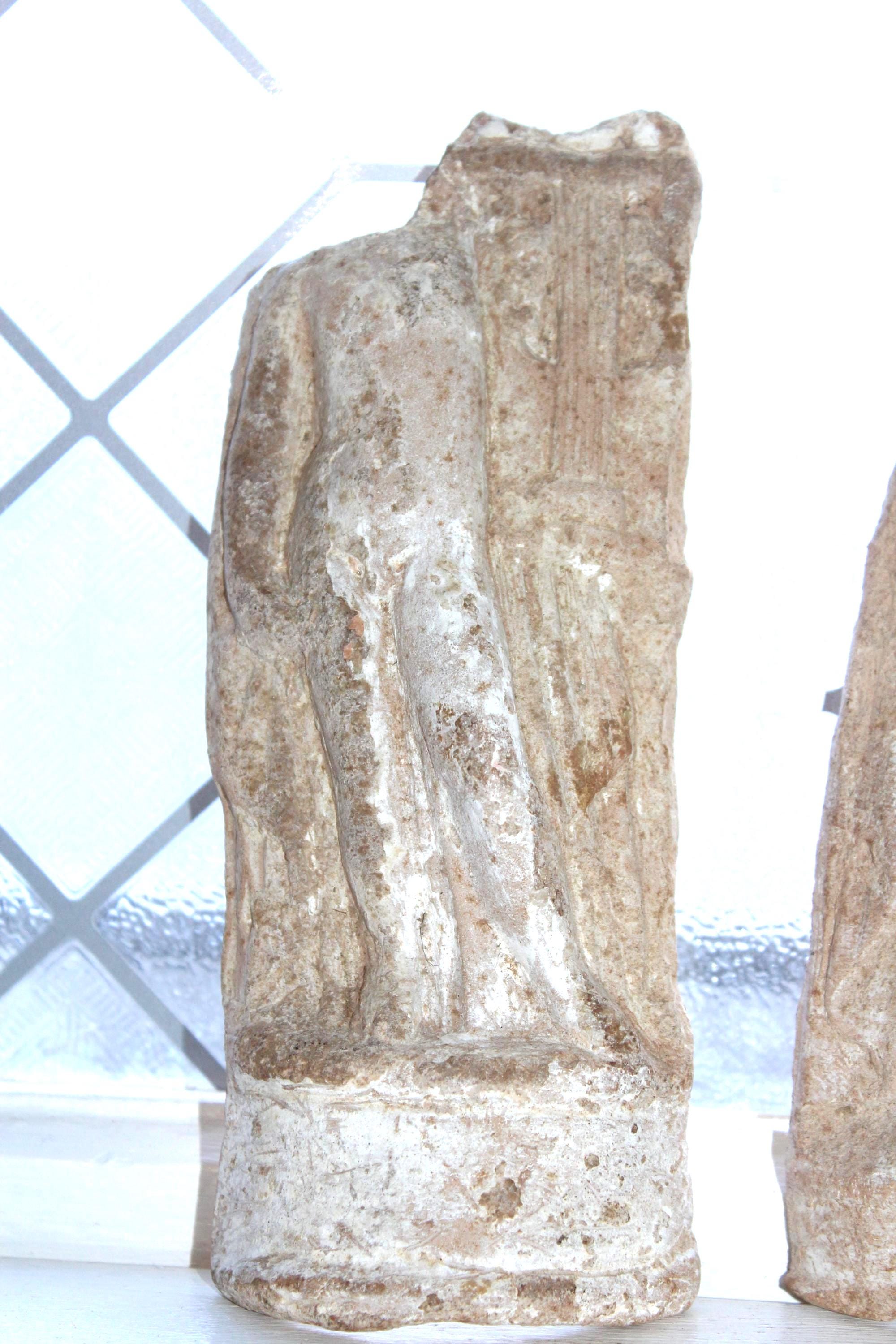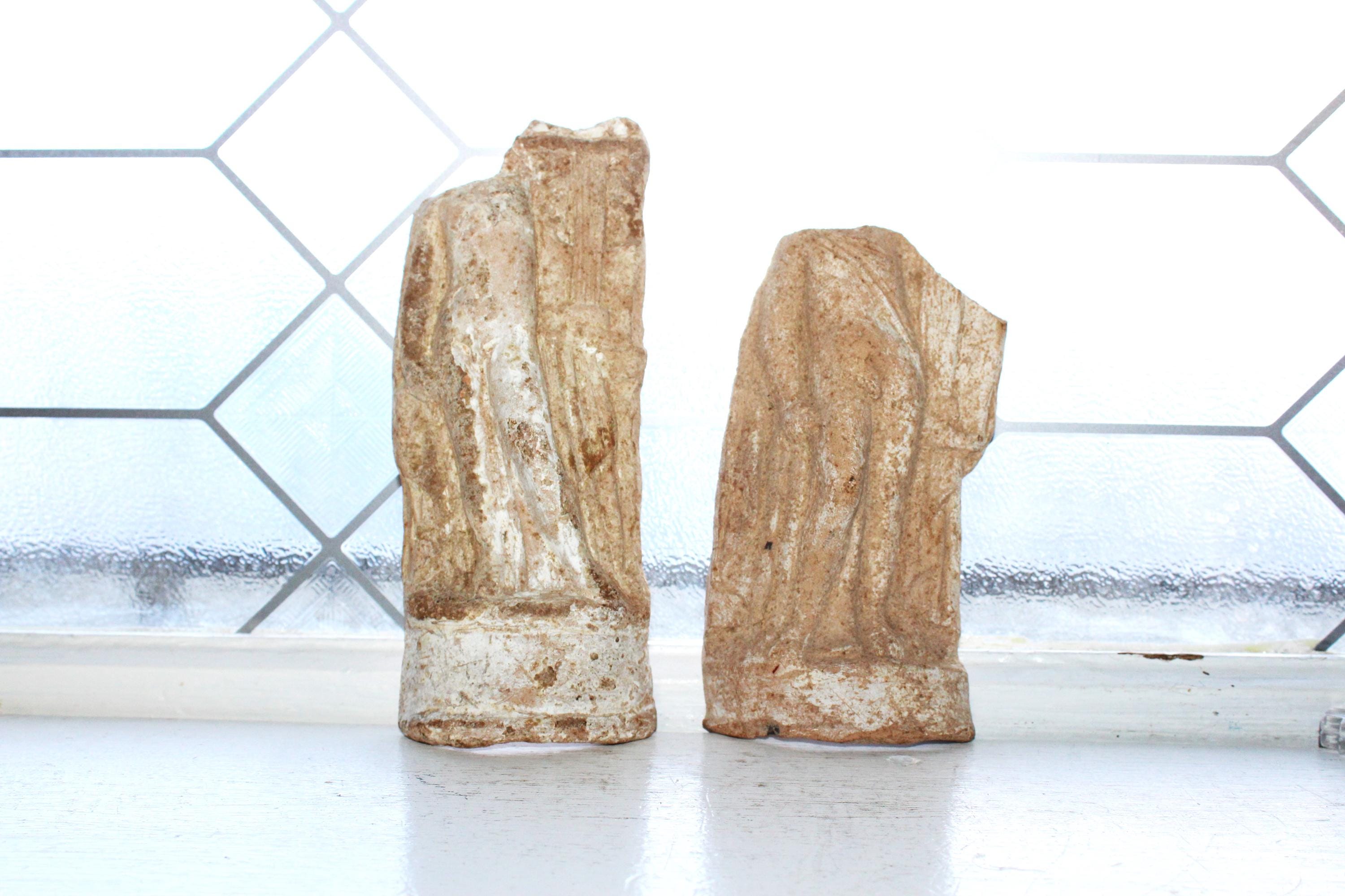 This is a pair of old replica Greek sculpture relief carvings of two men, from the waist down. The larger one is 7 1/2" high. They display very well. Enjoy!