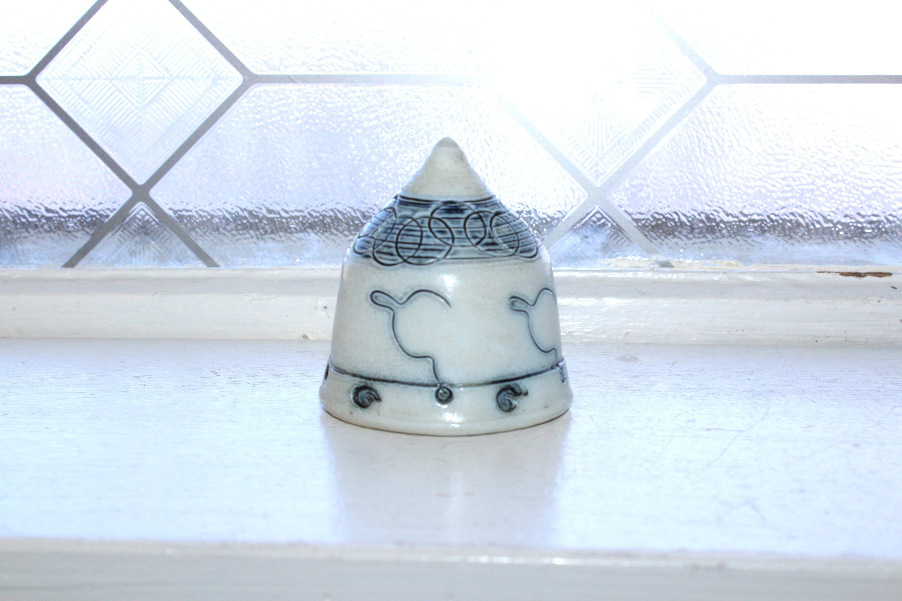 Vintage Bob and Cheryl Husby Studio art pottery gray and blue paperweight, in excellent condition and made in Duluth, Minnesota. It measures 2 3/4" high and has no chips or cracks, perfect for display. Enjoy!