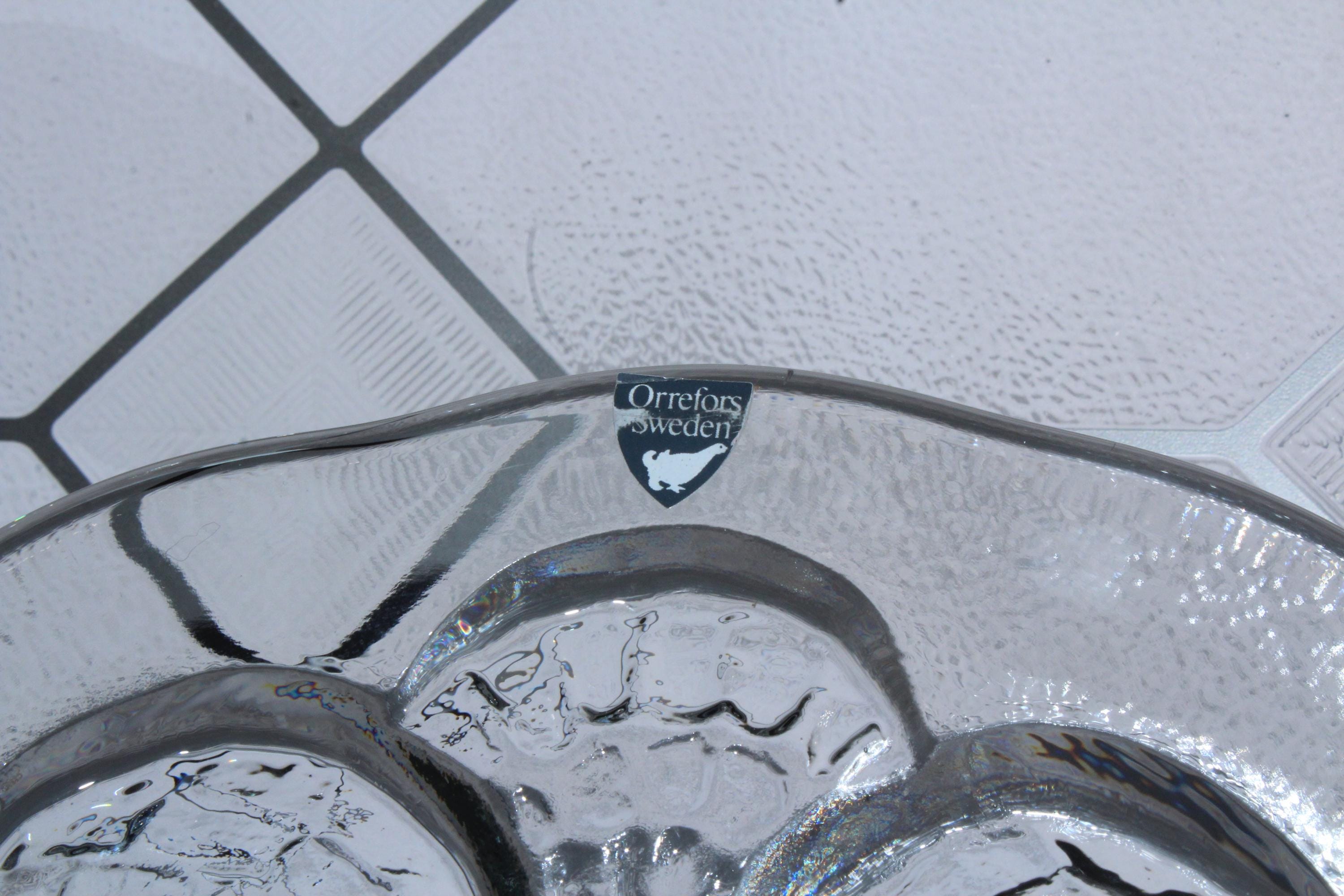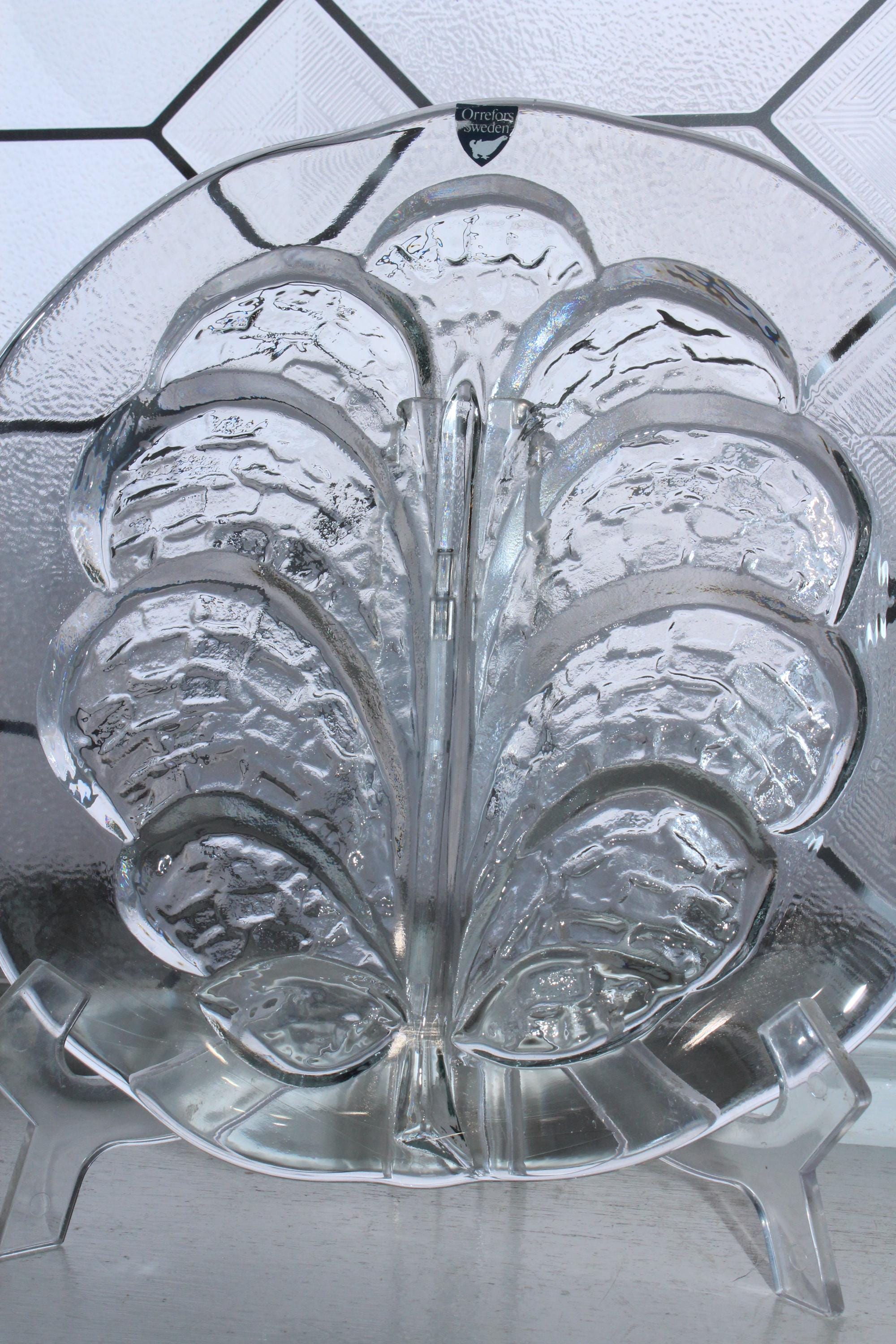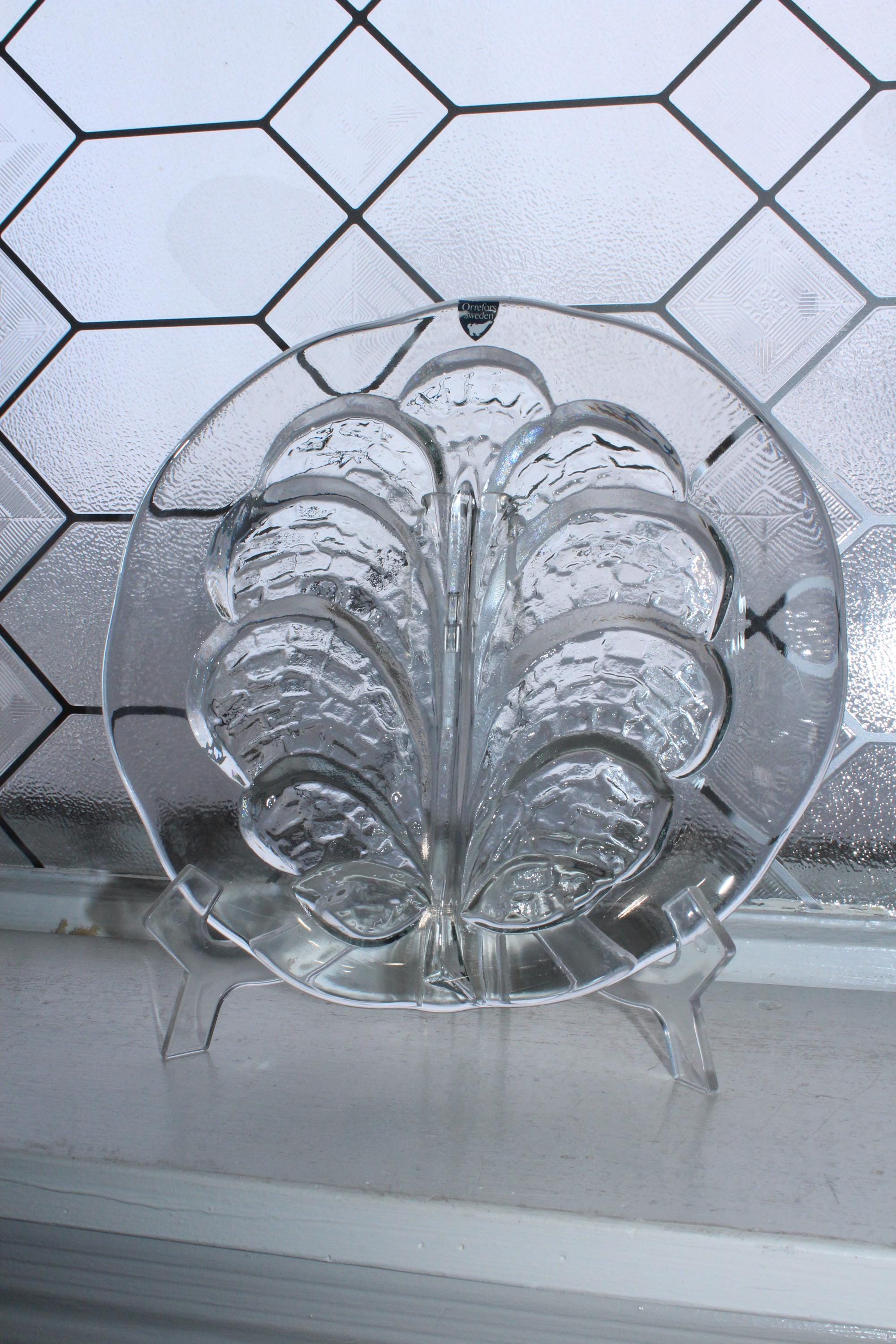 Vintage Orrefors crystal Eden cheese plate or platter, designed by Lars Hellsten, in excellent condition. The plate measures 9" wide and weighs 1 3/4 lbs. This Scandinavian beauty makes a perfect gift or addition to a collection. Enjoy!