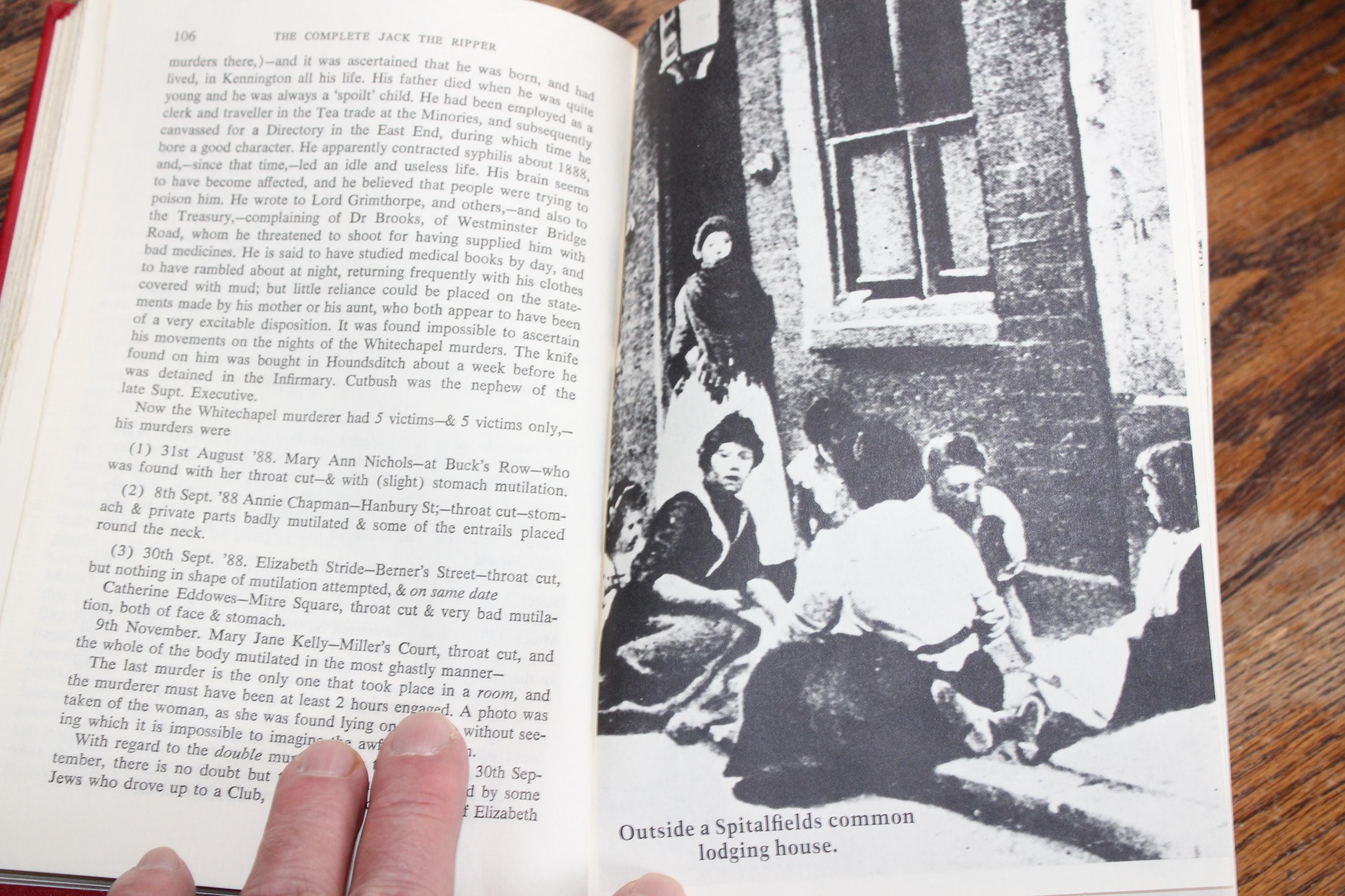 Vintage 1975 1st edition book, The Complete Jack the Ripper by Donald Rumbelow, published by New York Graphic Society, in good condition. The book is illustrated and also contains some pretty graphic photos of victims. It measures 8 1/2" x 5 1/2" and has 230 pages with numerous illustrations and photos. Enjoy!