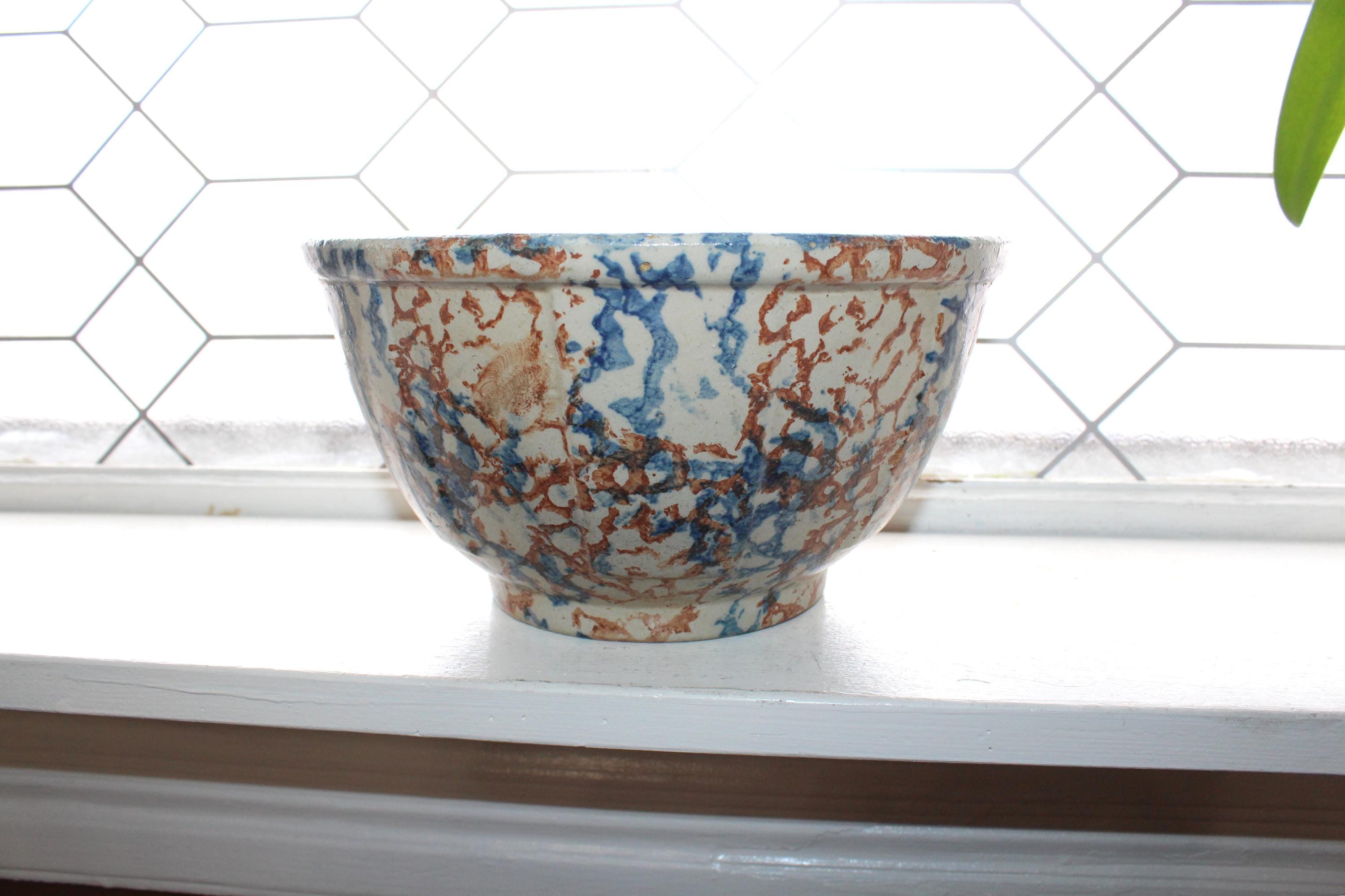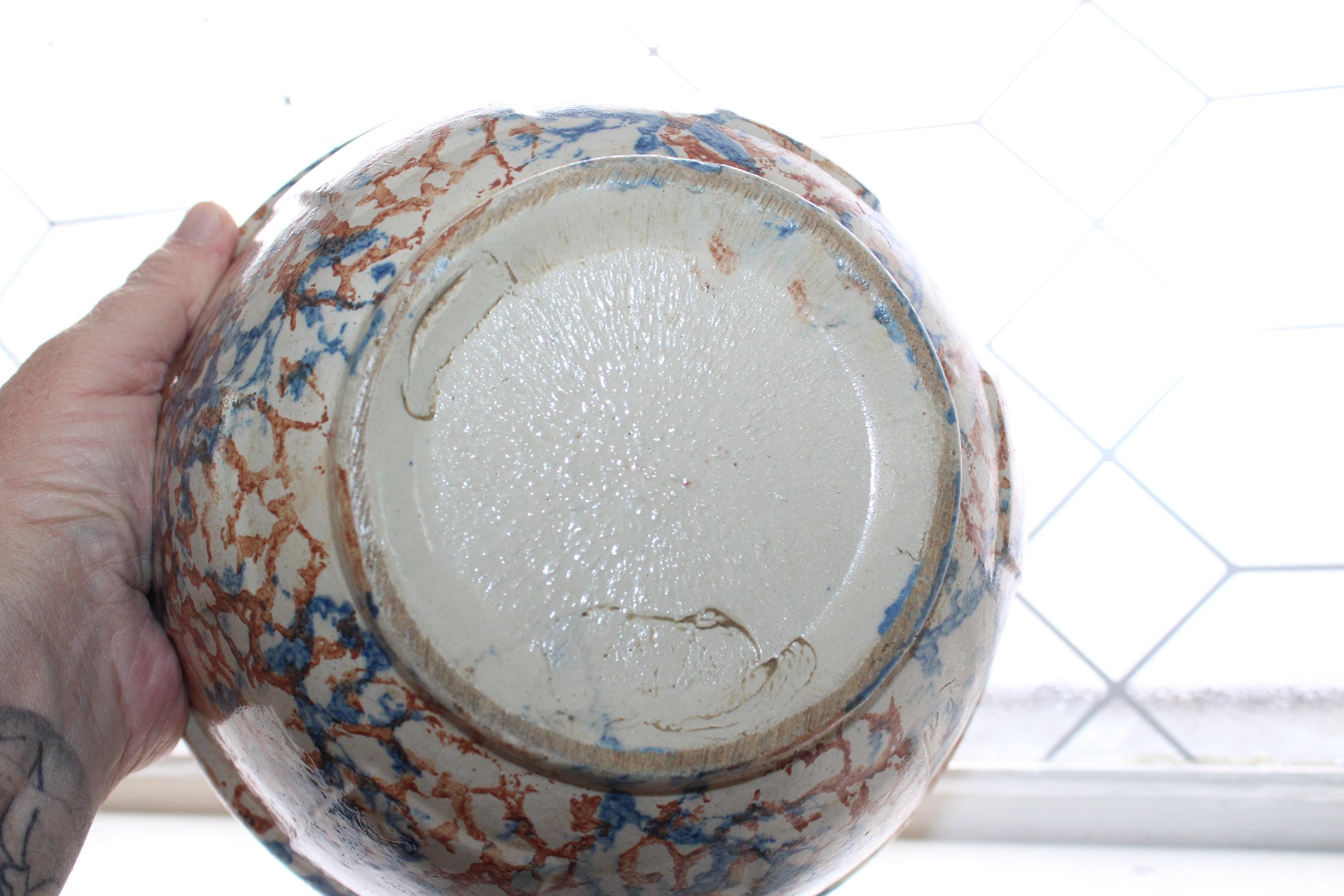 Large Antique Red Wing Spongeware Mixing Bowl 19th Century Stoneware
