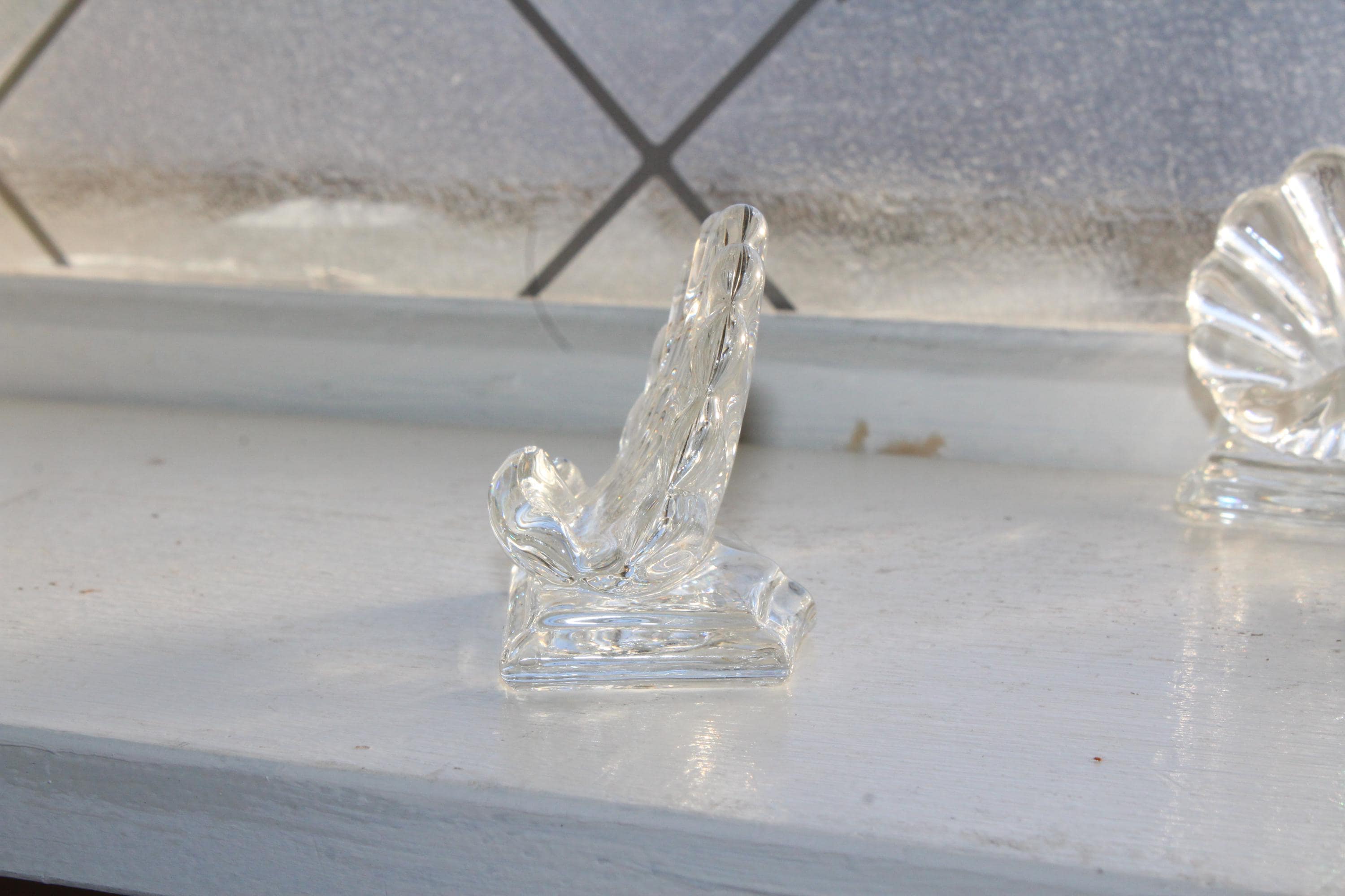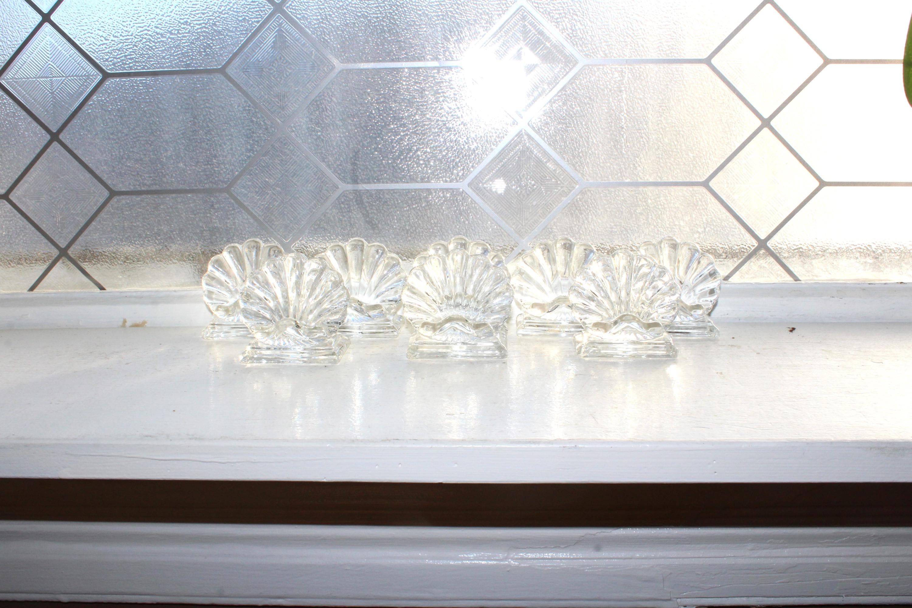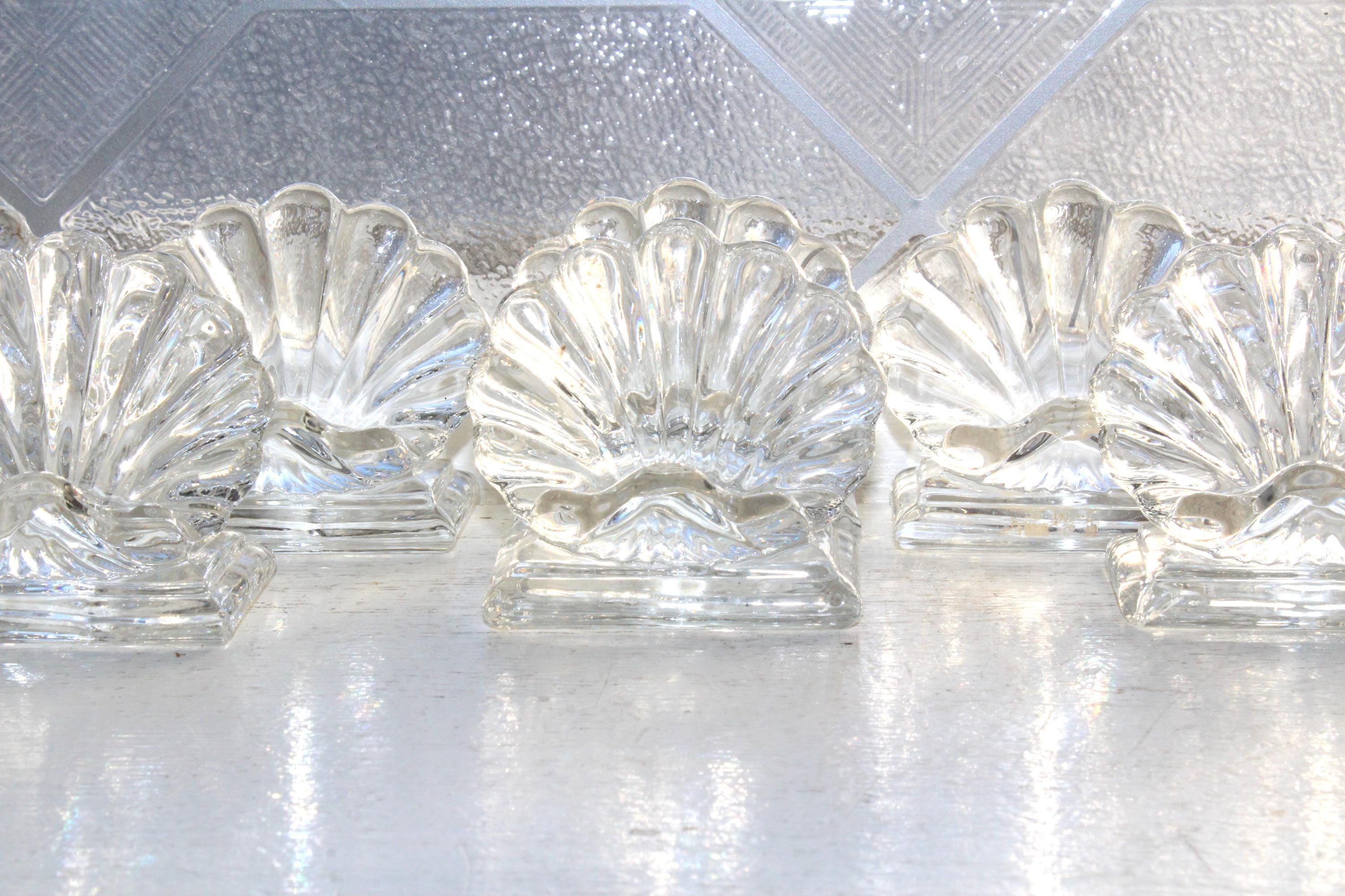 8 vintage Baccarat crystal Bambous shell place card holders. Each one measures 2 1/8" high x 2 1/2" wide. 2 of them have corner base chips, no other issues and they display very well. Enjoy!