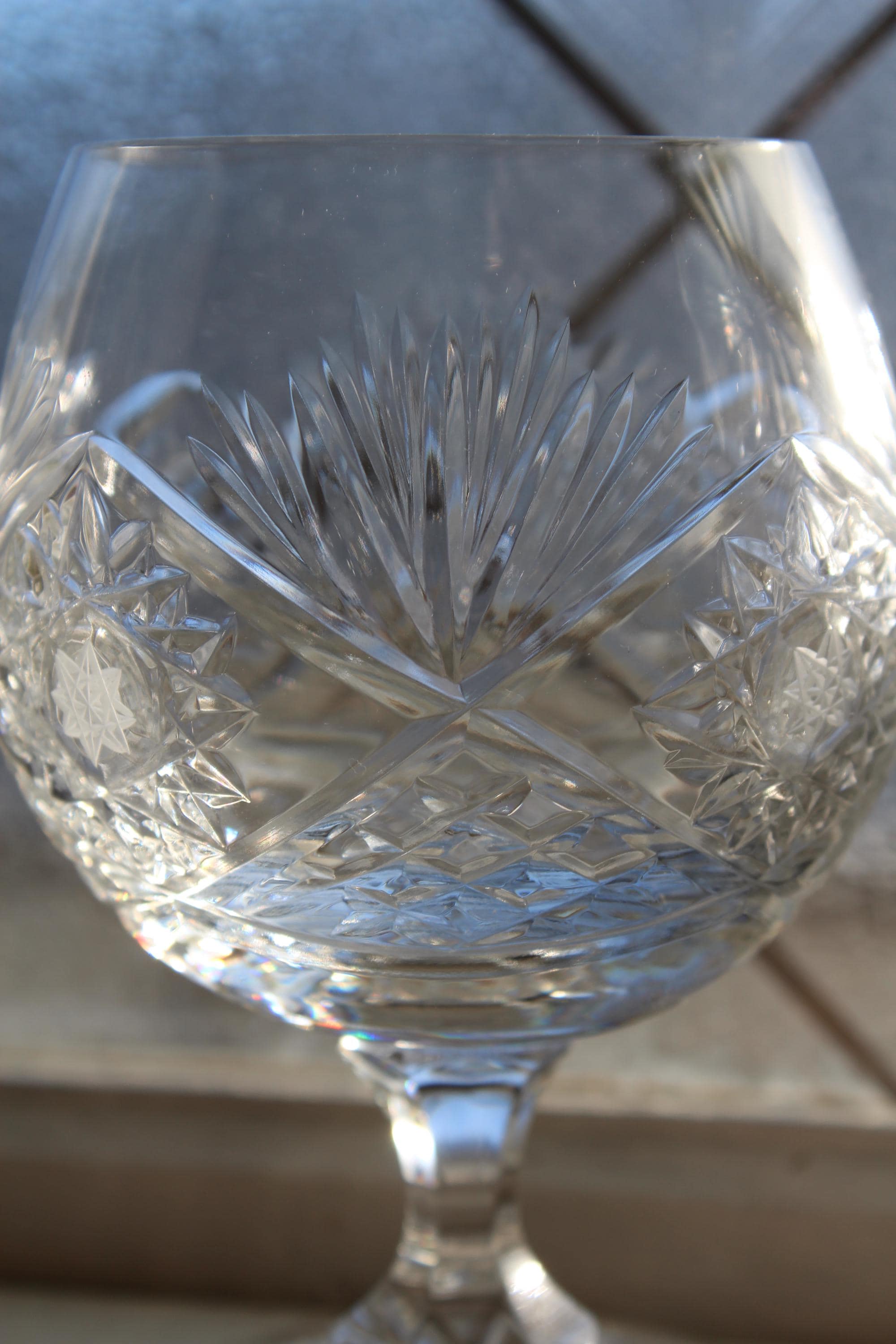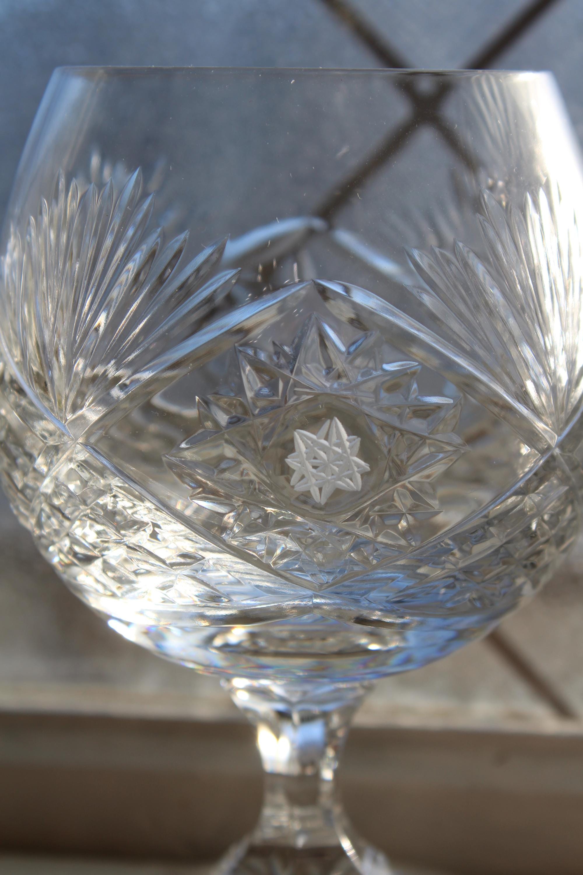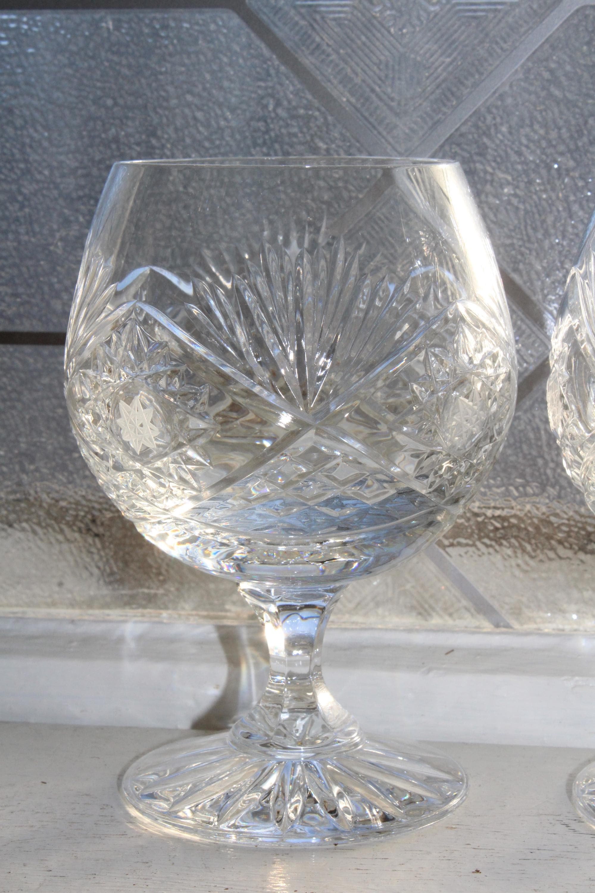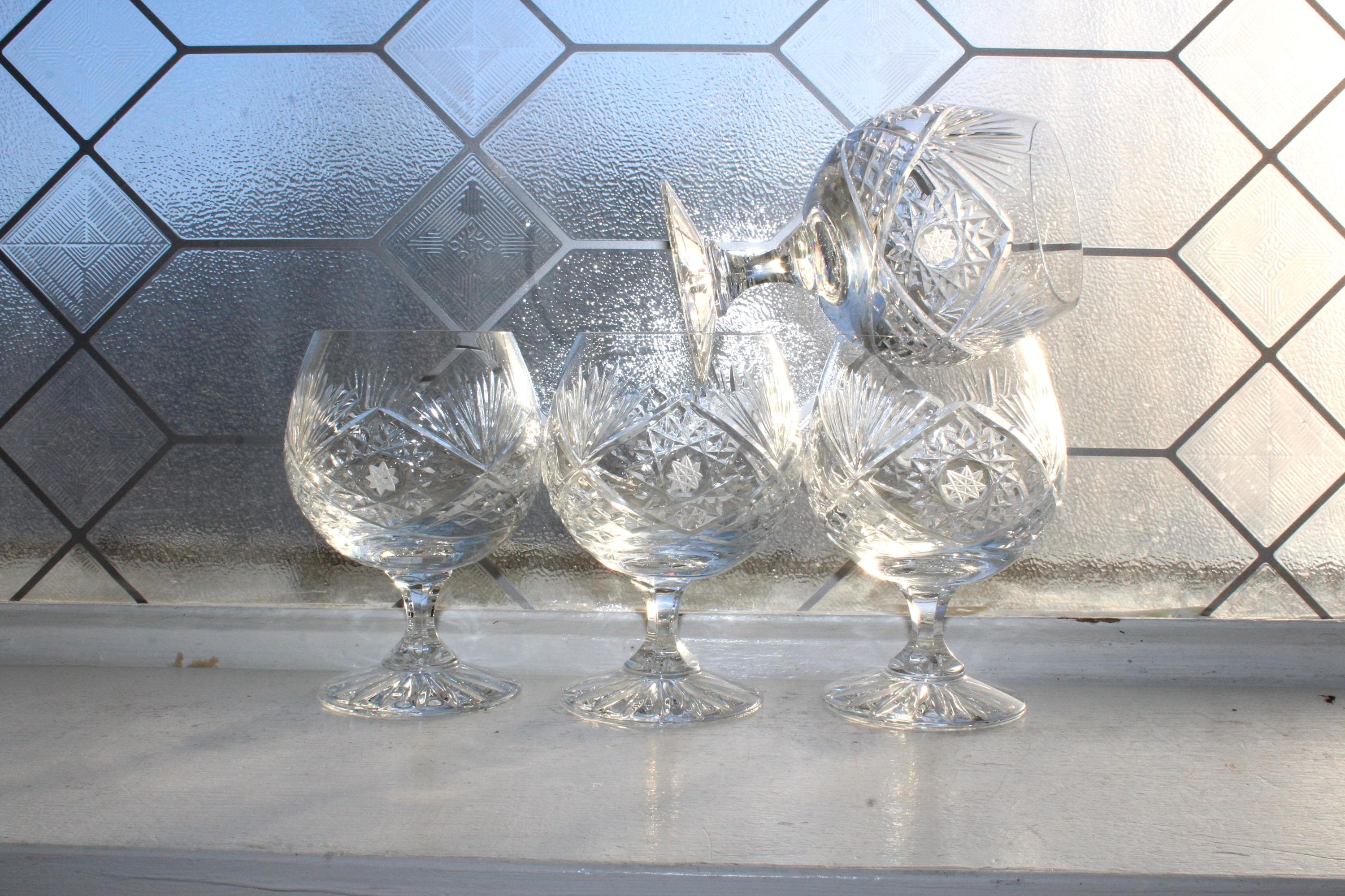 This is a gorgeous set of 4 vintage Bohemian cut crystal brandy or cognac snifter glasses. Each measures 5" high and weighs just over 9 oz. This is a beautiful set and perfect for use or display. No chips or cracks. Enjoy!