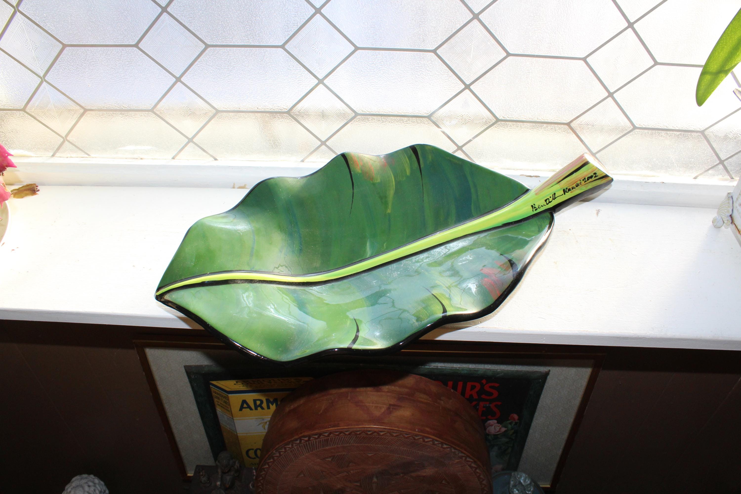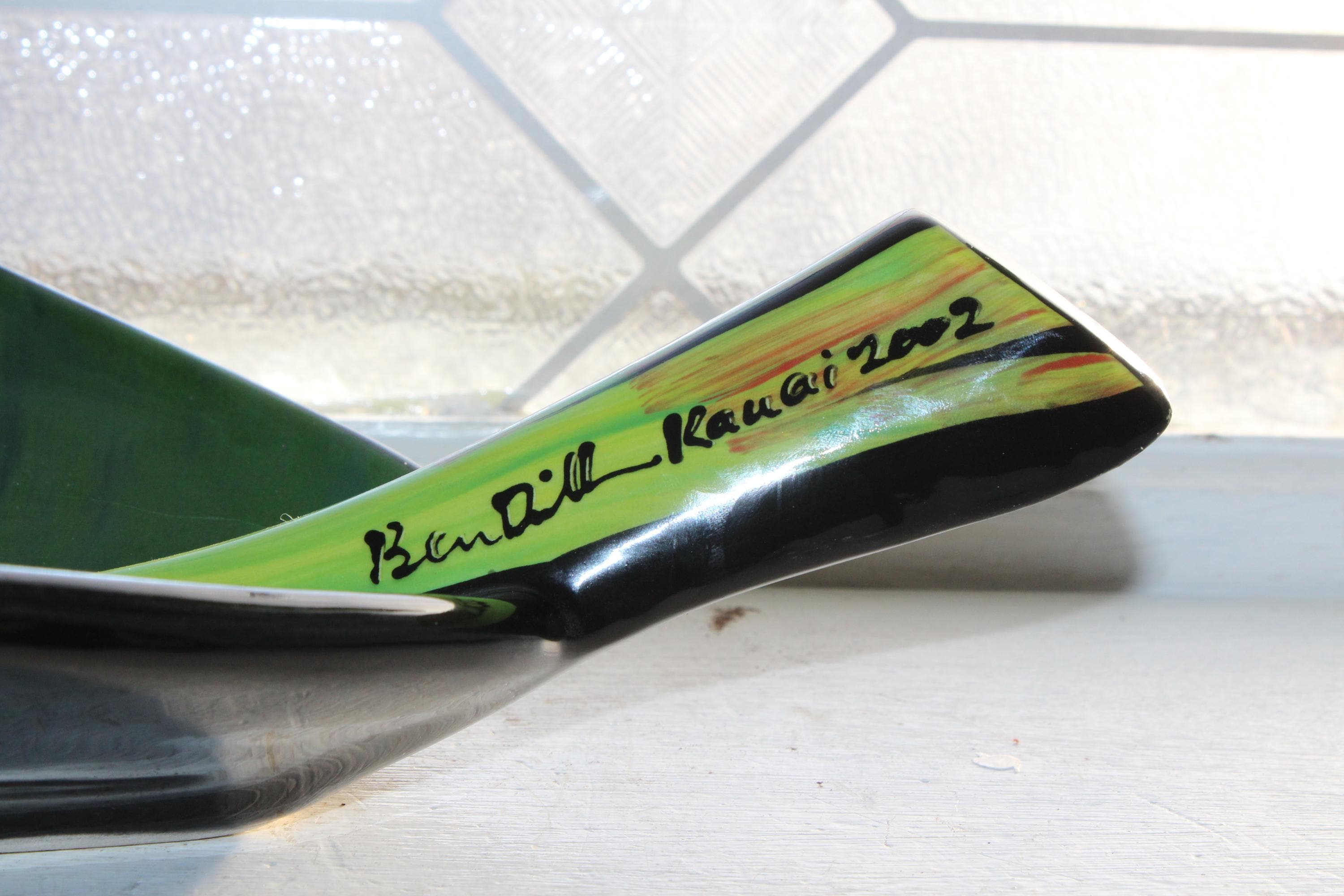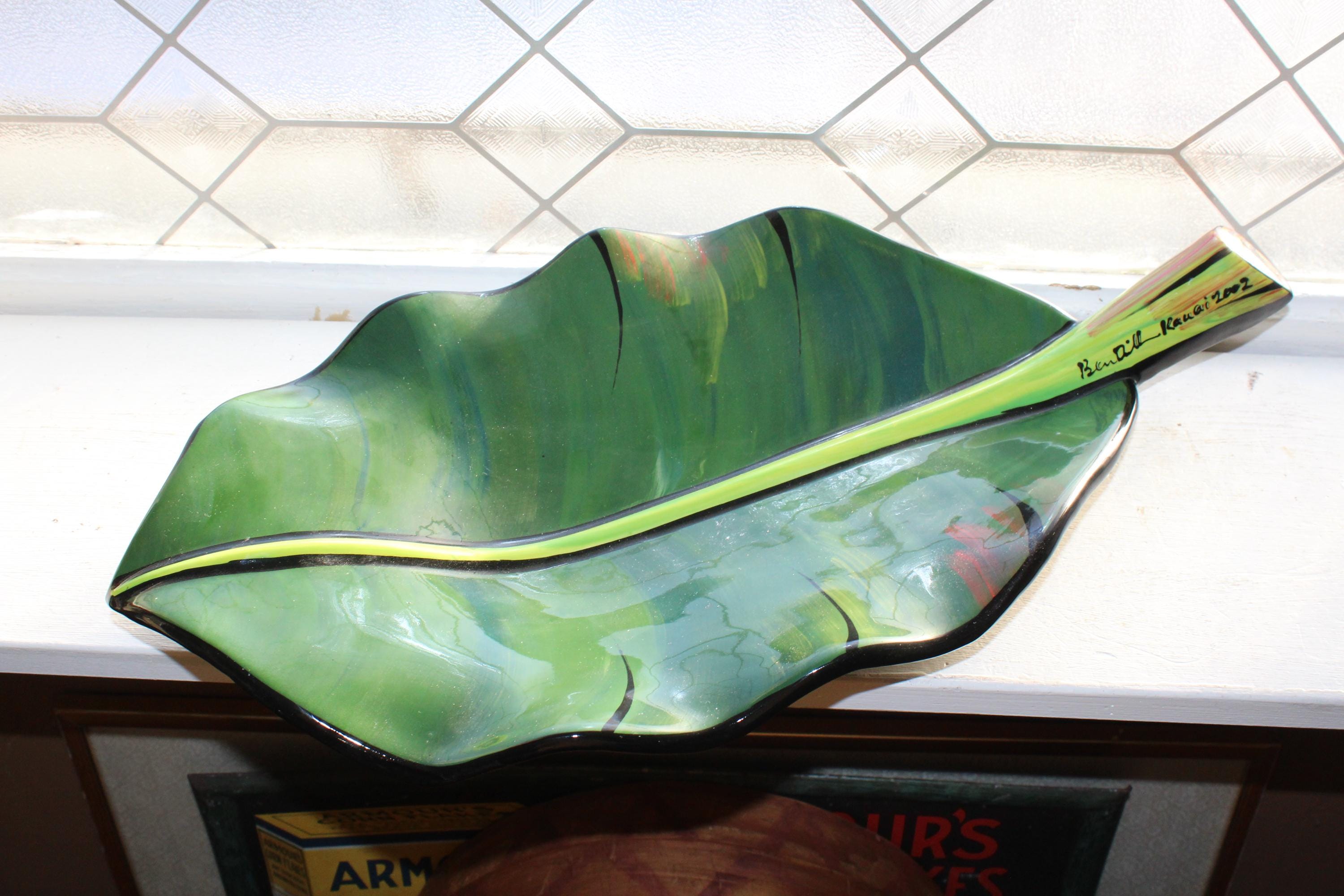 Large Takeda Cresset Guilde pottery banana leaf tray centerpiece by Ben Diller Kauai Hawaii, in excellent condition. The tray measures 19" x 9" and is signed and dated 2002. Perfect for use or display. Enjoy!