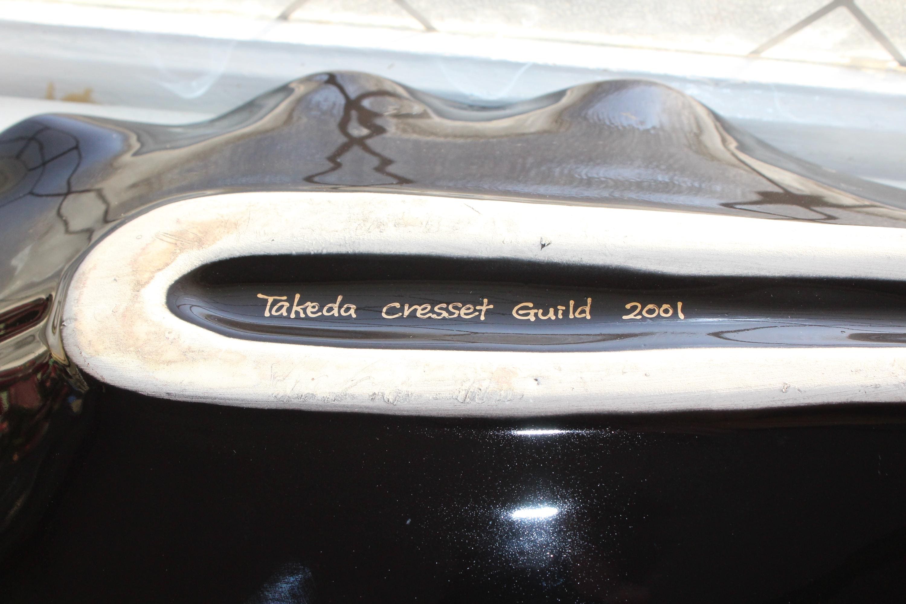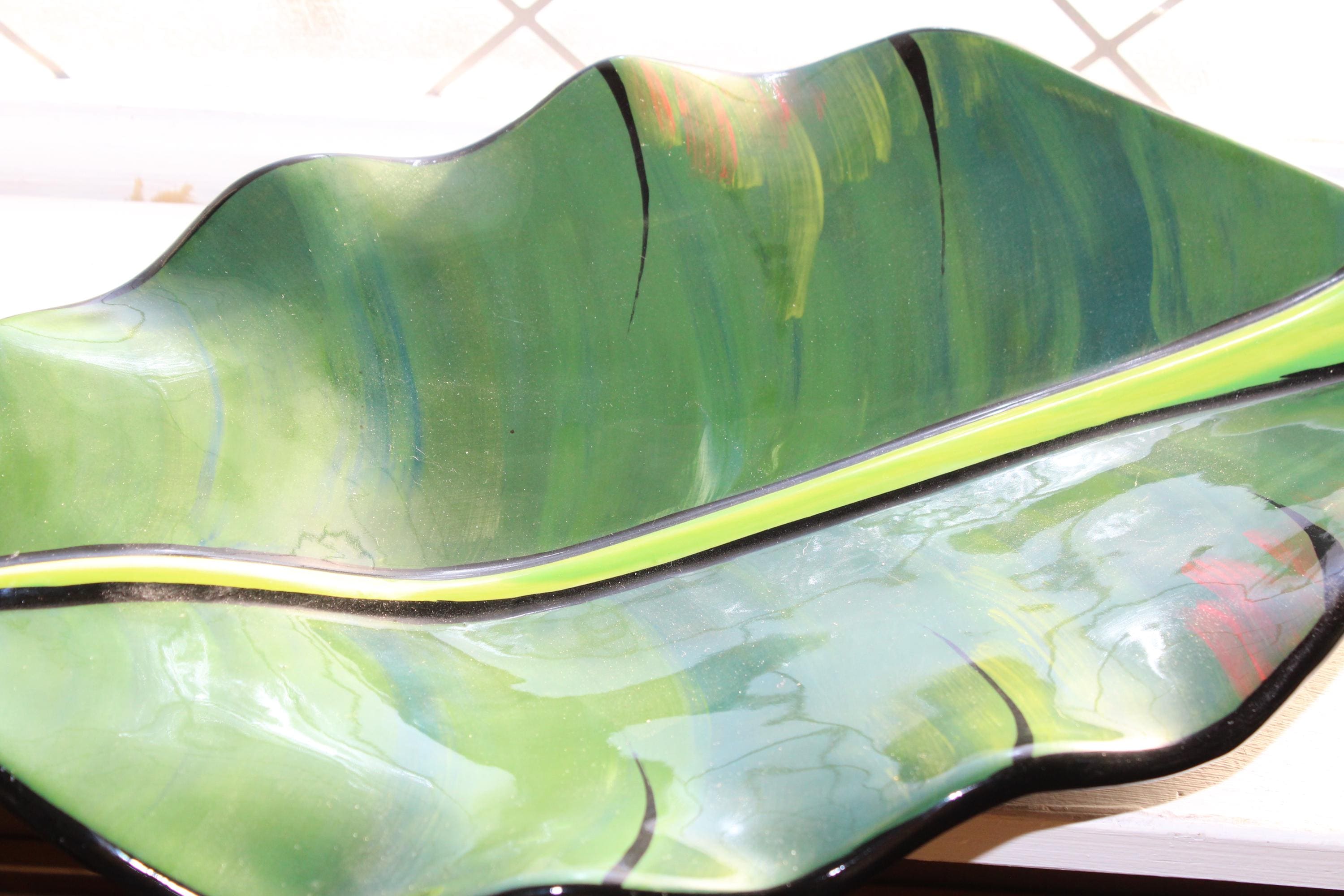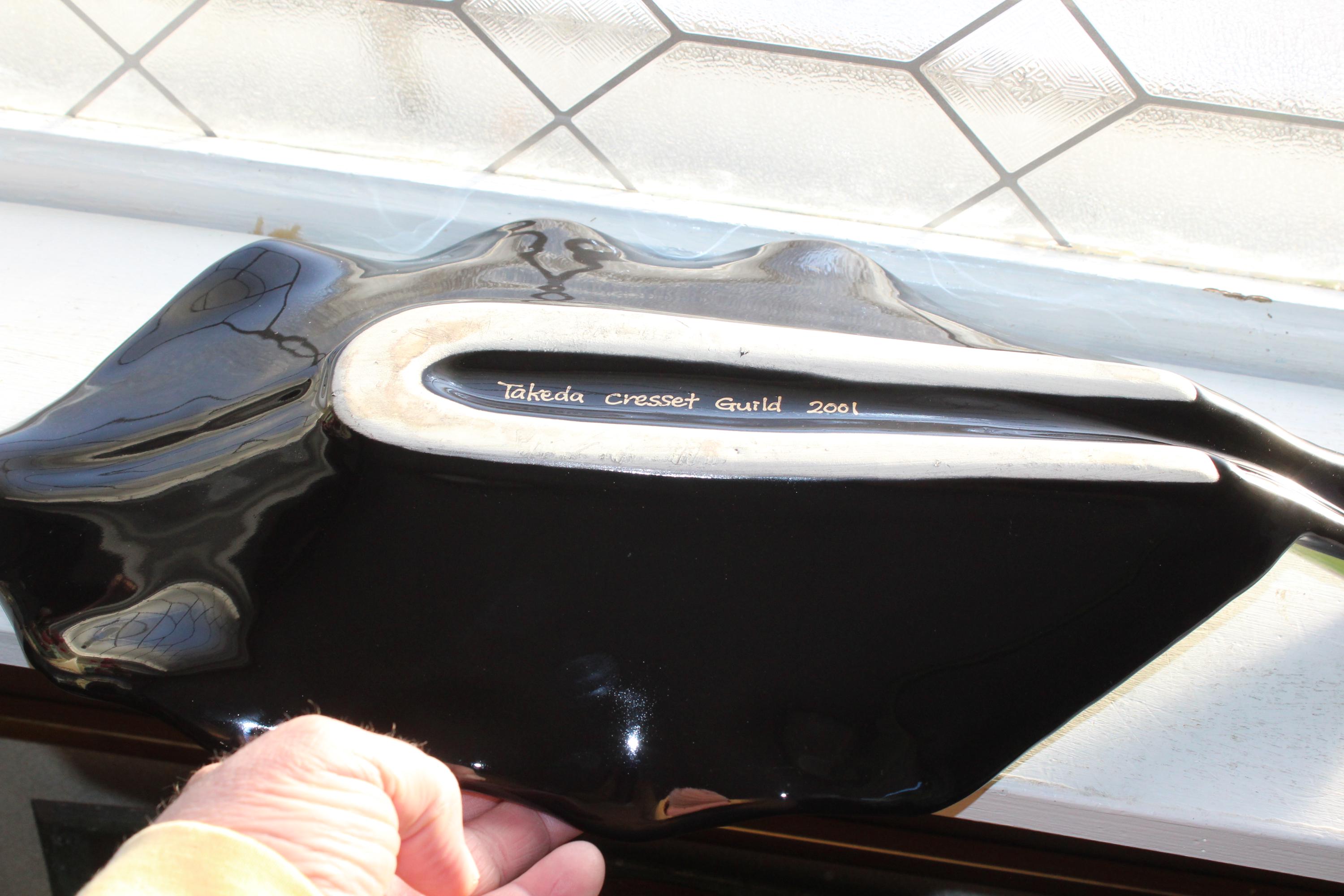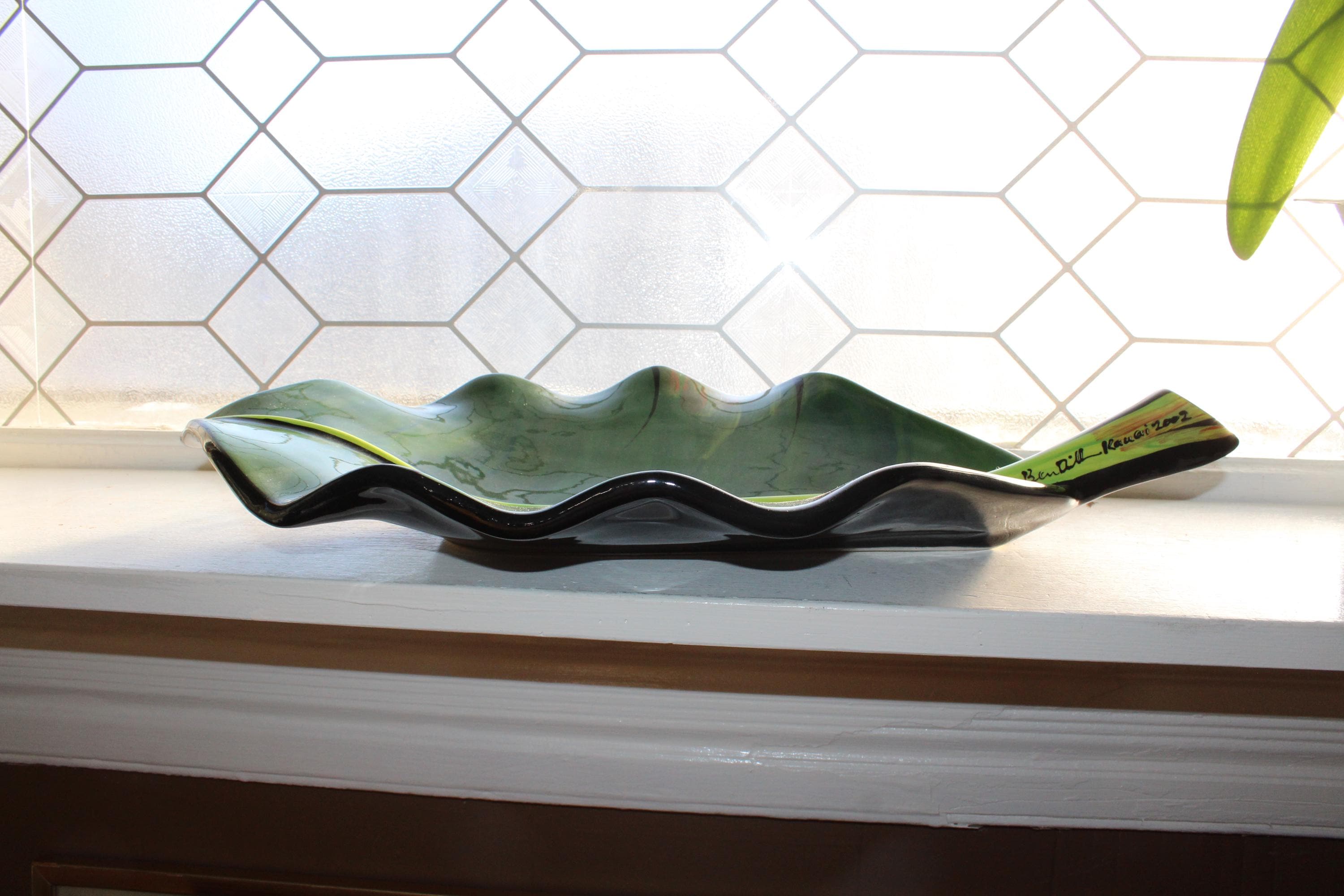 Large Takeda Cresset Guilde pottery banana leaf tray centerpiece by Ben Diller Kauai Hawaii, in excellent condition. The tray measures 19" x 9" and is signed and dated 2002. Perfect for use or display. Enjoy!