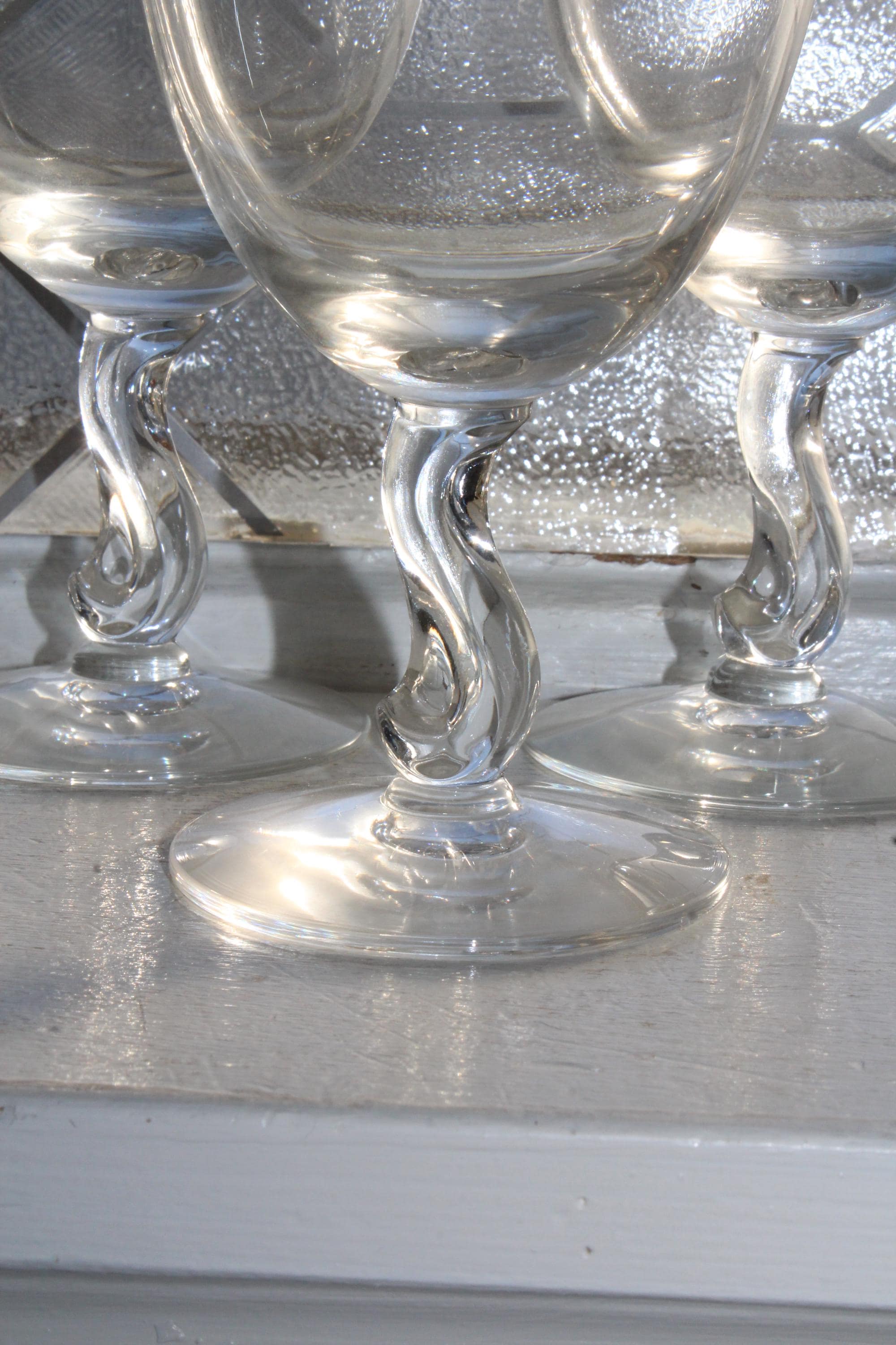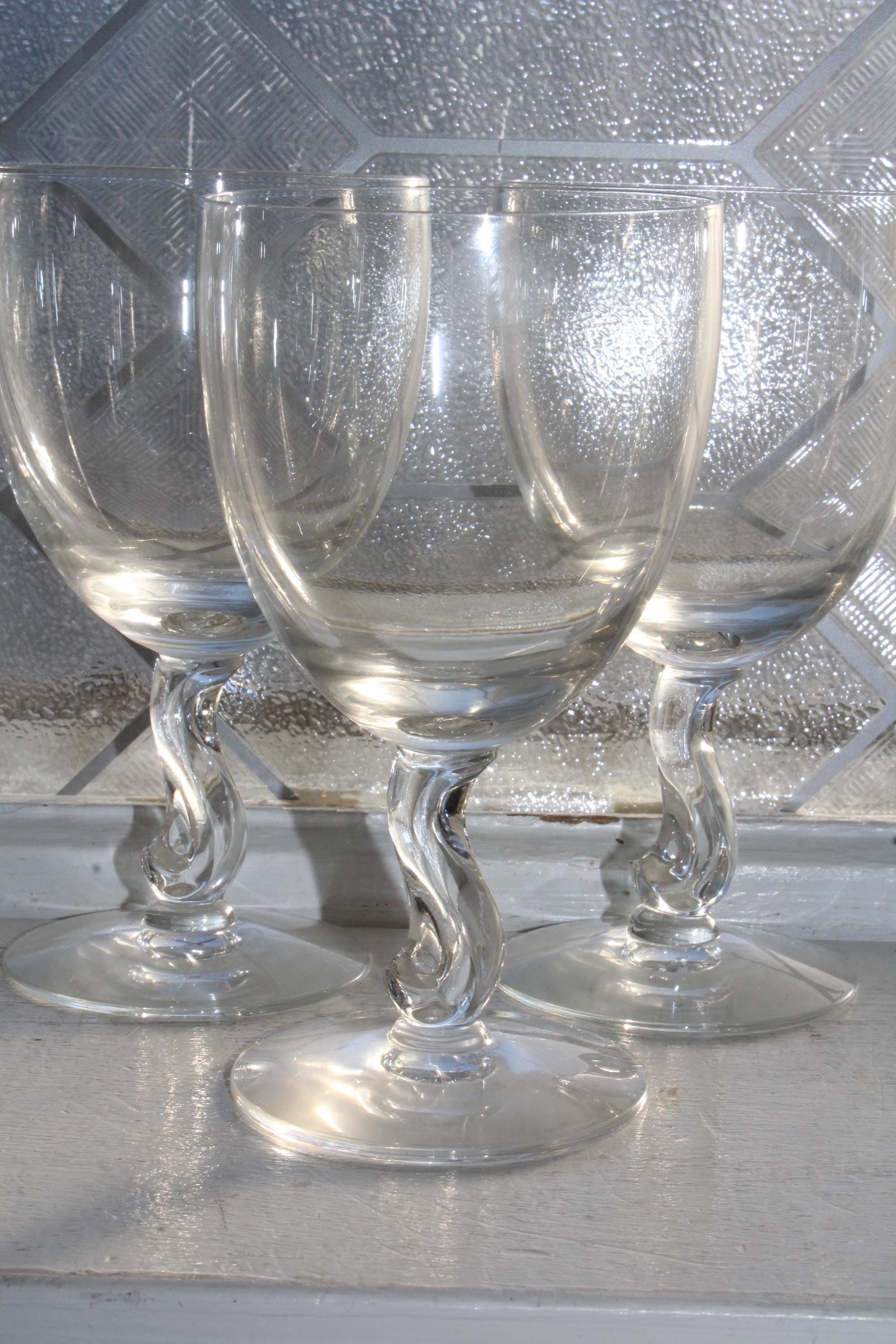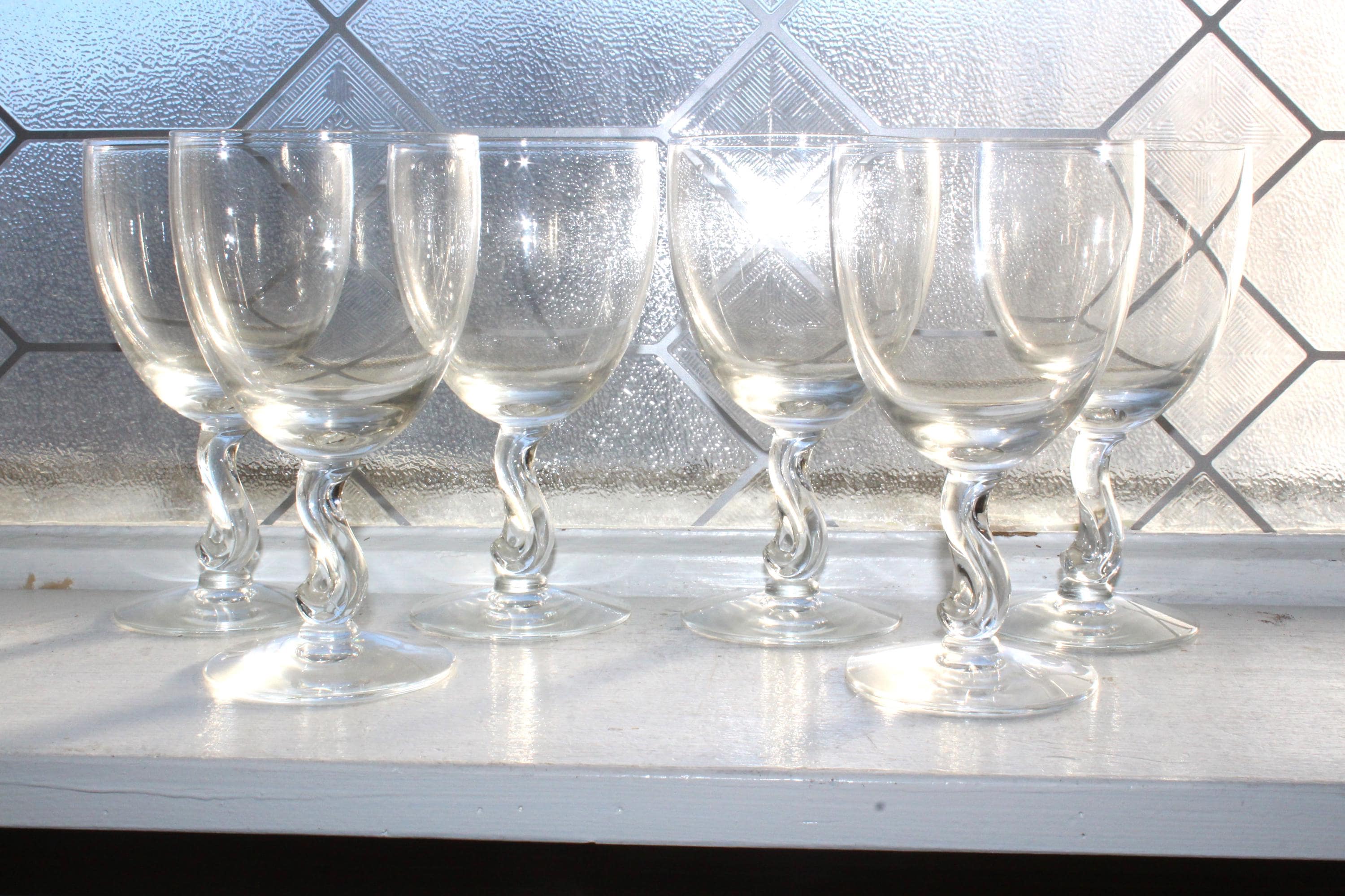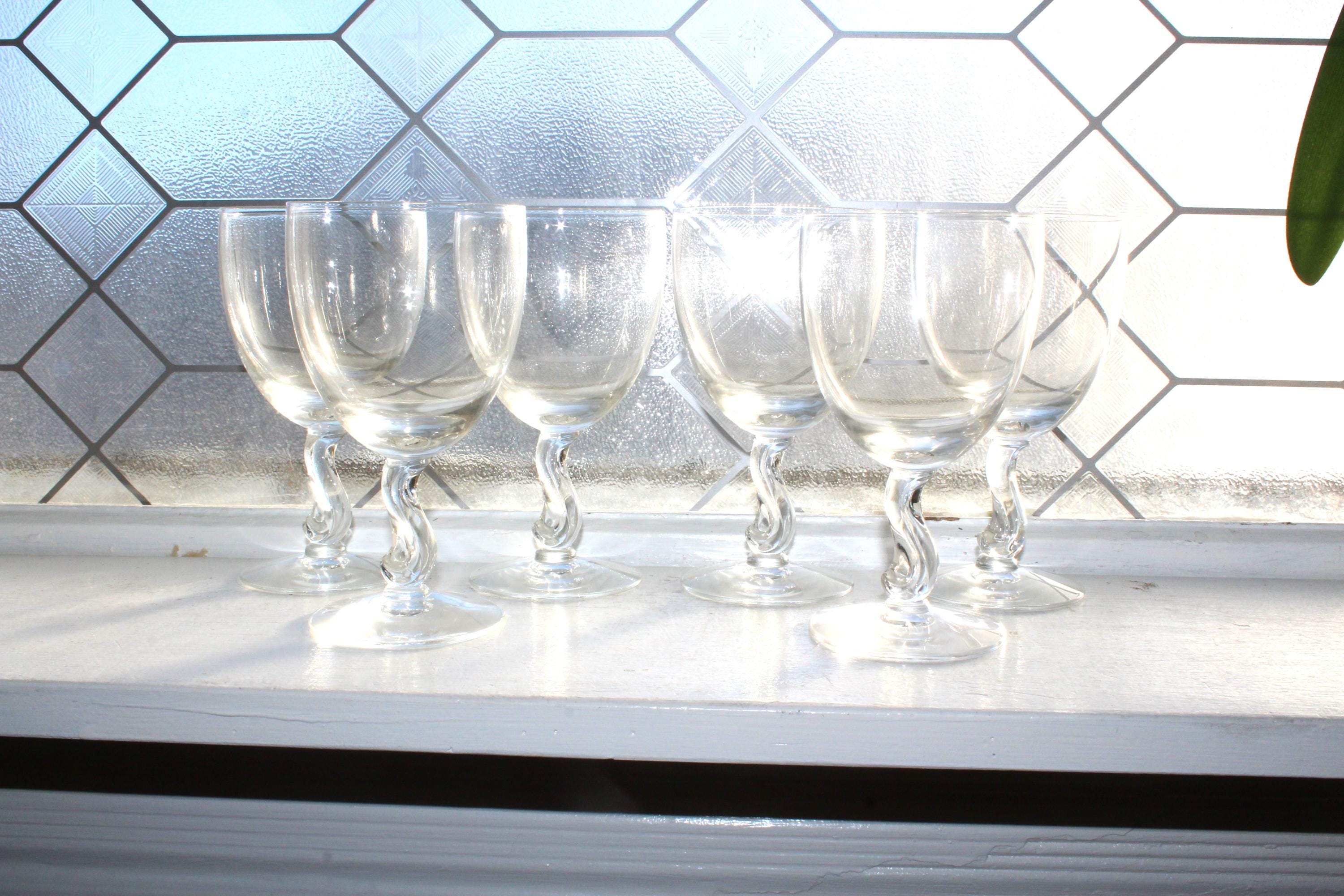 6 gorgeous vintage Fostoria glass Contour Clear wine or water goblets, in excellent condition. Each one measures 5 7/8" high and the top is 3 1/4" wide. Enjoy!