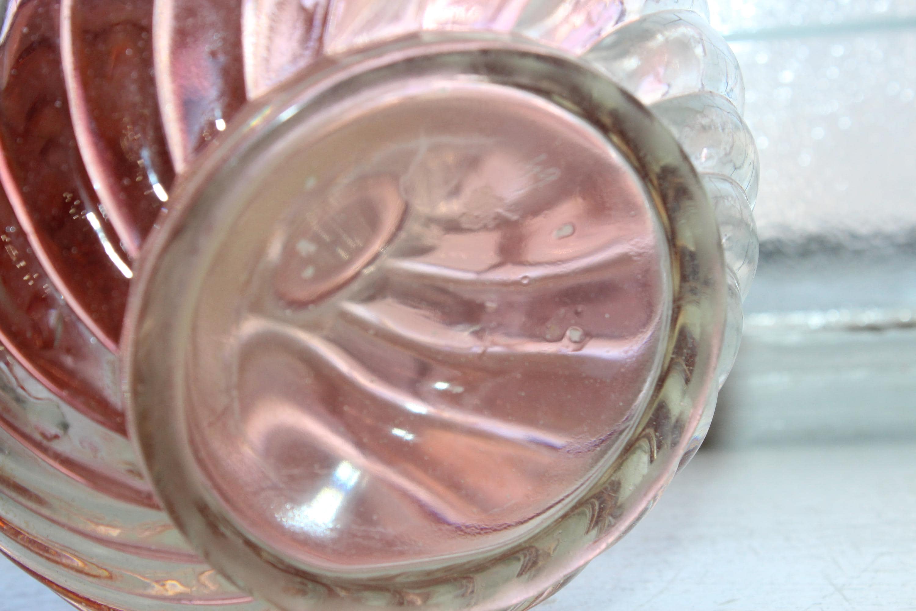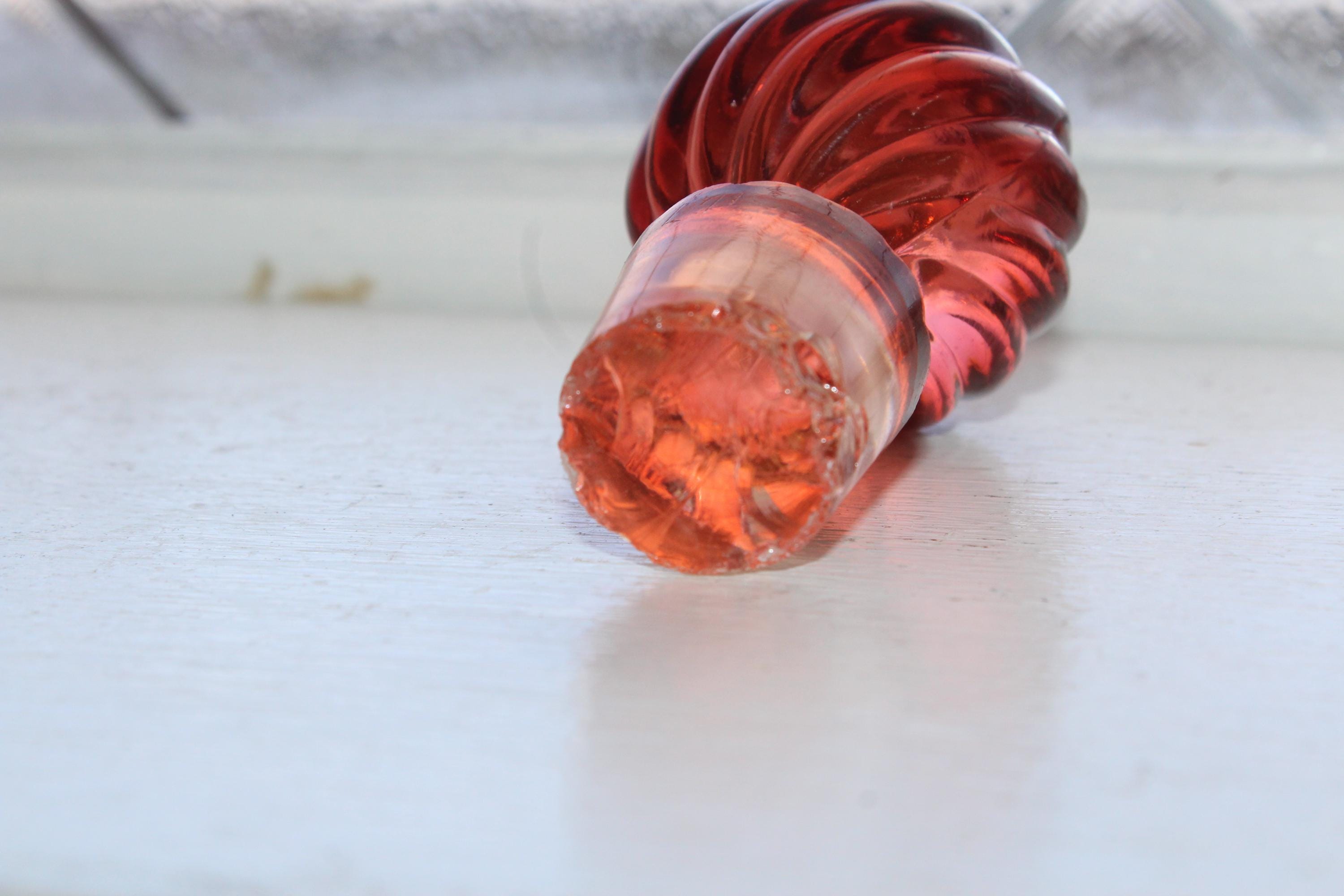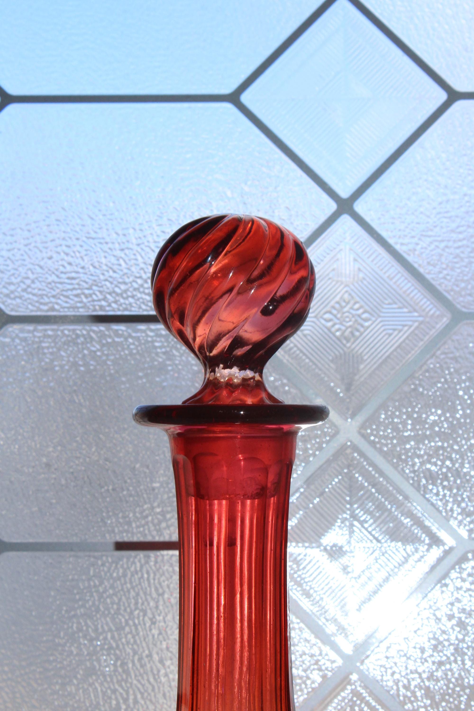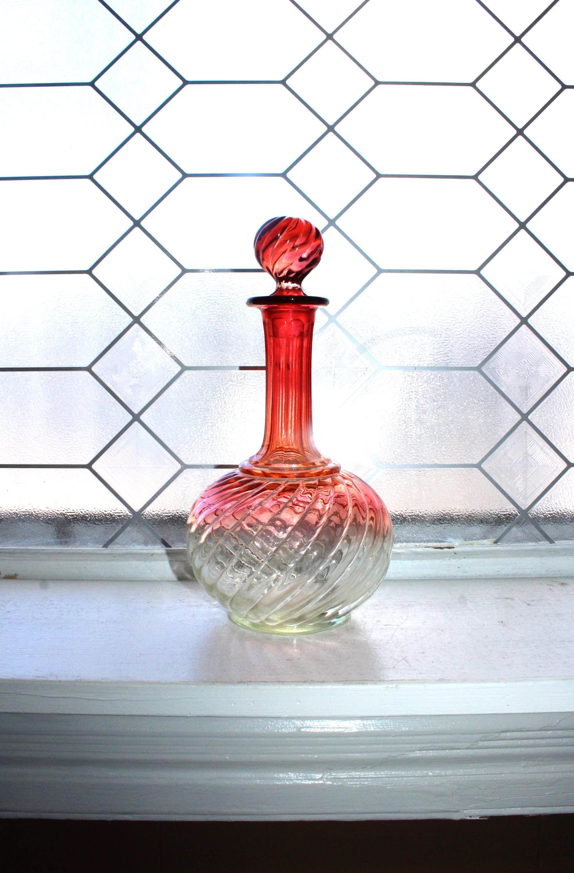Gorgeous antique Baccarat crystal Rose Tiente French Bambous swirl decanter or bedside carafe with rosette stopper. It measures 9 3/4" high. The stopper has some base chipping not seen when it is in place, great for use or display. Enjoy!