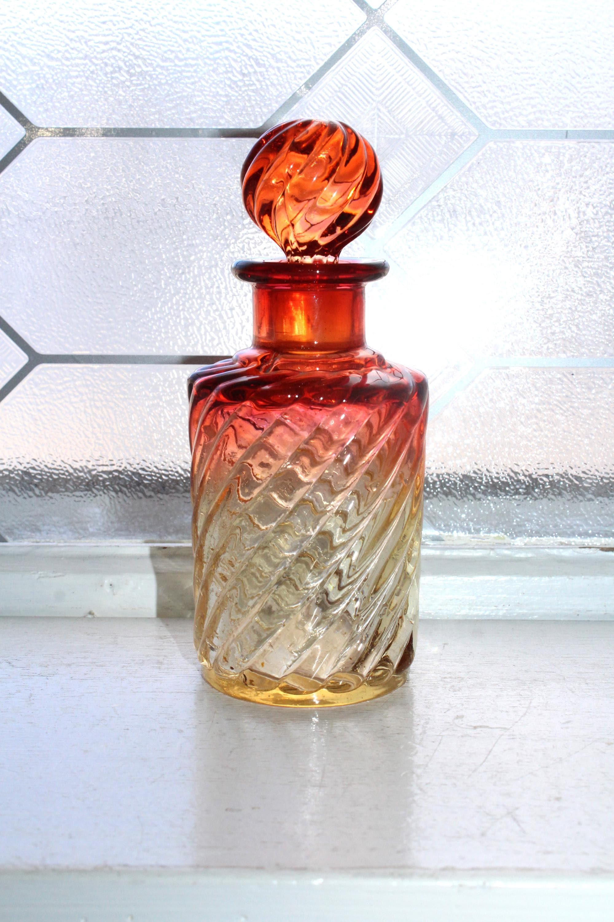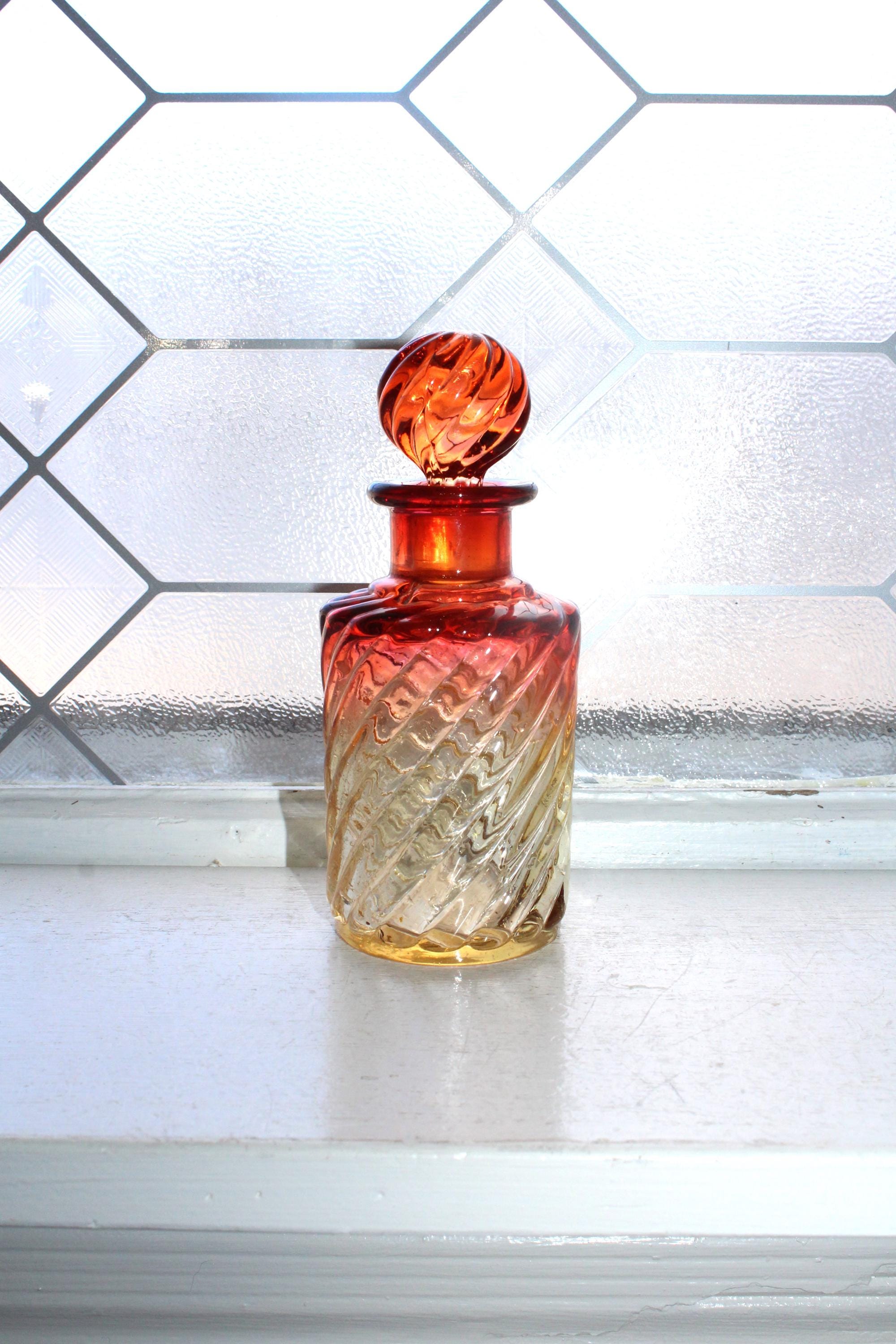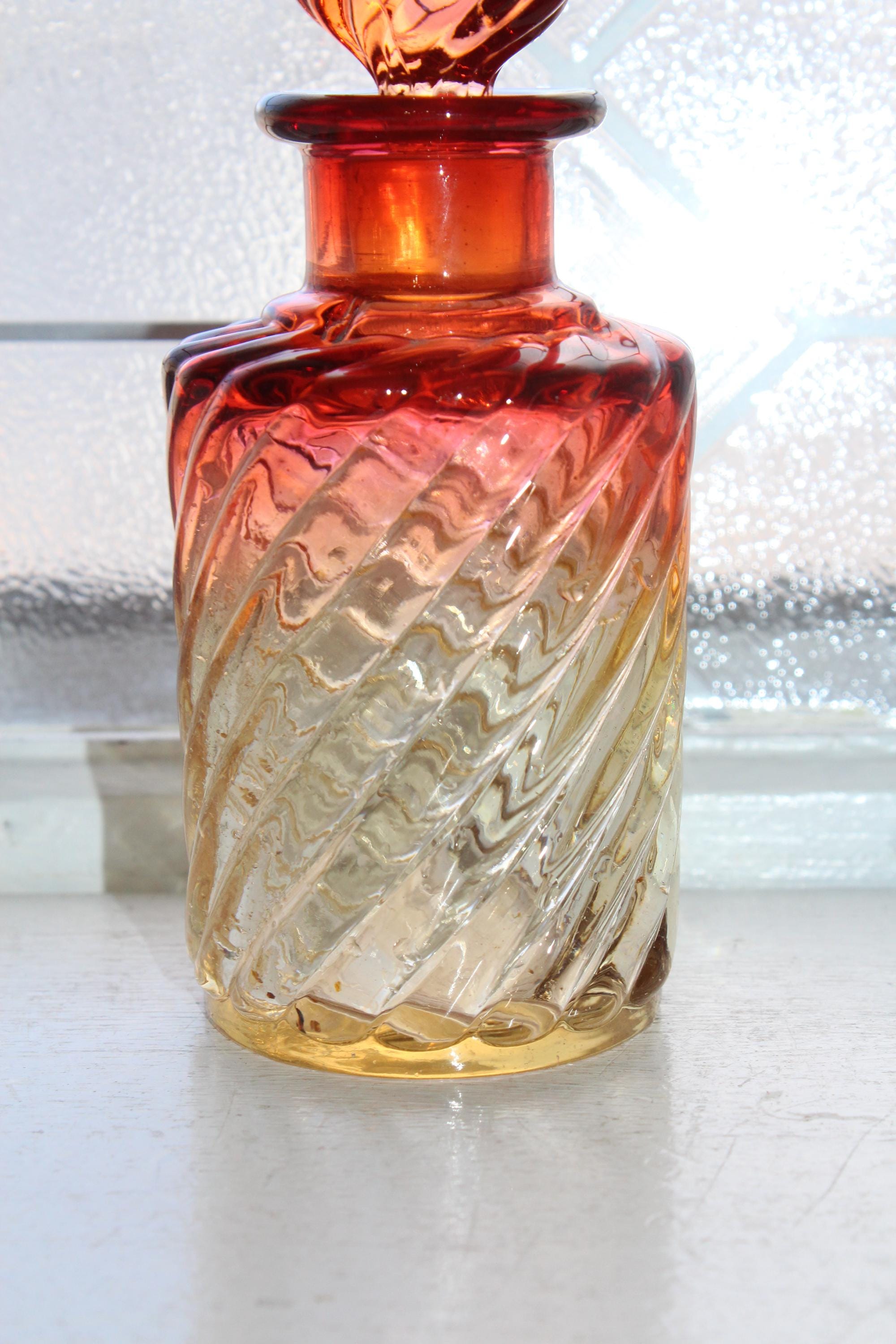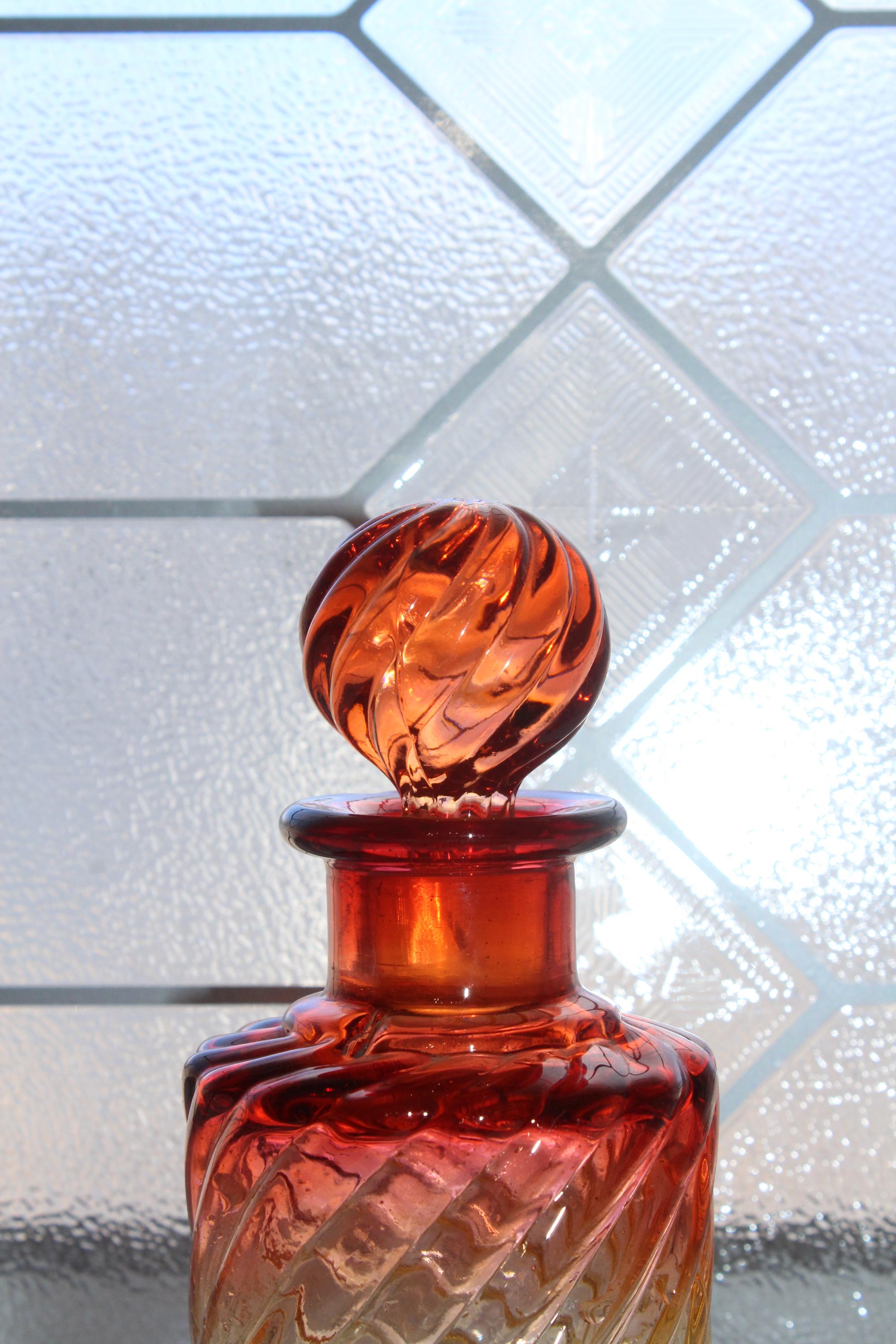 Gorgeous antique Baccarat crystal Rose Tiente French Bambous swirl dresser bottle with rosette stopper. It measures 6 1/4" high. The stopper has some base chipping not seen when it is in place, great for use or display. Enjoy!
