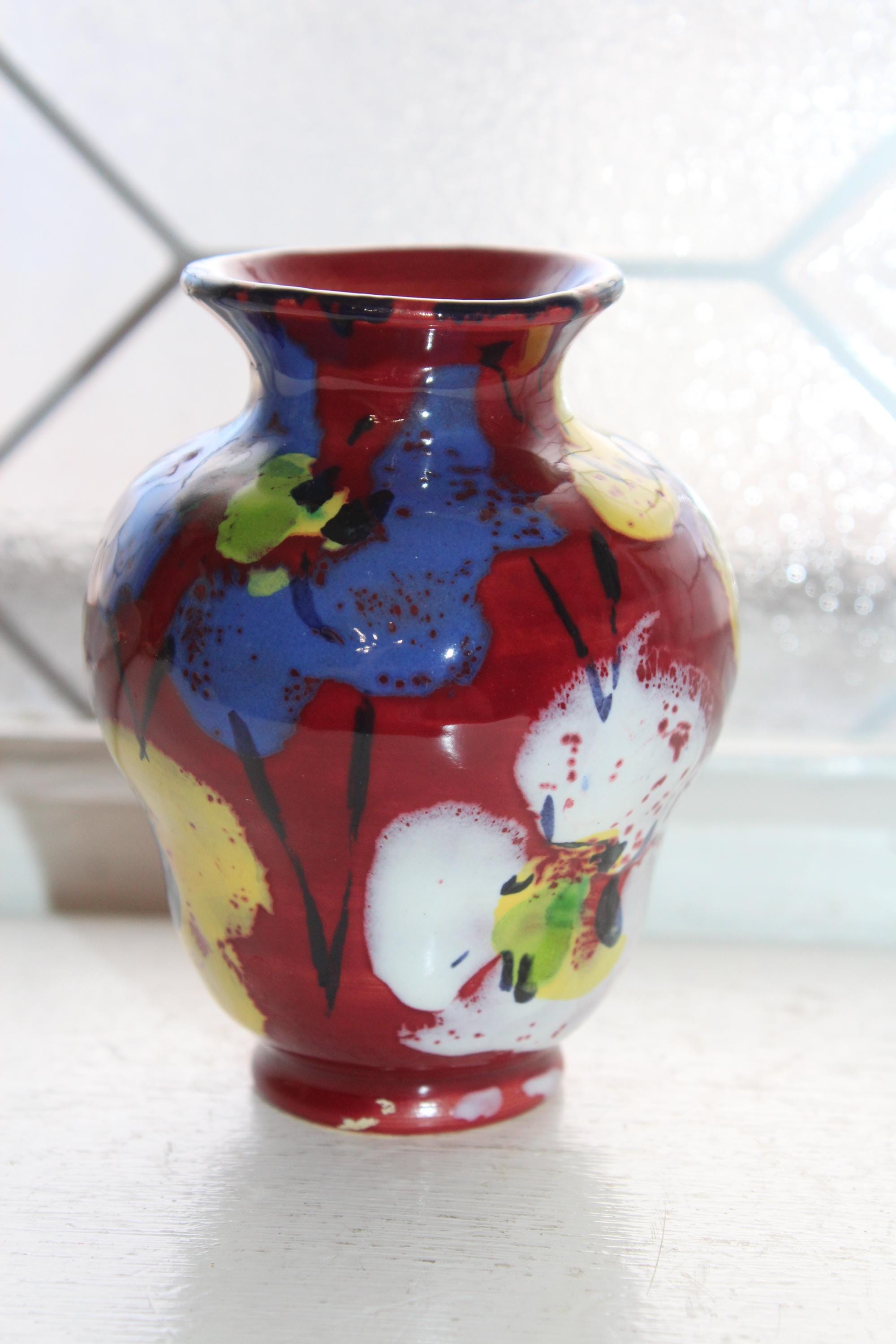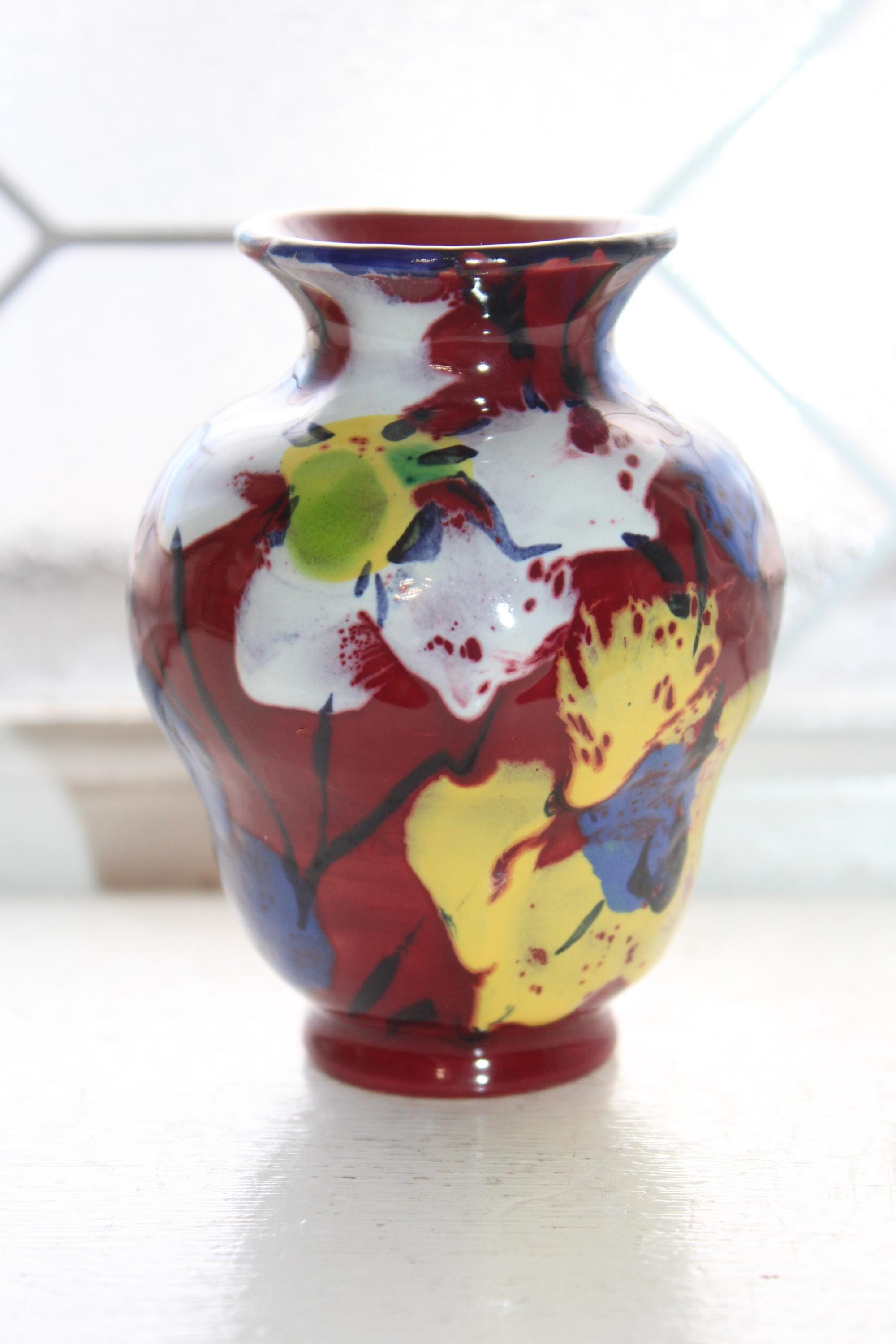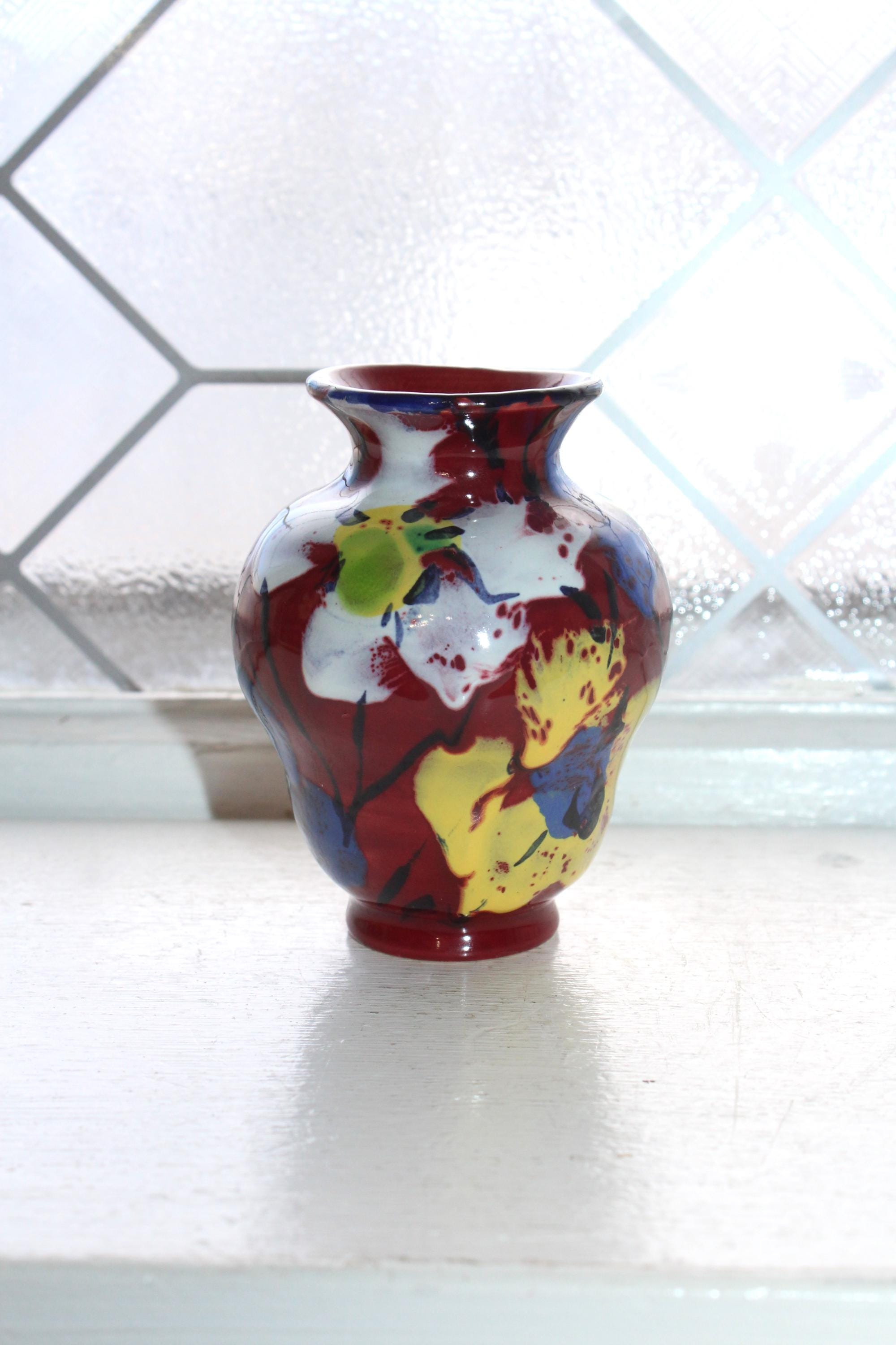 Vintage Mid Century Italian pottery Bitossi burgundy floral posy vase, in excellent condition. The vase measures 3 1/2" high. No chips or cracks, perfect for use or display. Enjoy!
