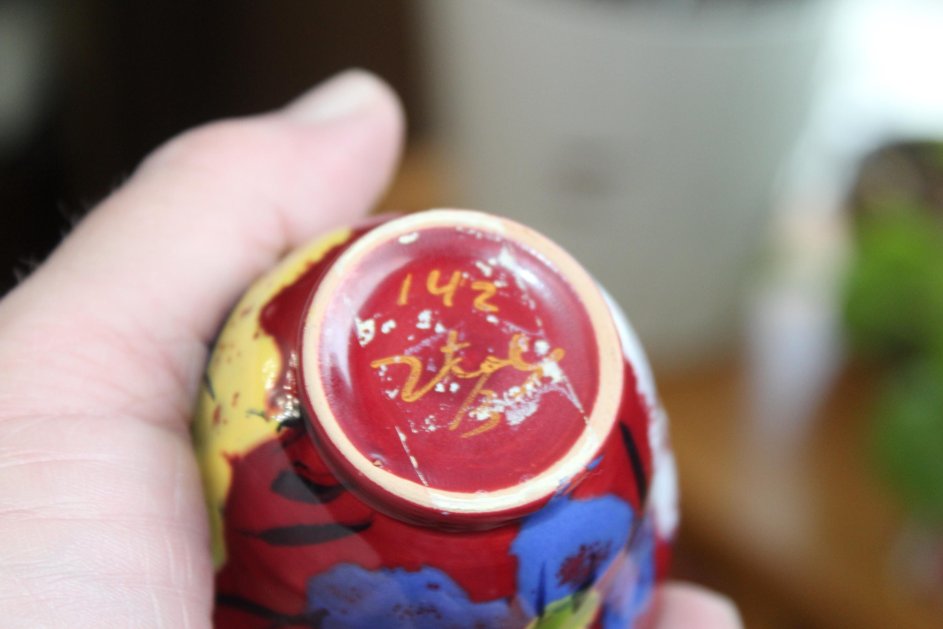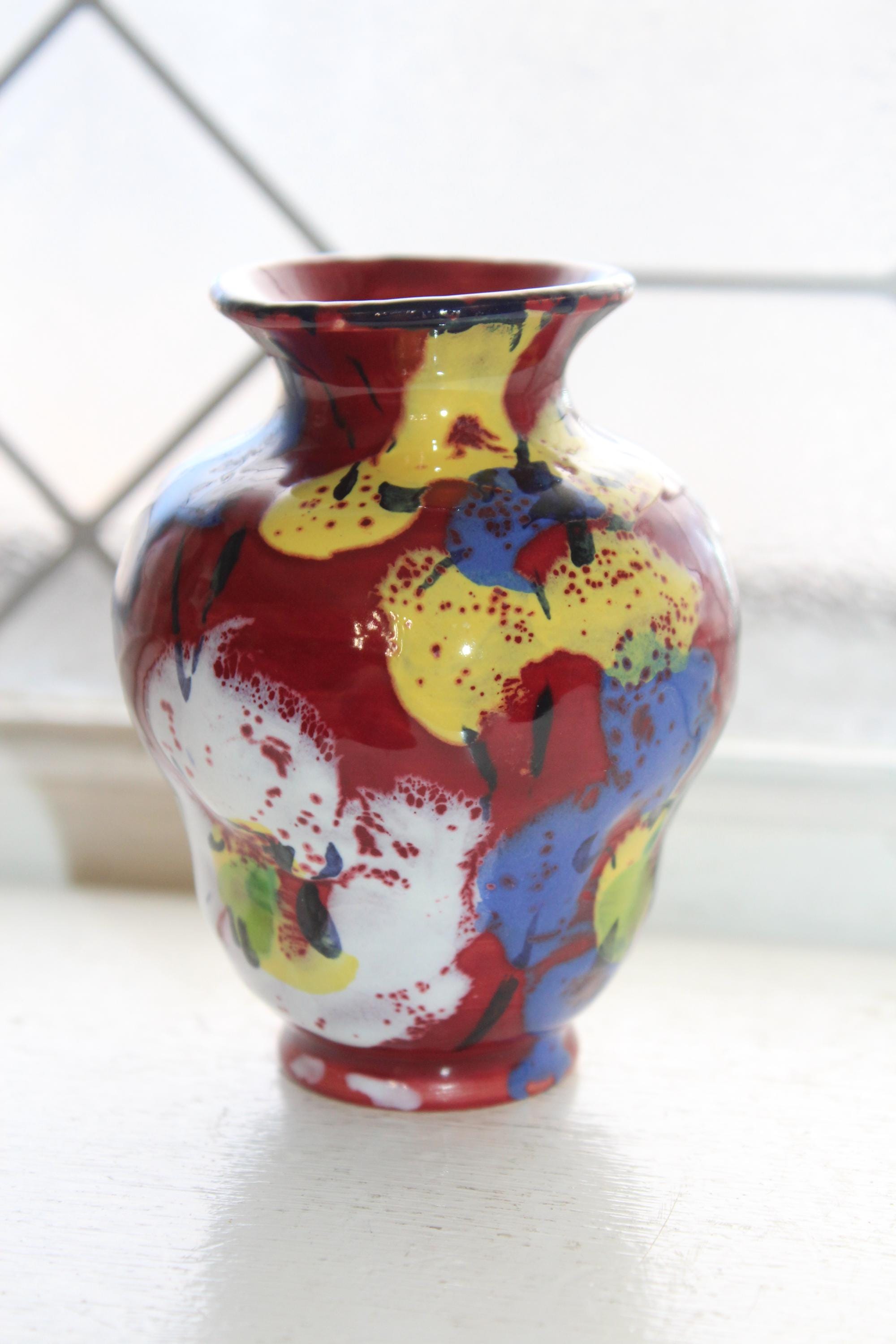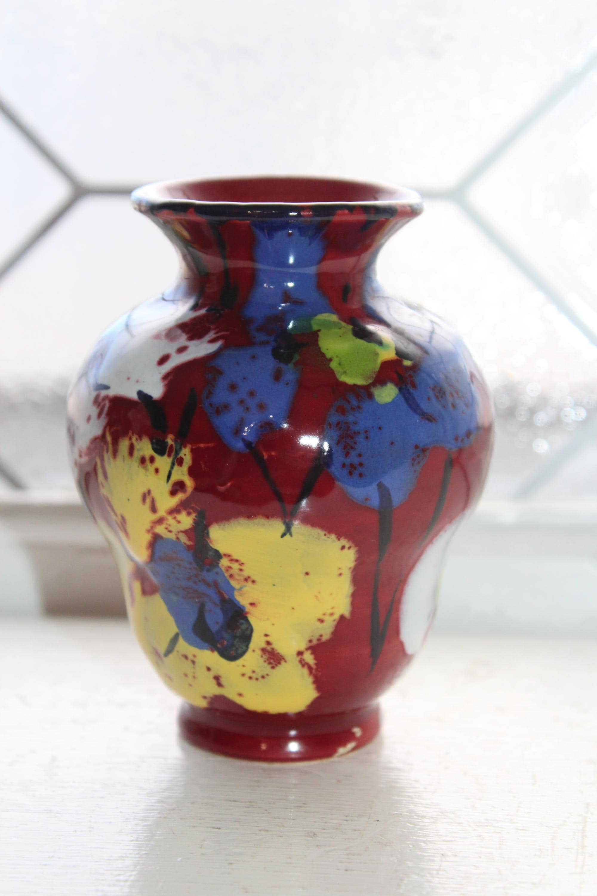 Vintage Mid Century Italian pottery Bitossi burgundy floral posy vase, in excellent condition. The vase measures 3 1/2" high. No chips or cracks, perfect for use or display. Enjoy!