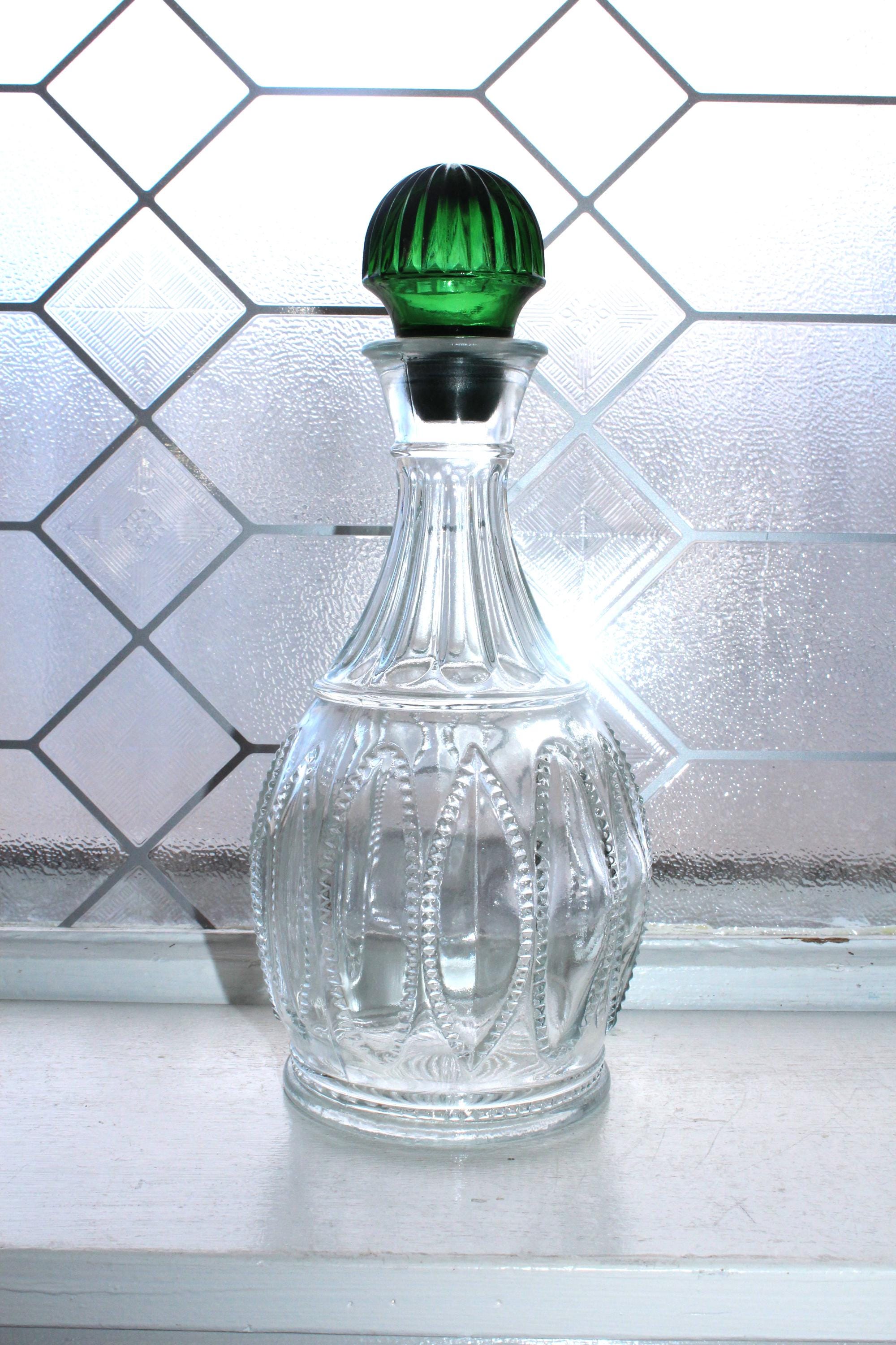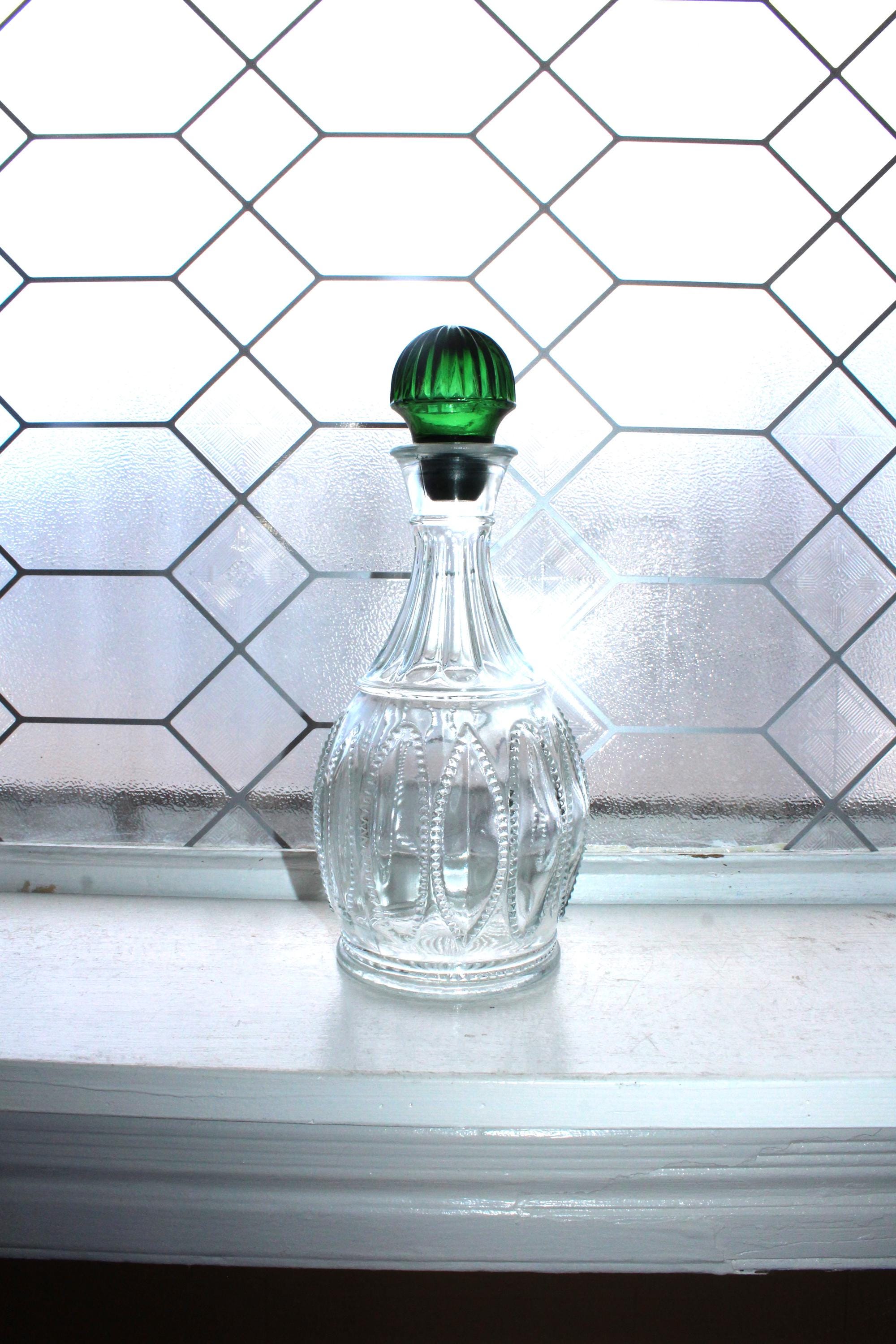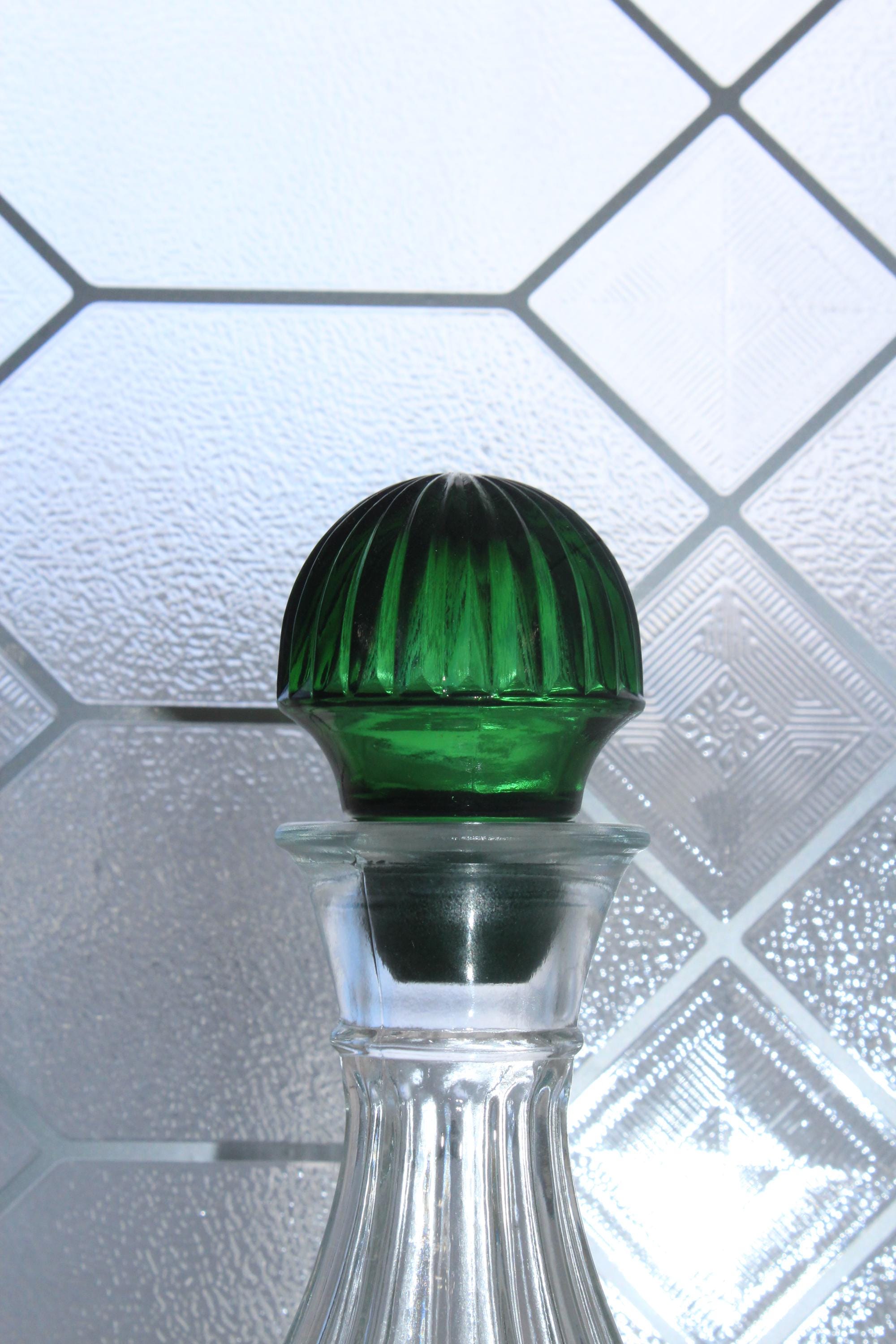 Vintage emerald green and clear glass Emerald Accent decanter and stopper, in excellent condition. The decanter measures 10 1/4" high. Made for Avon in the 1980s. No chips or cracks, perfect for use or display. Enjoy!
